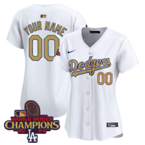 Women’s Dodgers 2025 World Series Gold Trim Vapor Premier Limited Jersey – All Stitched