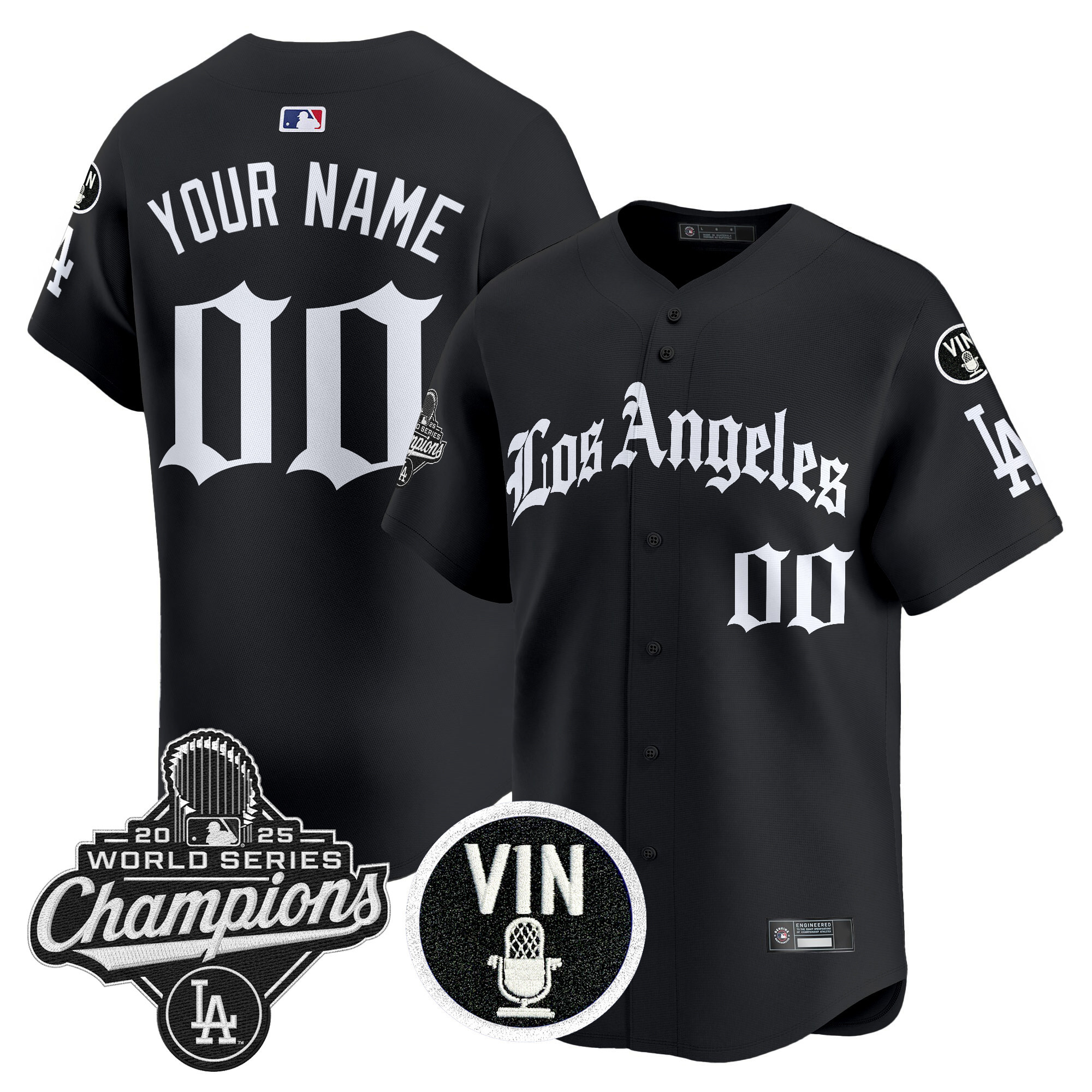 Dodgers 2025 World Series Champions Vapor Premier Limited Custom Jersey – LA Gothic Edition – All Stitched