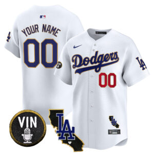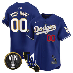 Dodgers Vin & California Patch Gold Trim Vapor Premier Limited Custom Jersey – All Stitched