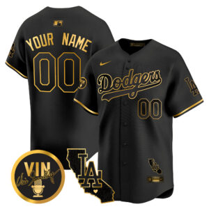 Dodgers Vin & California Patch Gold Vapor Premier Limited Custom Jersey – All Stitched