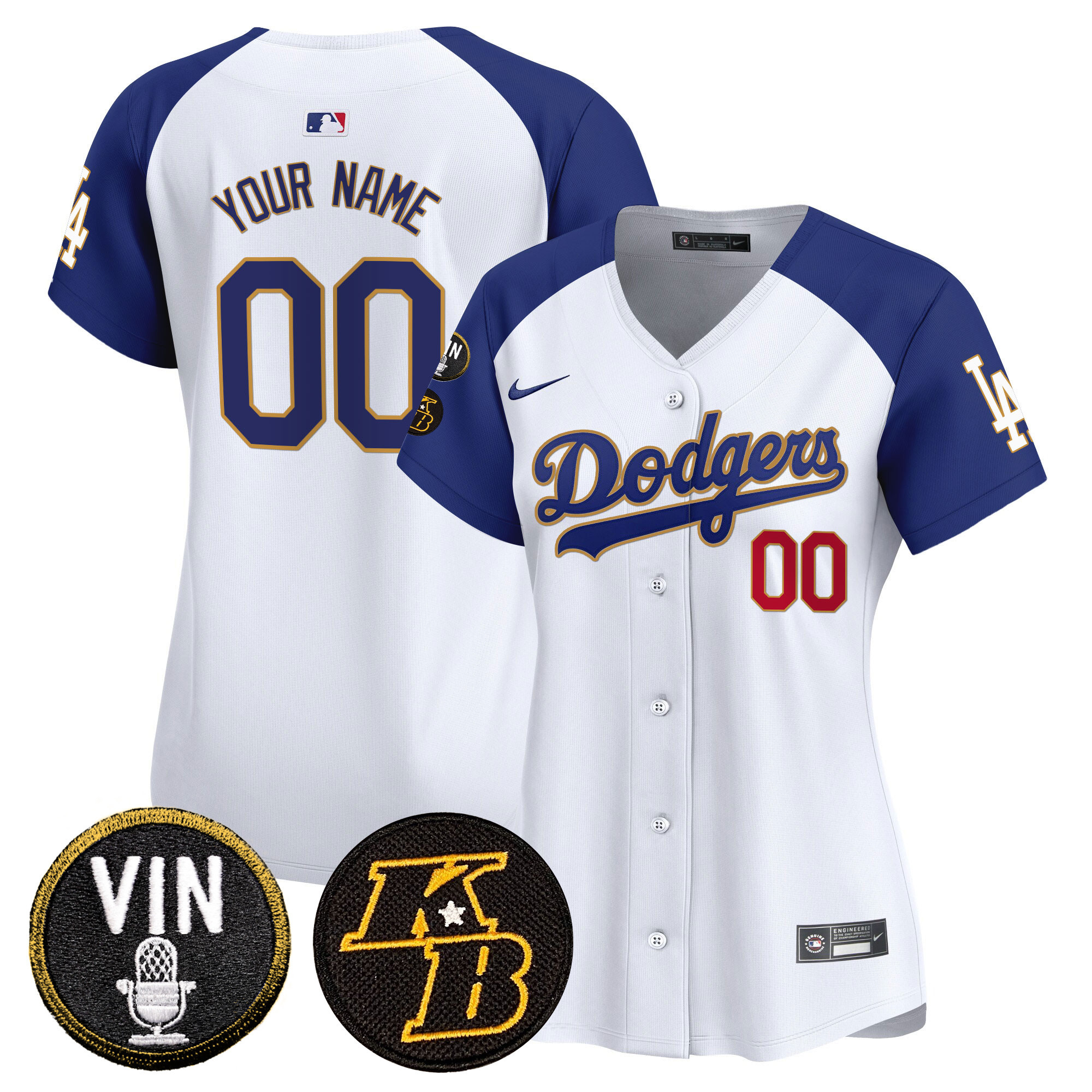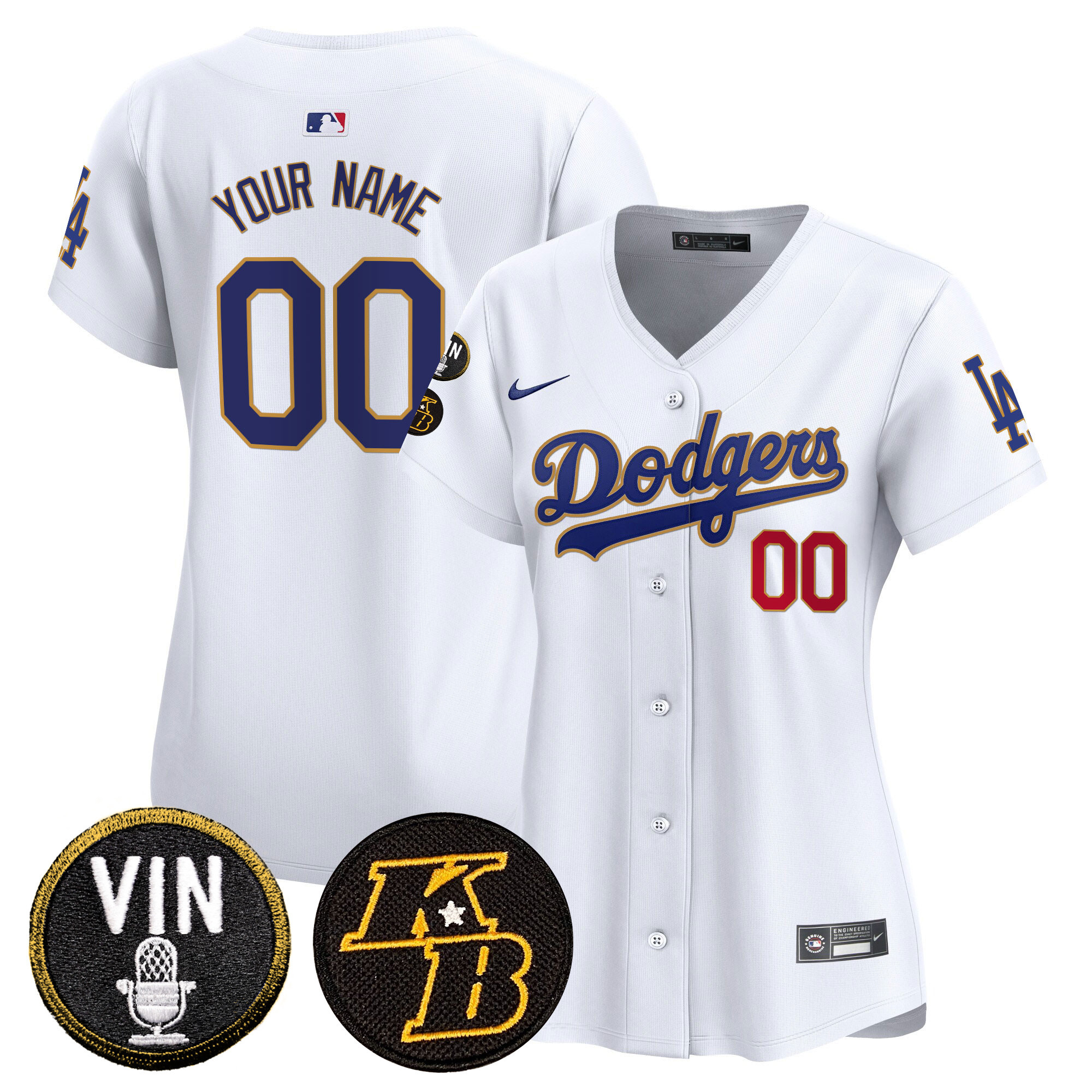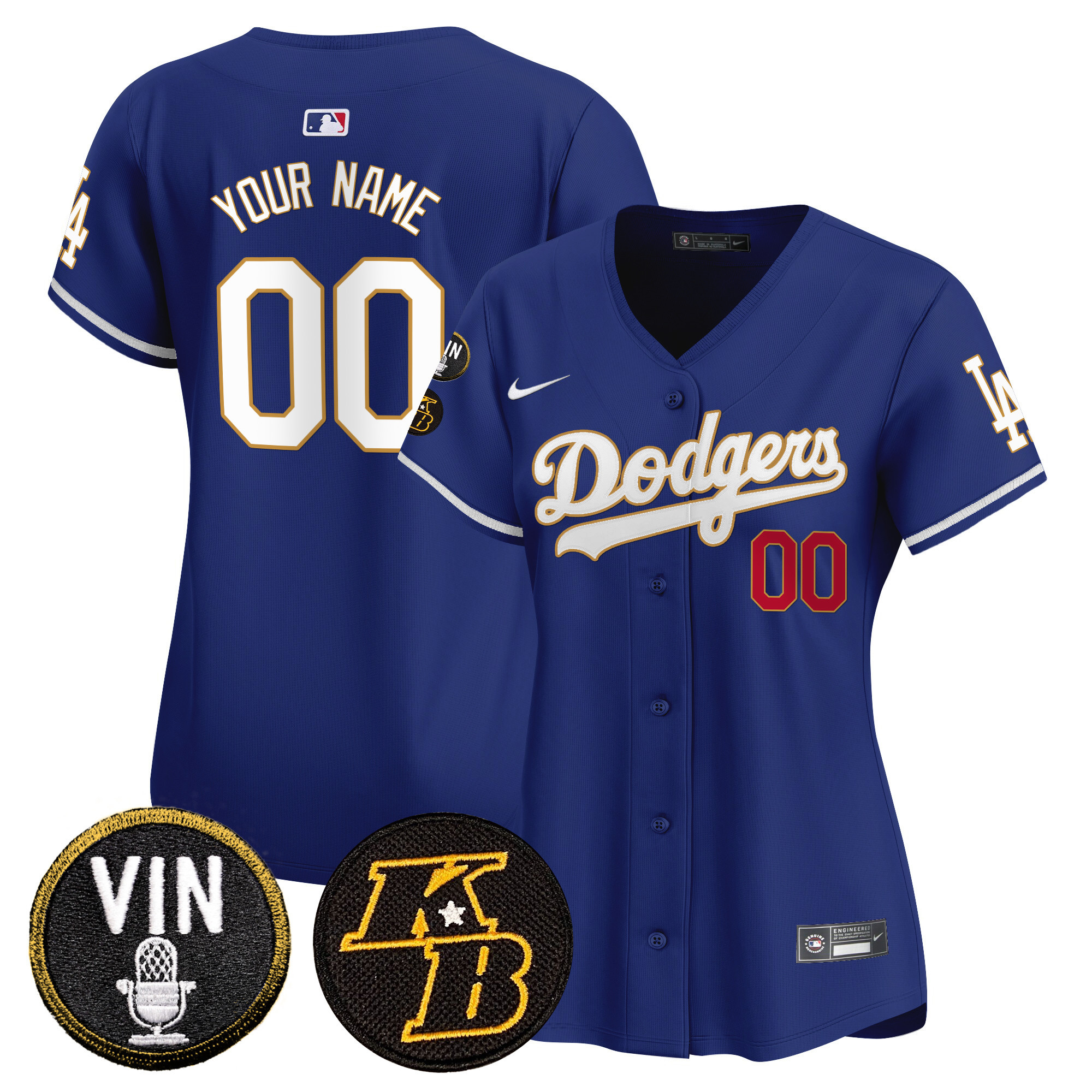 Dodgers Vin & Kobe Patch Gold Trim Vapor Premier Limited Custom Jersey – All Stitched