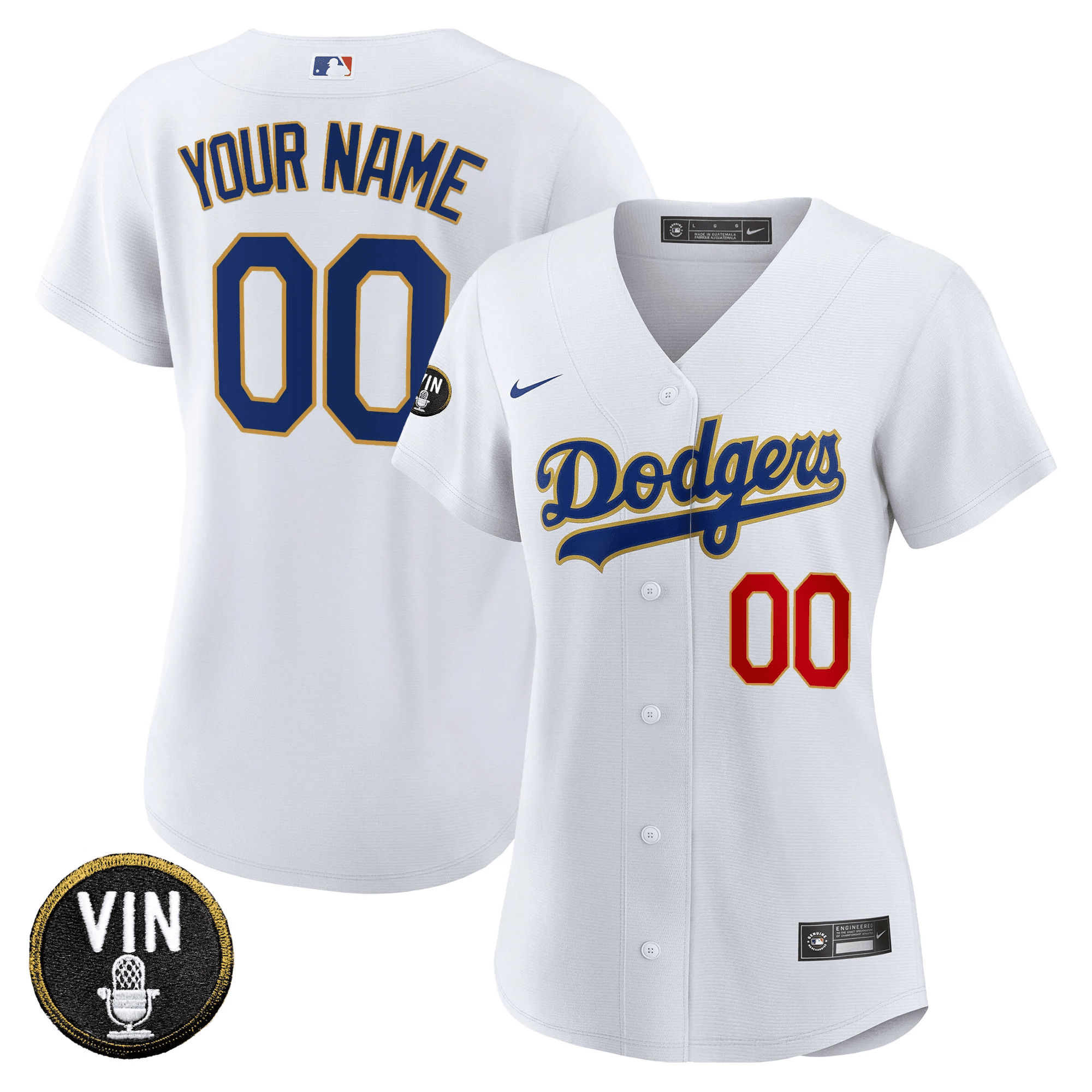 Women’s Dodgers 2025 World Series Gold Trim Vapor Premier Limited Jersey – All Stitched