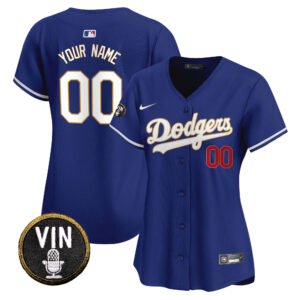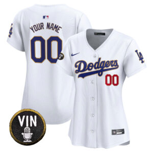 Women’s Dodgers 2025 World Series Gold Trim Vapor Premier Limited Jersey – All Stitched