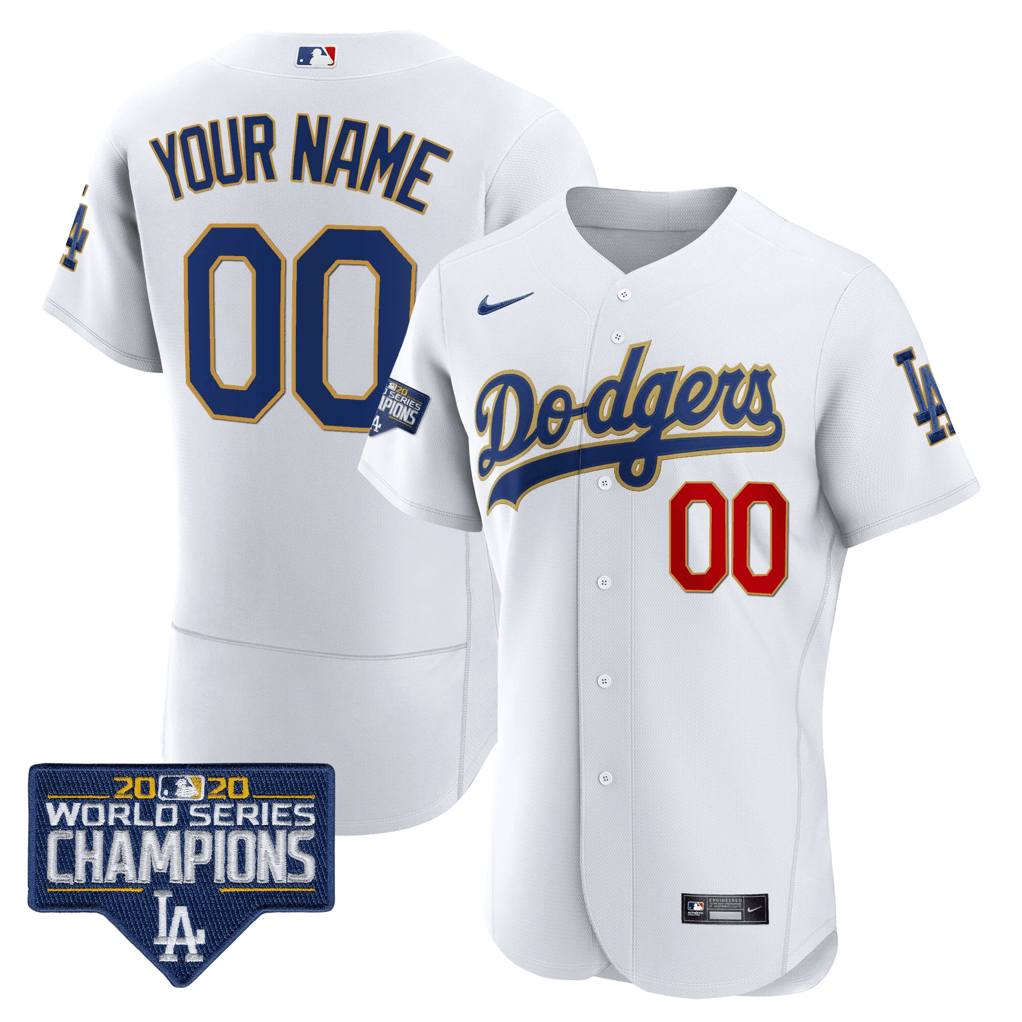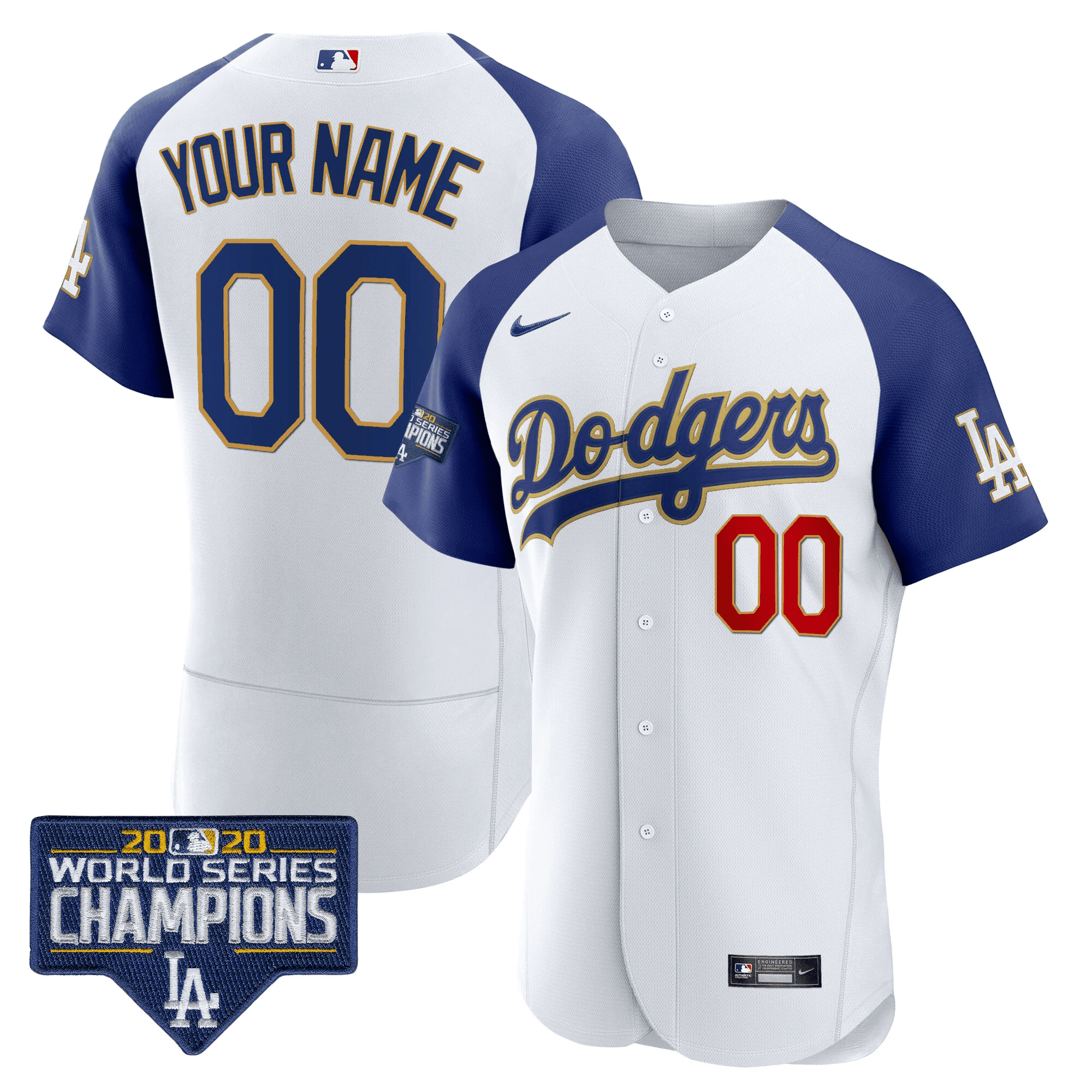 Dodgers World Series Champions Patch Flex Base Custom Jersey – All Stitched