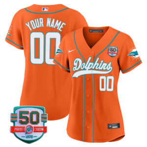Dolphins 50th 1972 Perfect Season Patch Baseball Custom Jersey – All Stitched