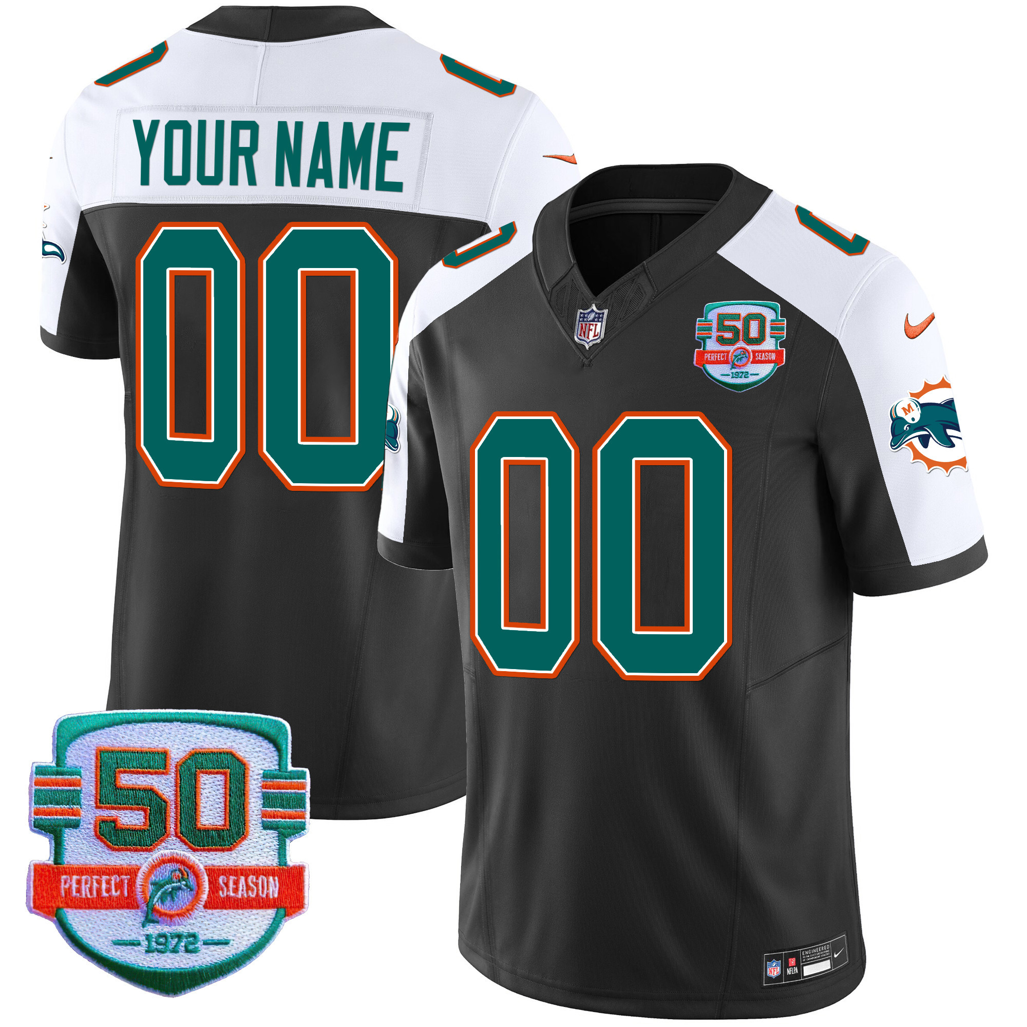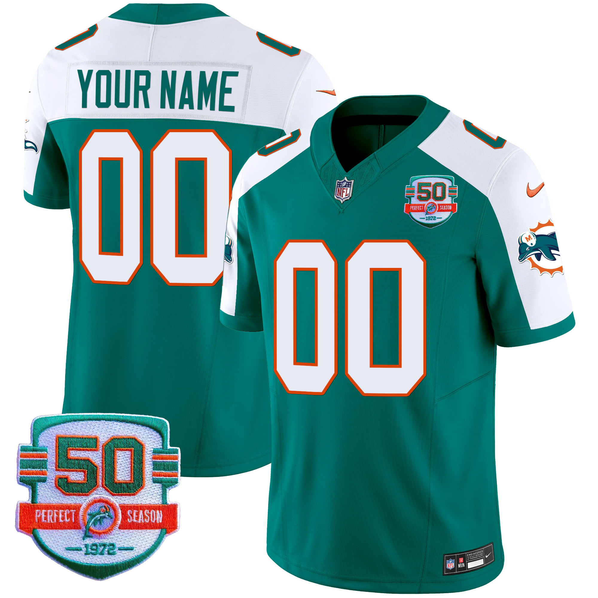 Dolphins Throwback Vapor Custom Jersey V2 – All Stitched