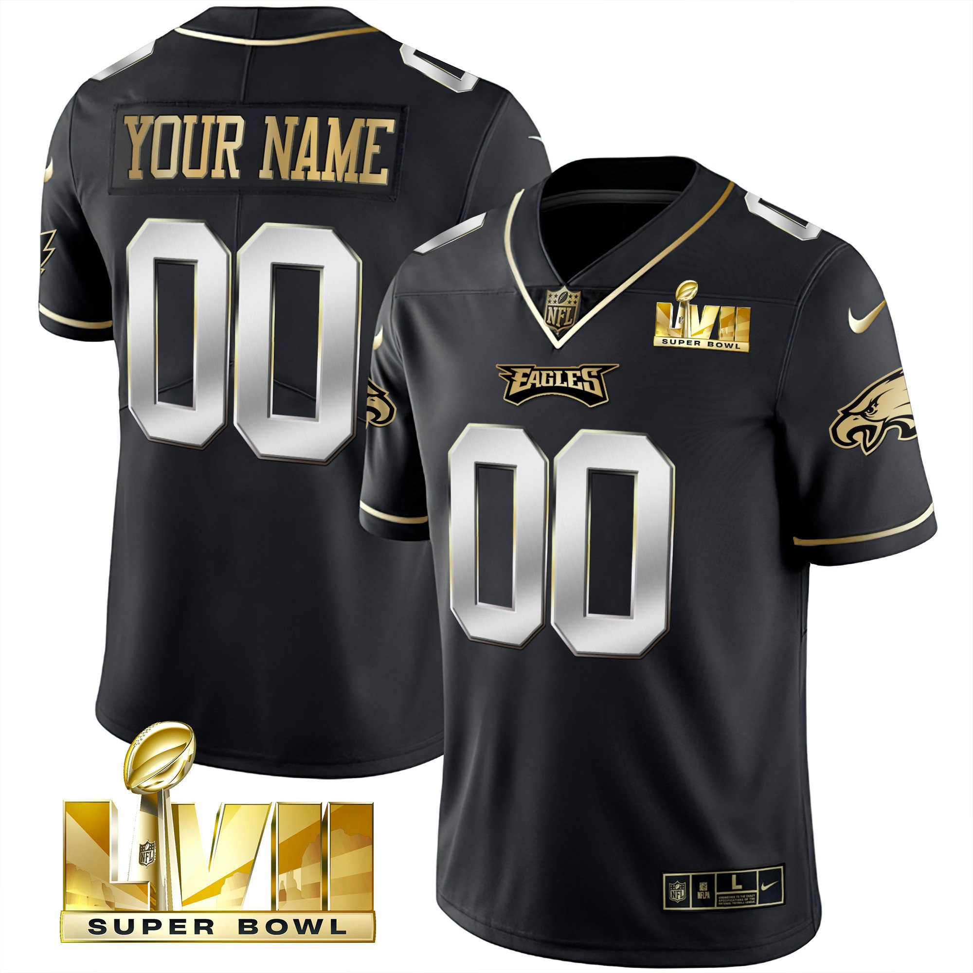 Eagles Super Bowl Gold Custom Vapor Jersey – All Stitched