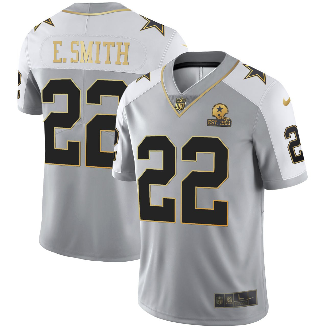 Emmitt Smith Dallas Cowboys Gray Gold Vapor Est 1960 Patch Jersey – All Stitched
