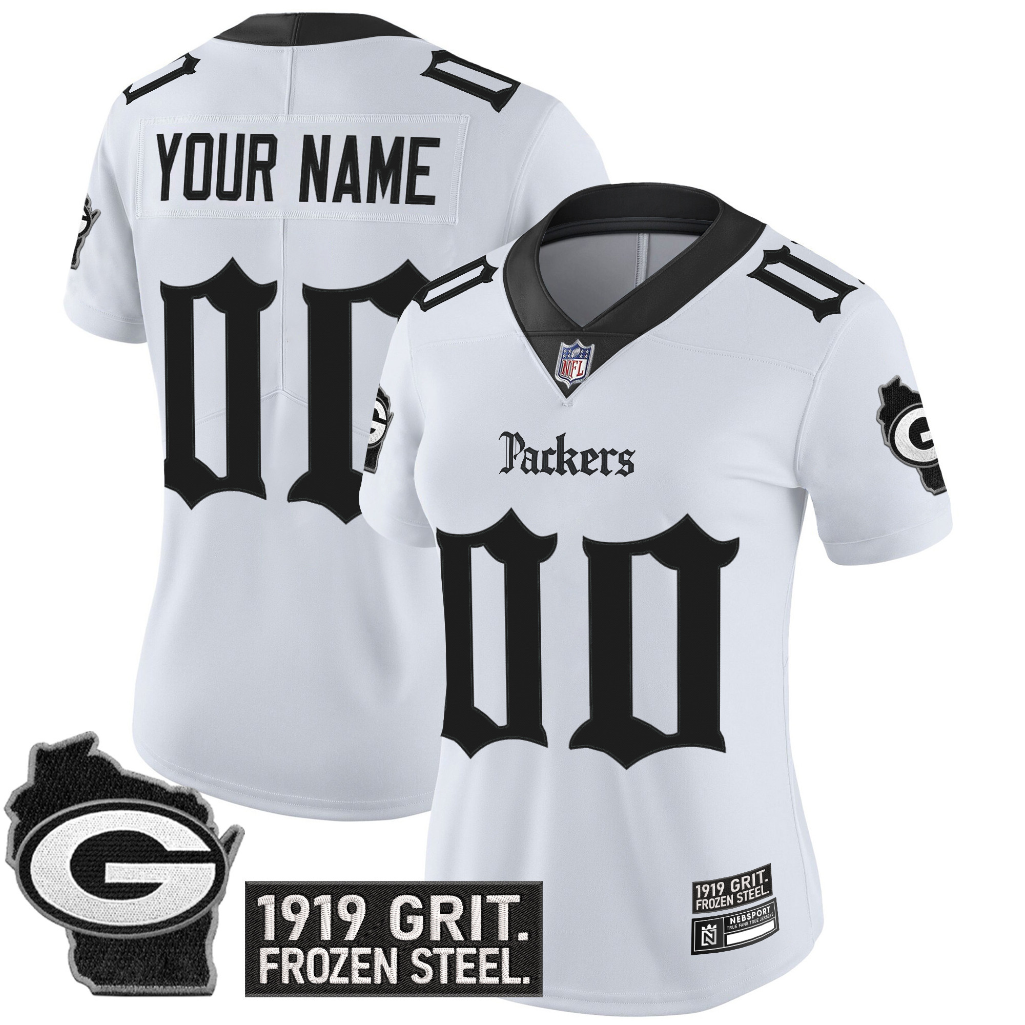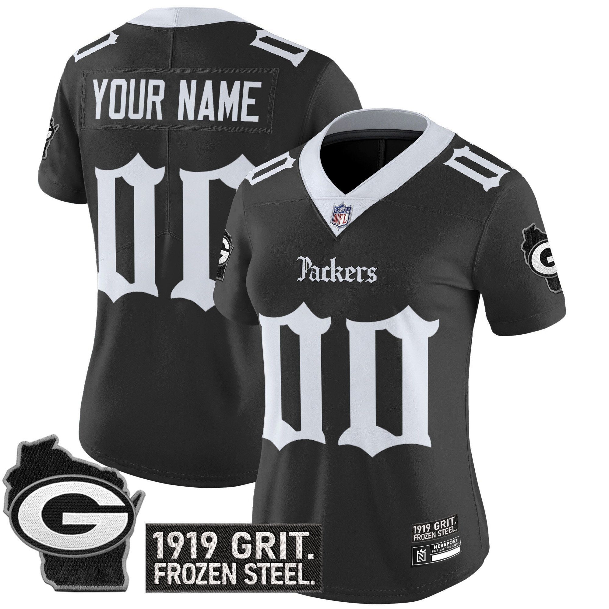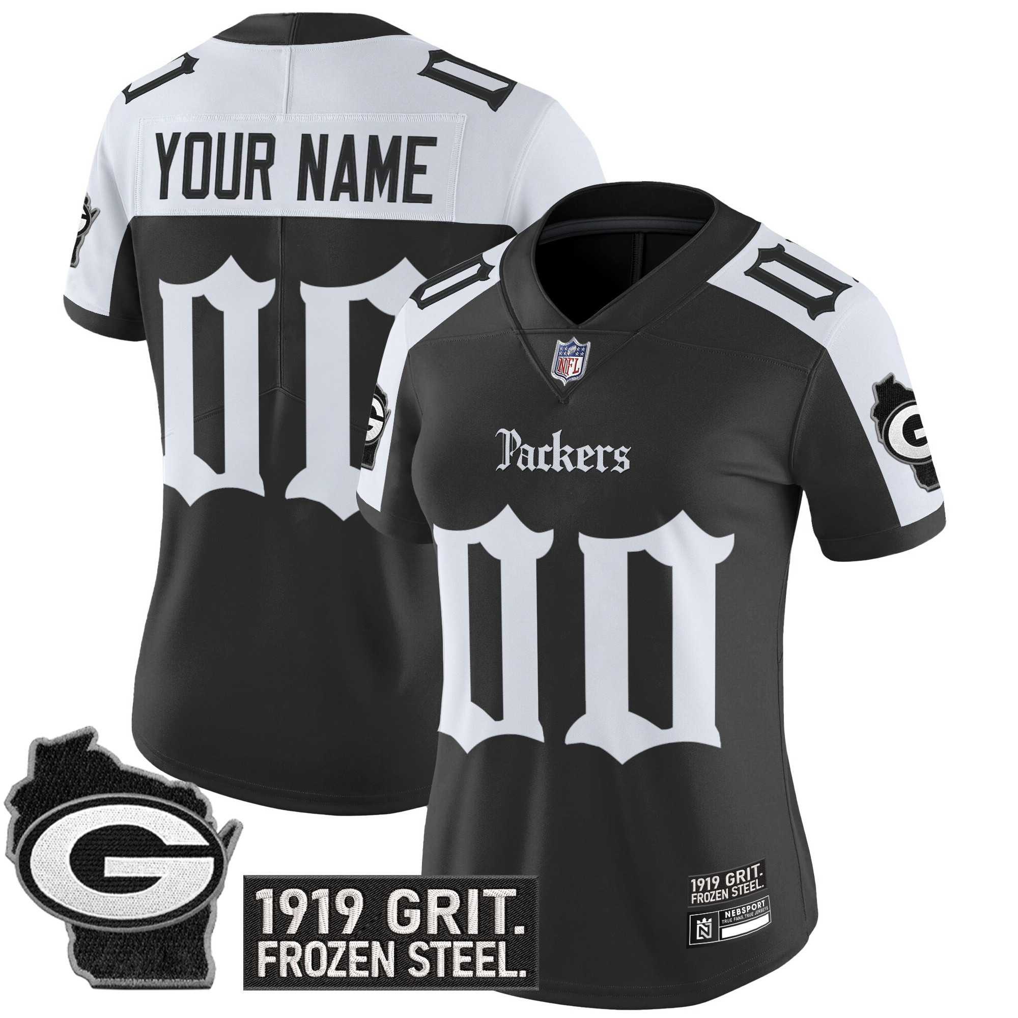 Women’s Green Bay Packers ‘Gothic Frozen Tundra Edition’ Vapor Limited Jersey – All Stitched
