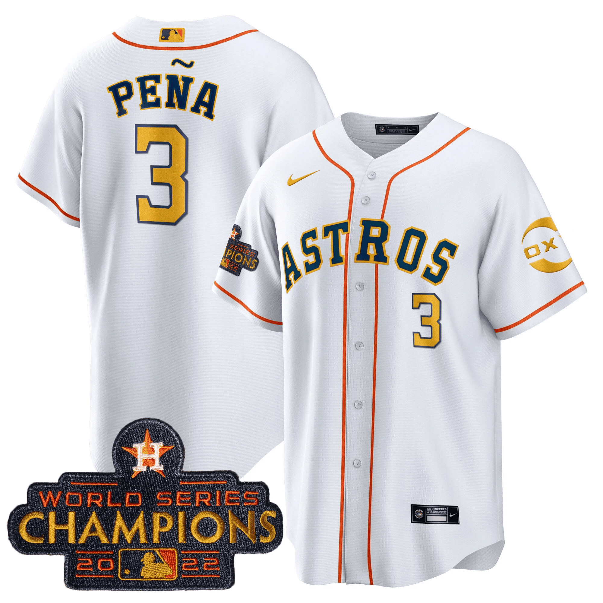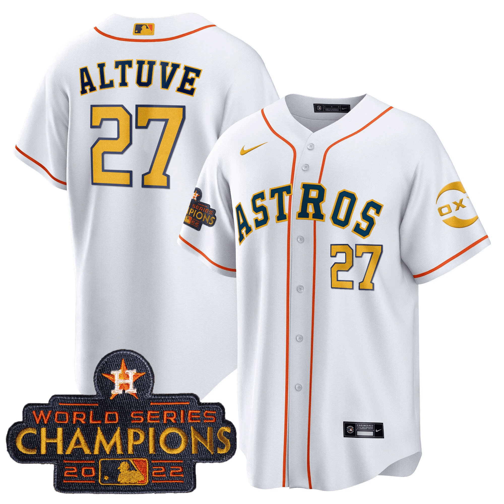 Houston Astros 2022 Champions Gold Rush Oxy Patch Cool Base Jersey – All Stitched