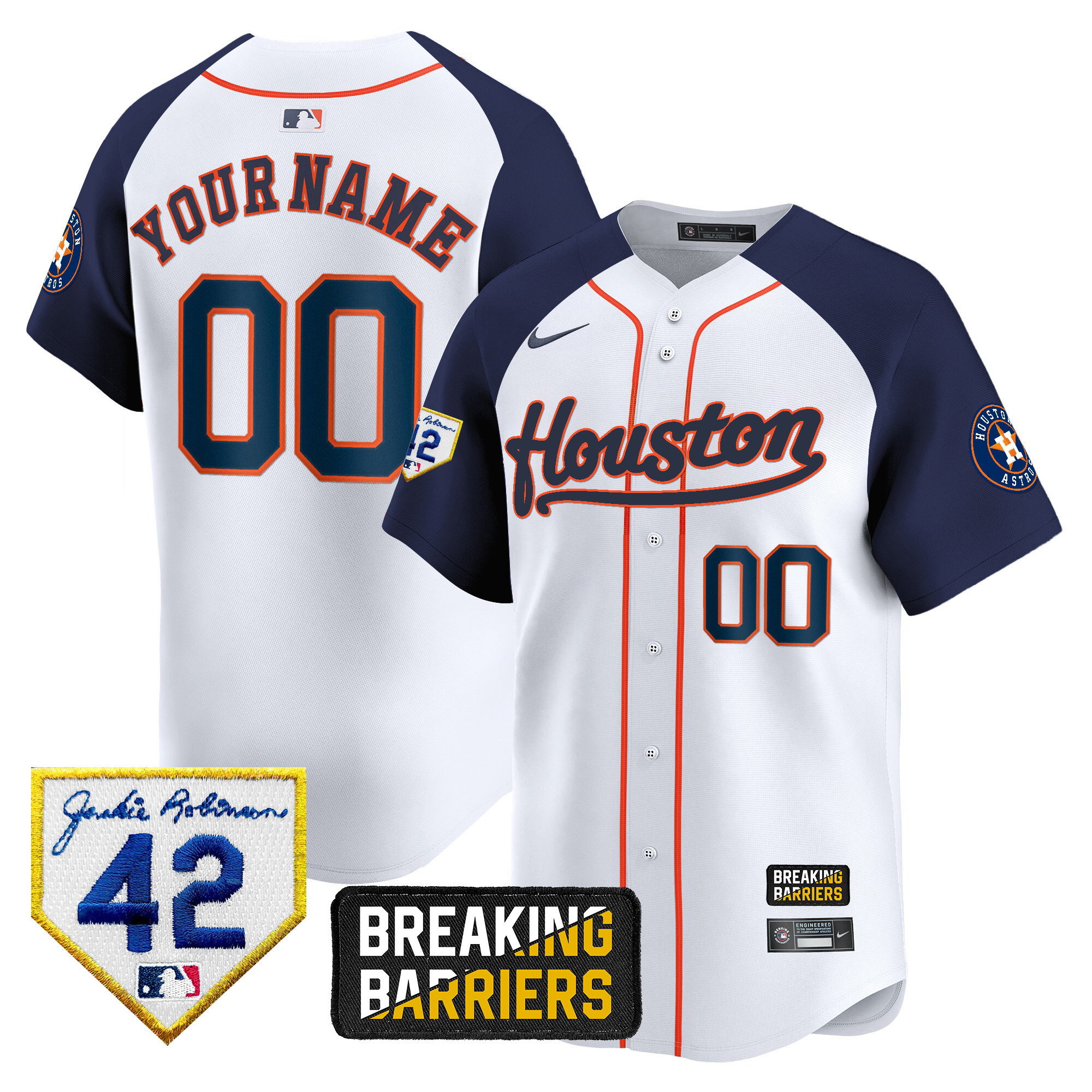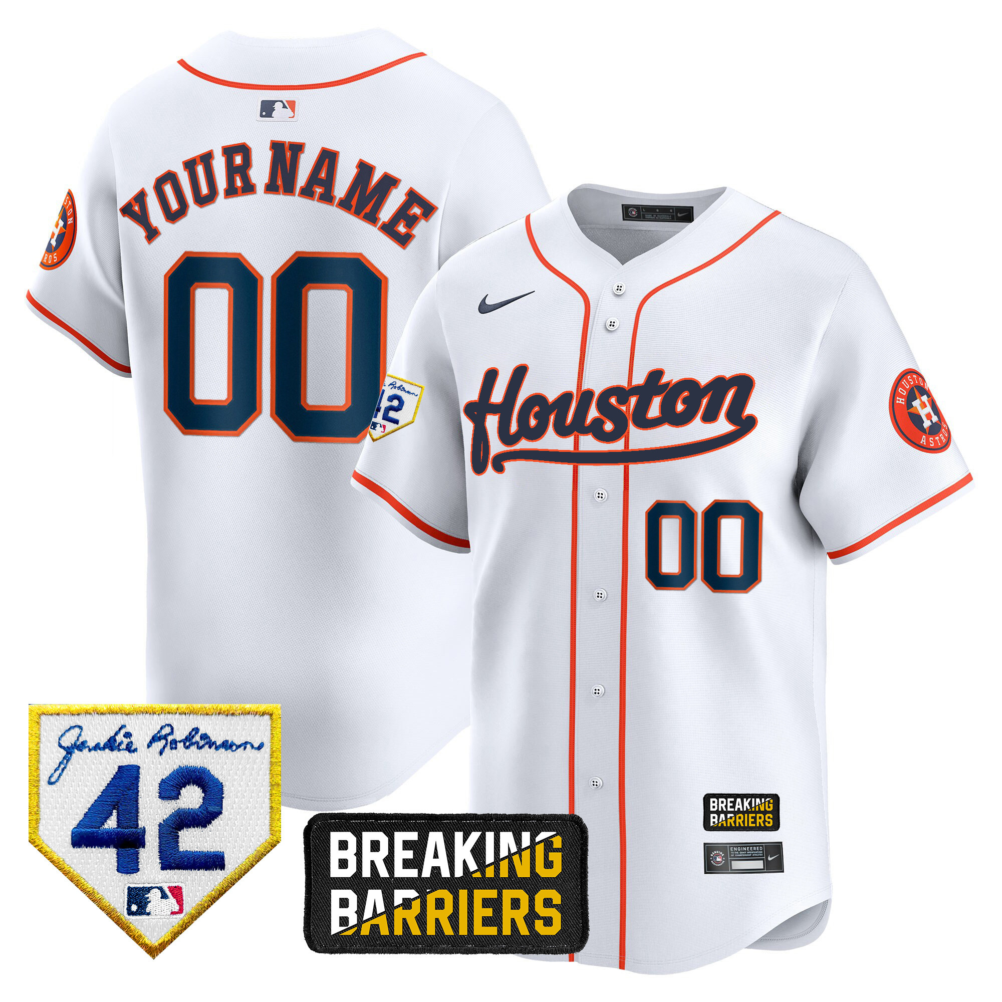 Houston Astros Jackie Robinson Breaking Barriers Patch Vapor Premier Limited Custom Jersey – All Stitched