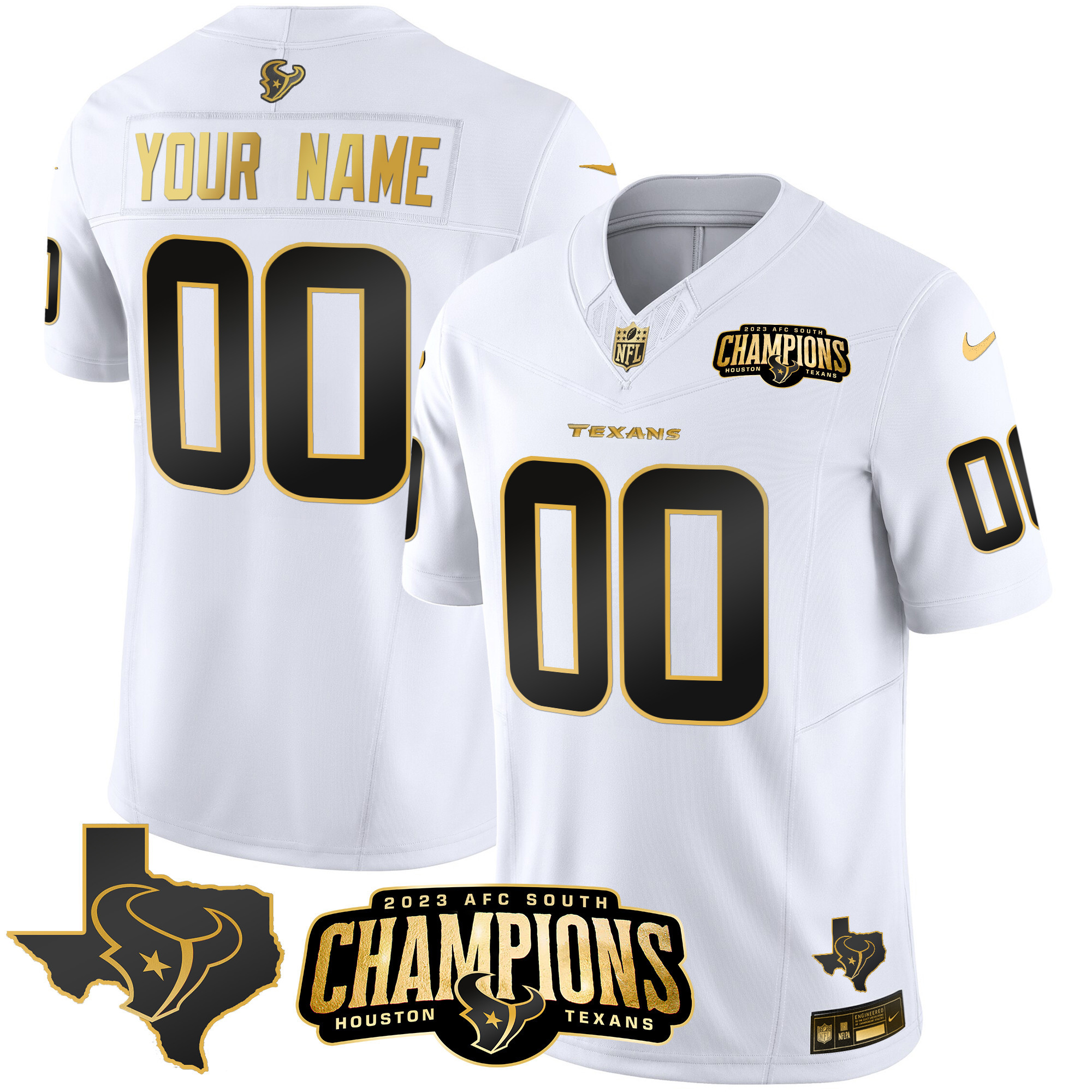 Houston Texans 2023 AFC South Champions Patch Gold Vapor Custom Jersey – All Stitched