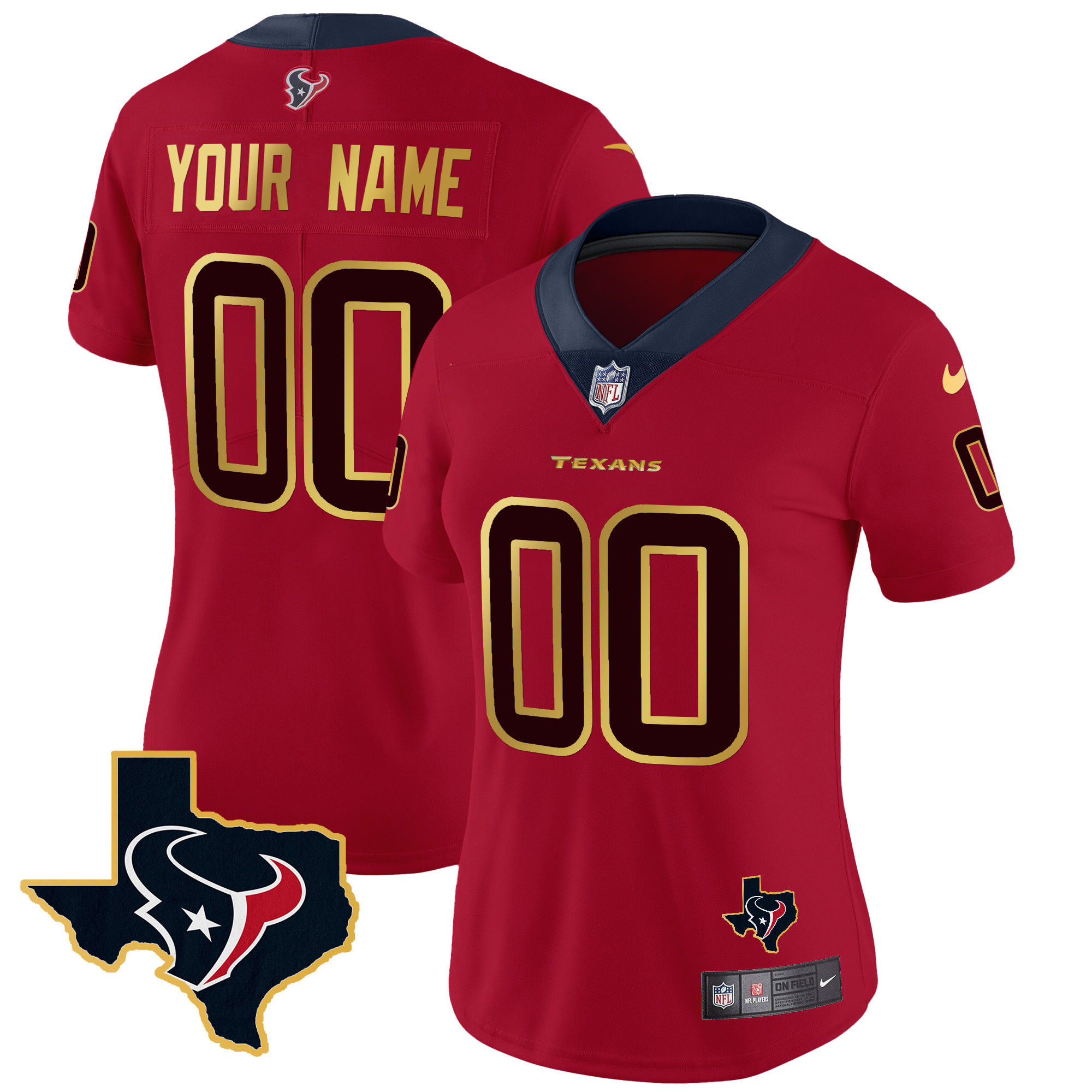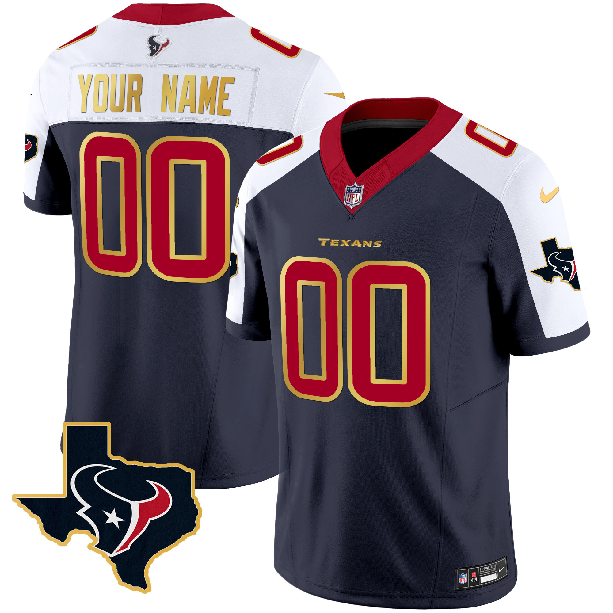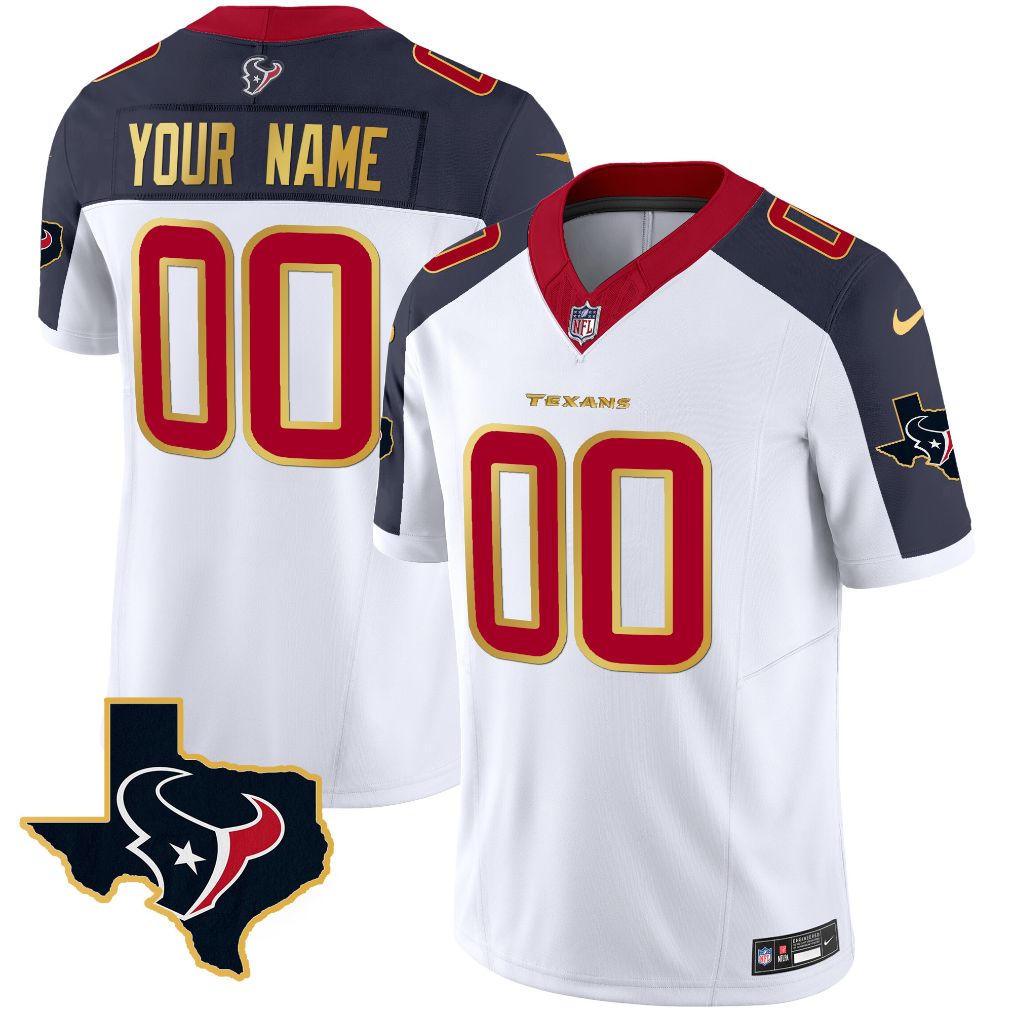 Houston Texans Gold Trim Vapor Custom Jersey – All Stitched