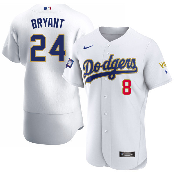Kobe Bryant Lakers Patch Dodgers 2020 Championship Gold Trim Flex Base White Jersey – All Stitched