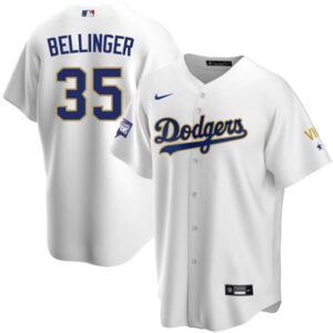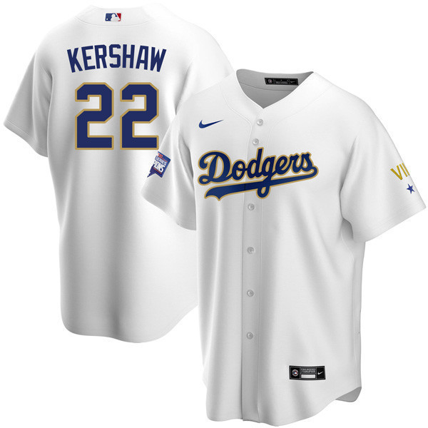 Los Angeles Dodgers 2020 Championship Gold Trim Cool Base White Jersey – All Stitched
