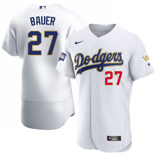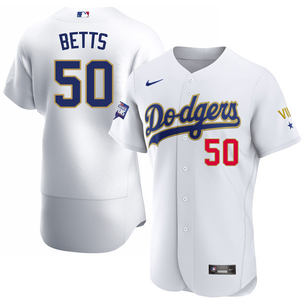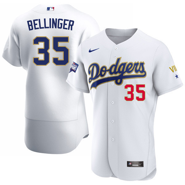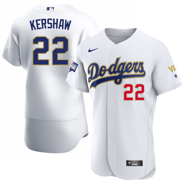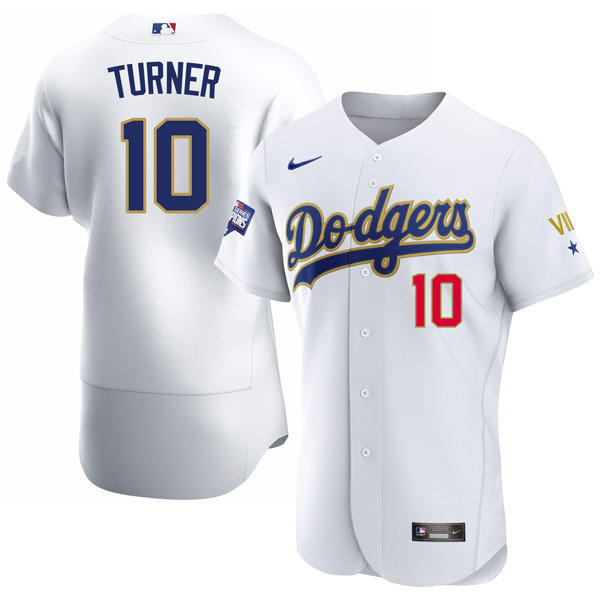 Los Angeles Dodgers 2020 Championship Gold Trim Flex Base White Jersey – All Stitched
