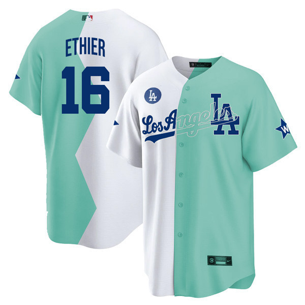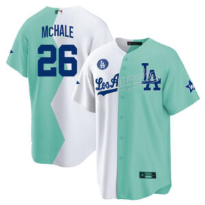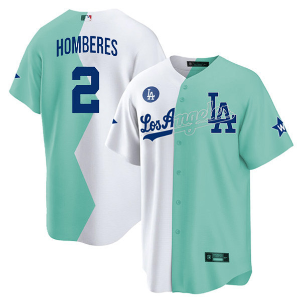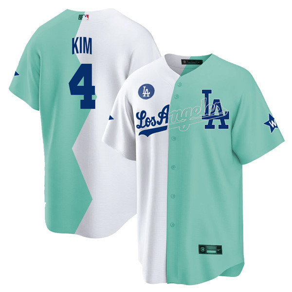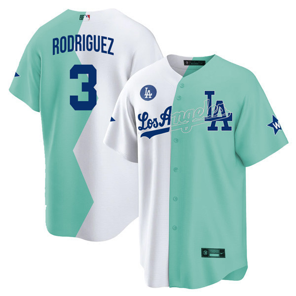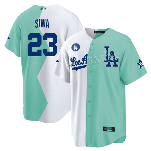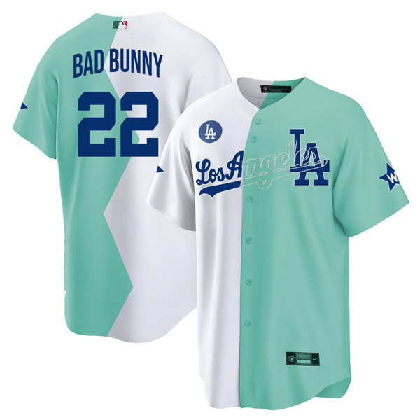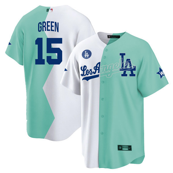 Los Angeles Dodgers Cool Base White Green 2022 MLB All-Star Celebrity Softball Game Split Jersey – All Stitched