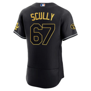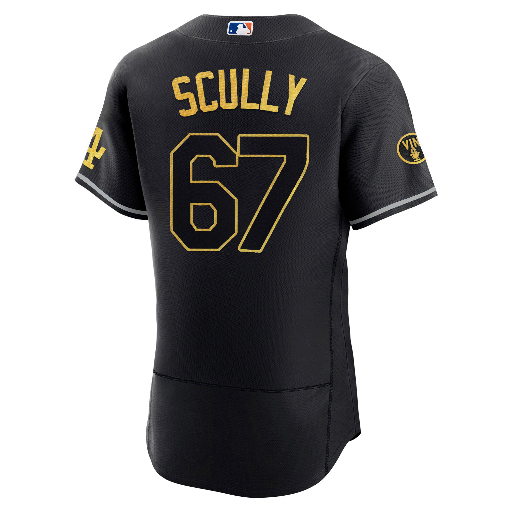 Los Angeles Dodgers Vin Scully Patch Black Gold Respect Jersey – All Stitched