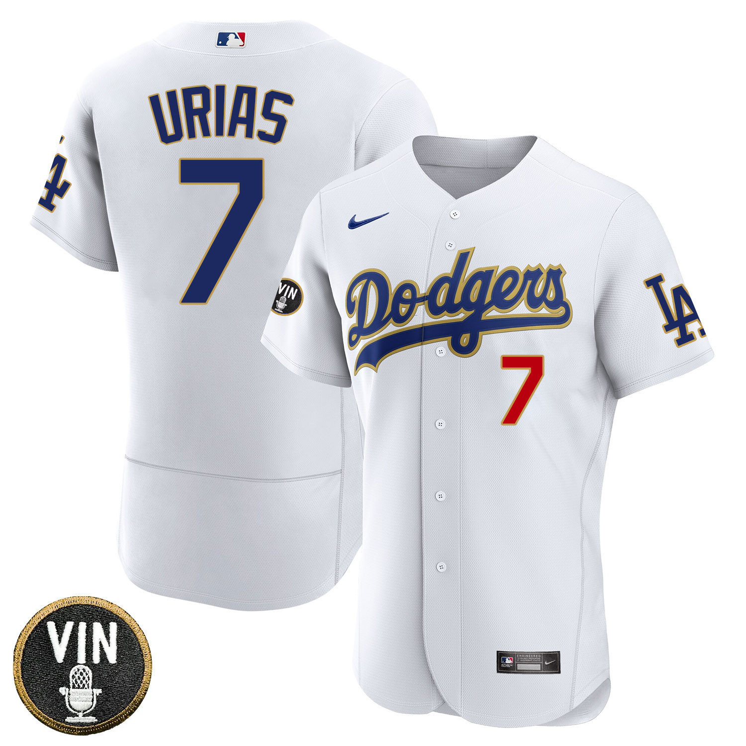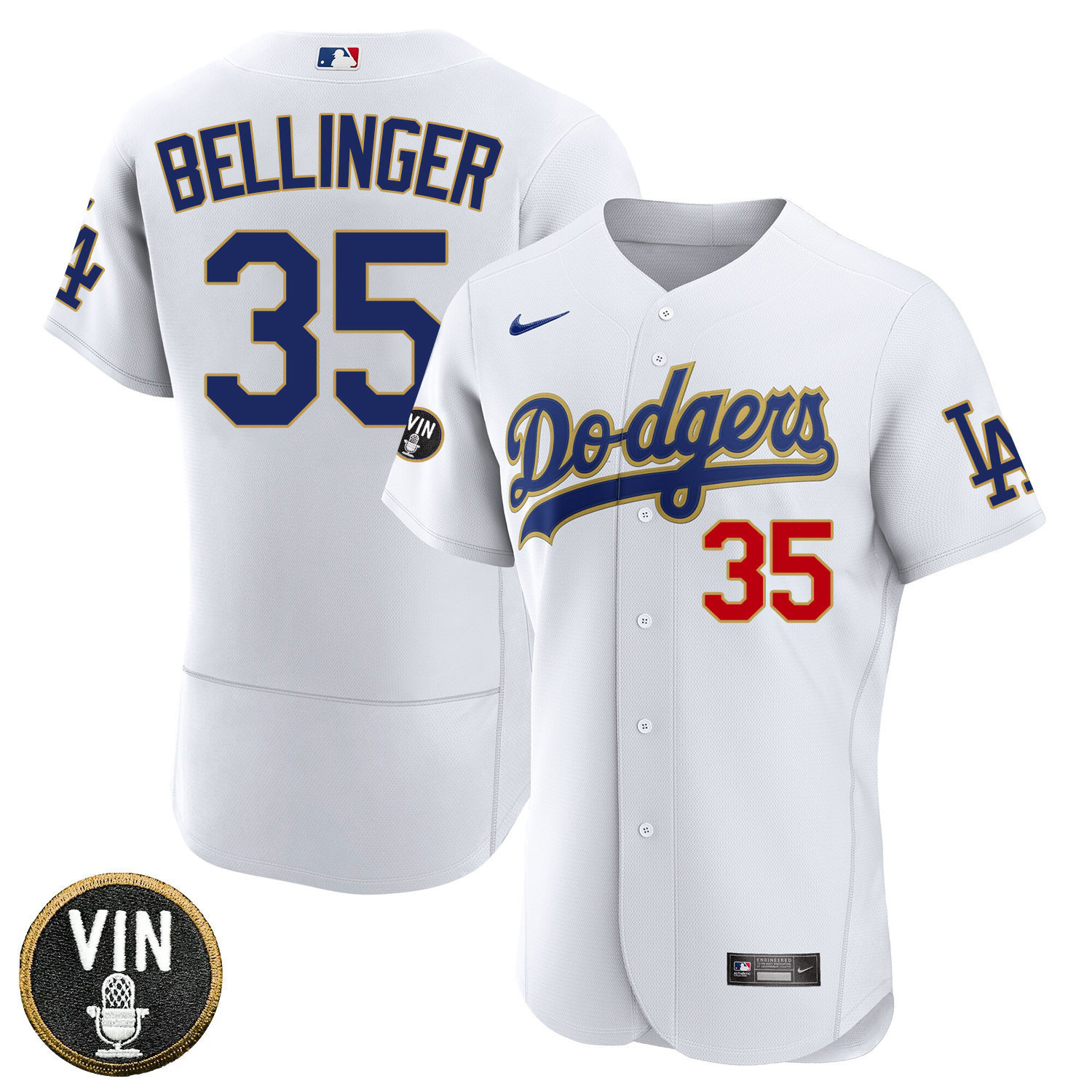 Los Angeles Dodgers Vin Scully Patch Gold Trim Player Jersey – White – All Stitched