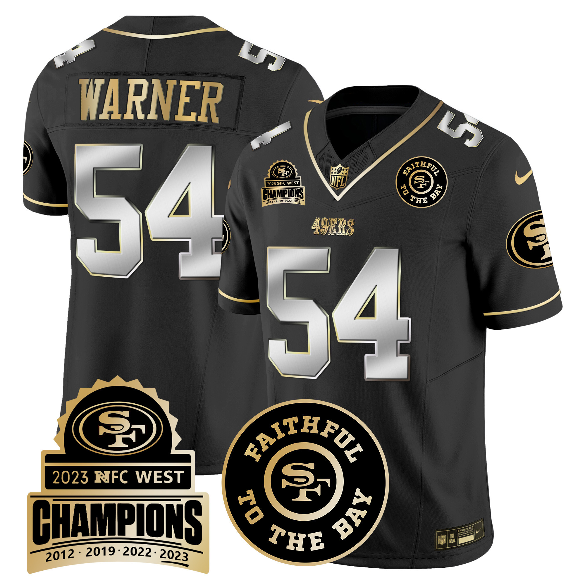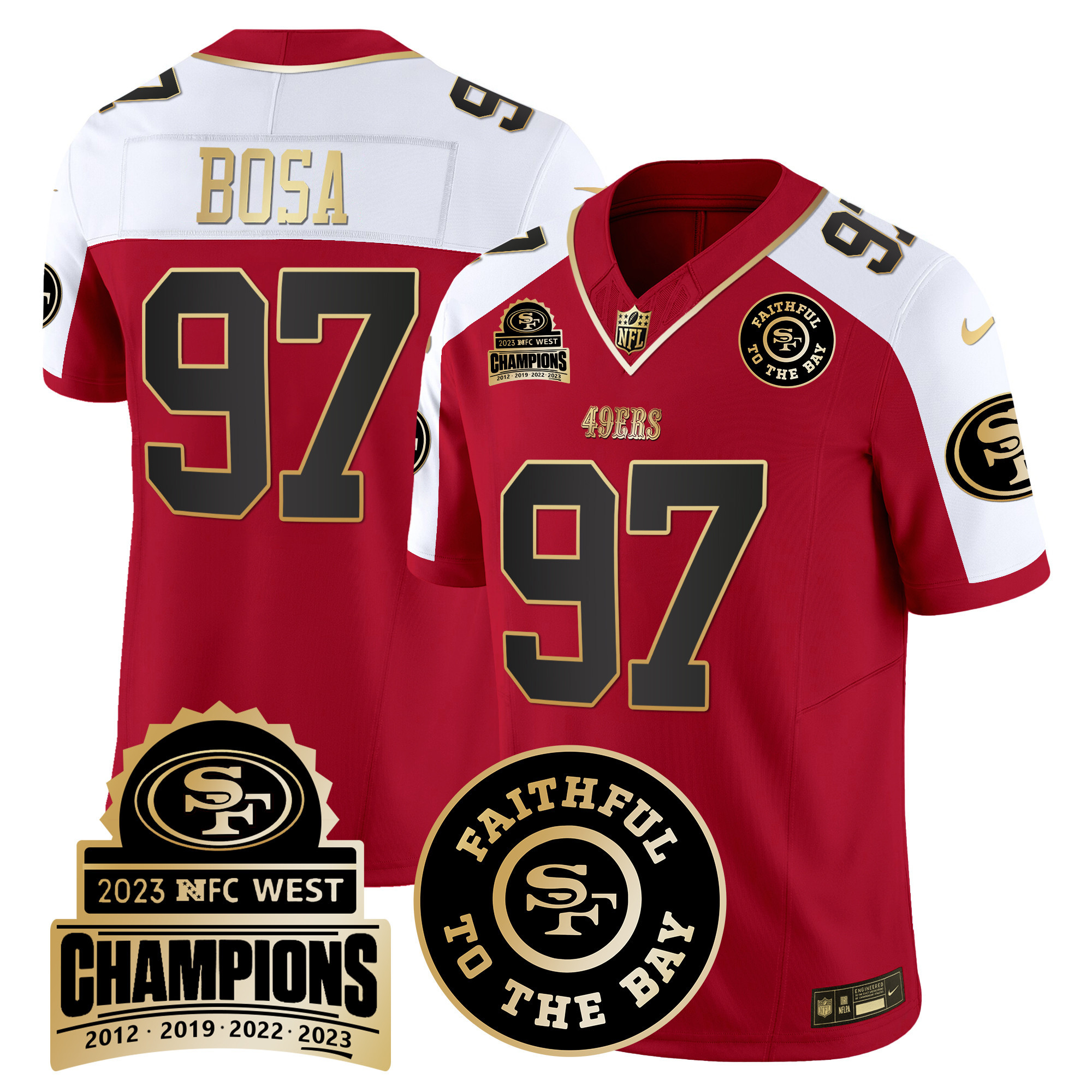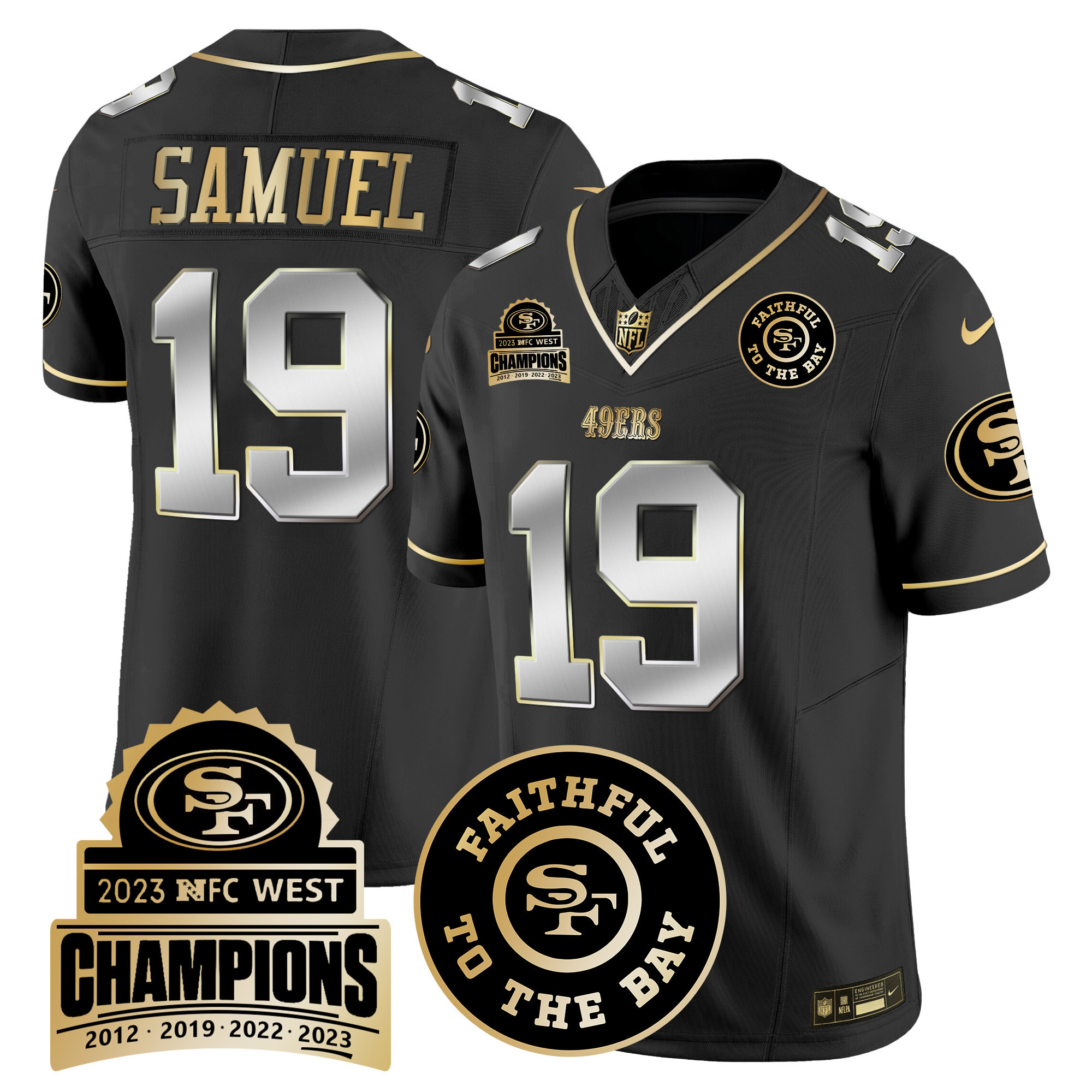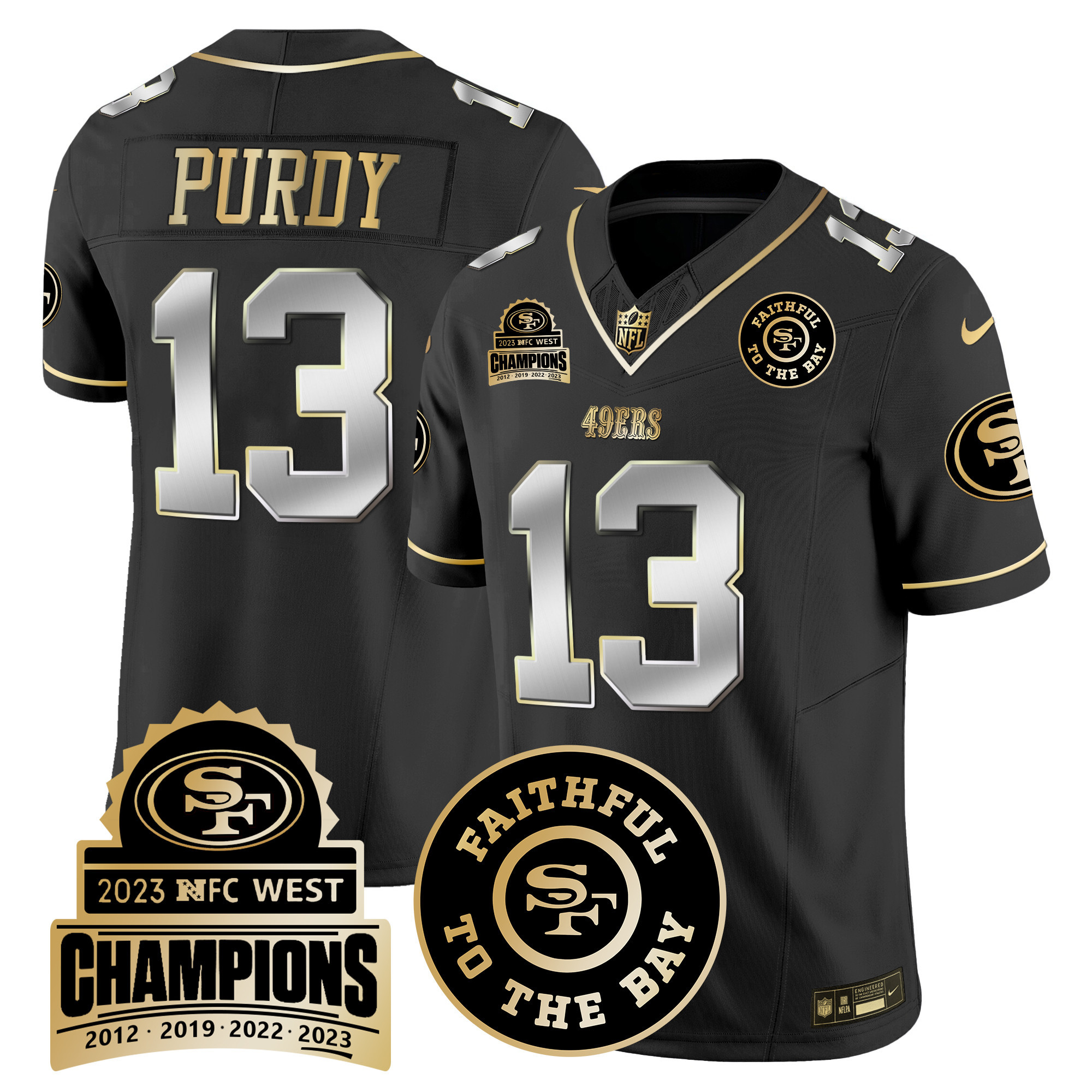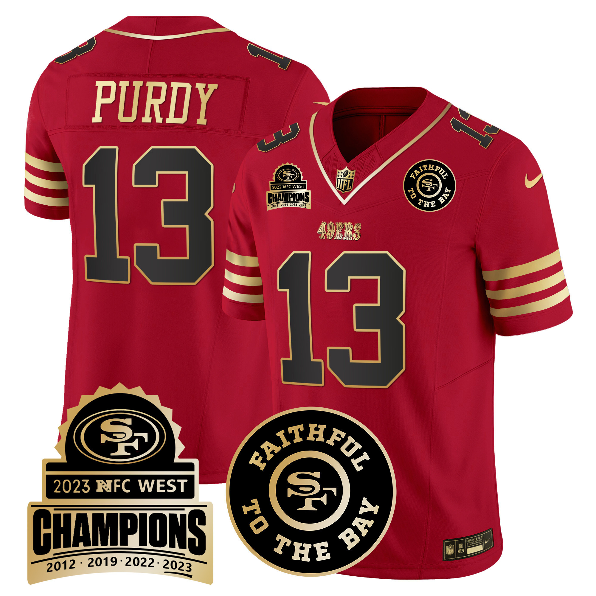 Men’s 49ers 2023 NFC West Champions Patch Vapor Jersey V3 – All Stitched