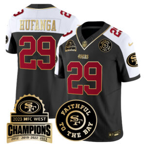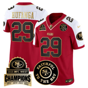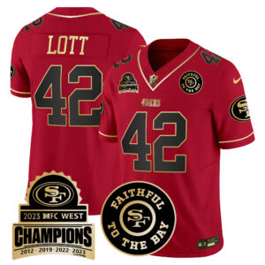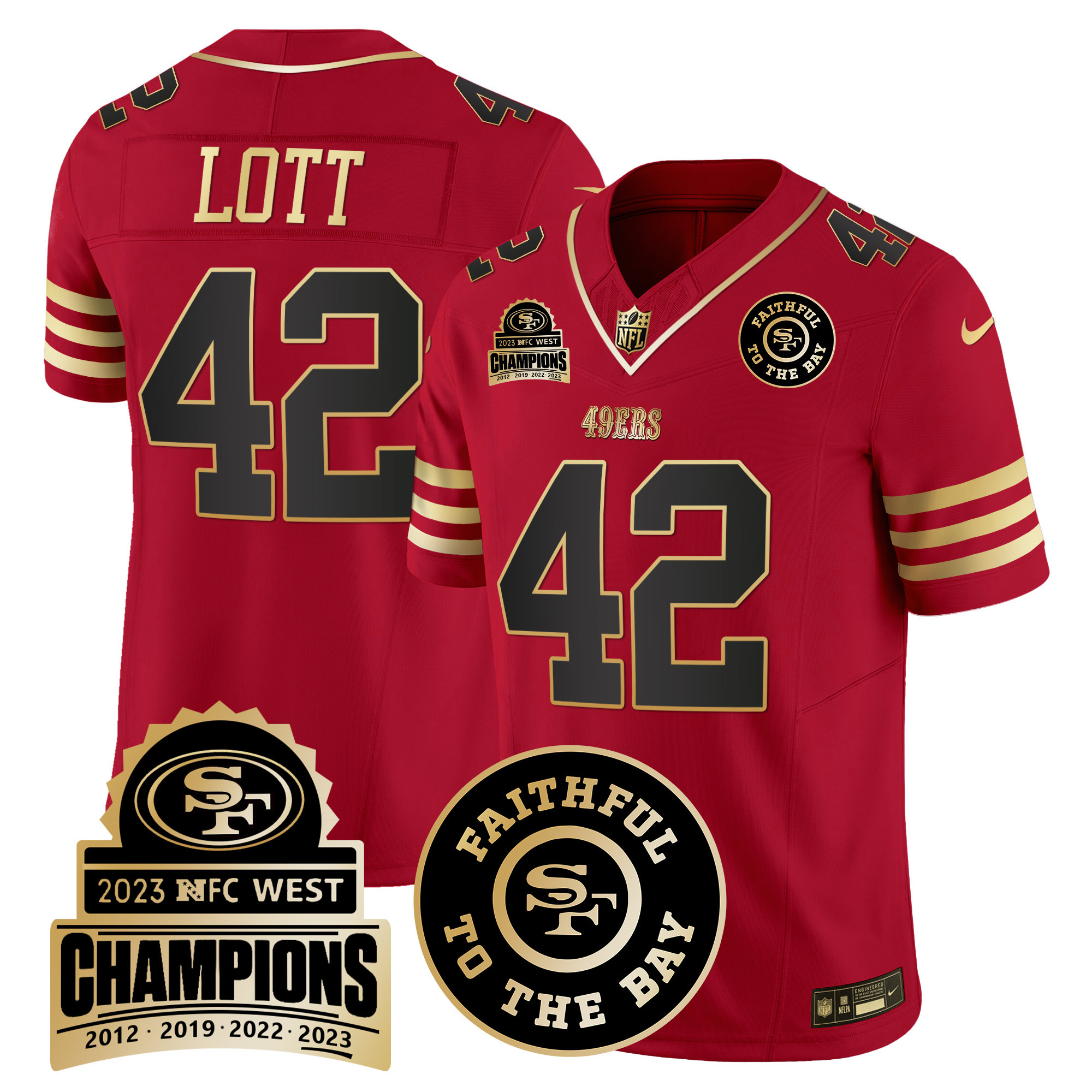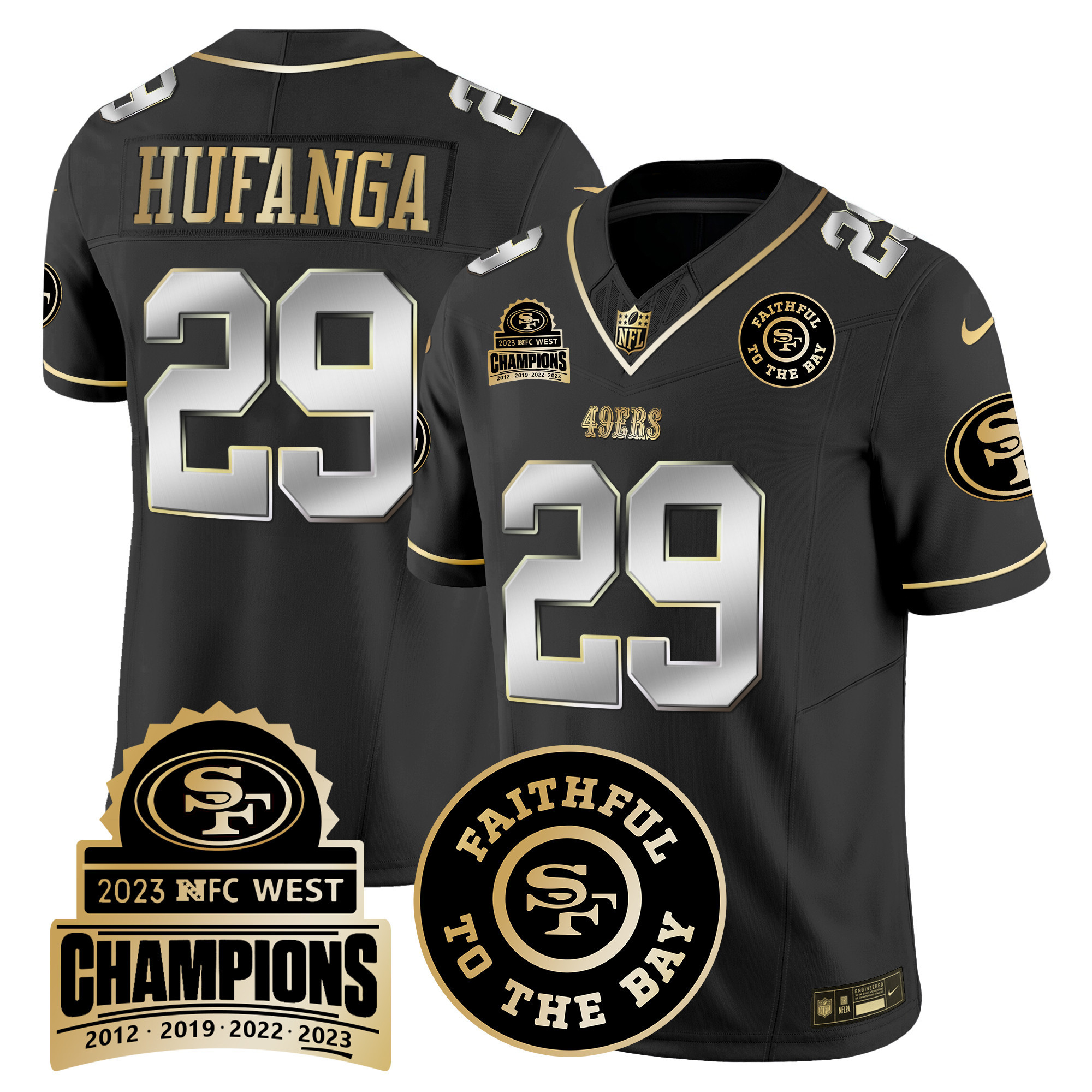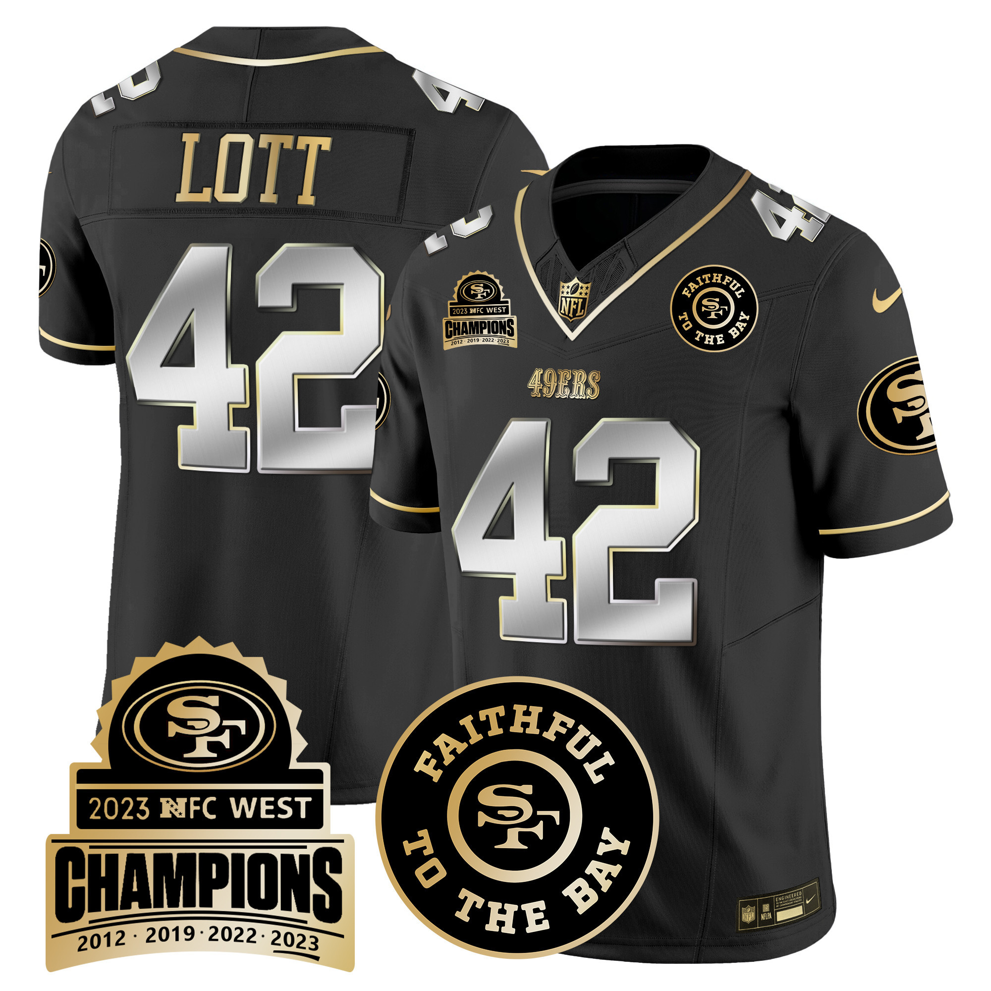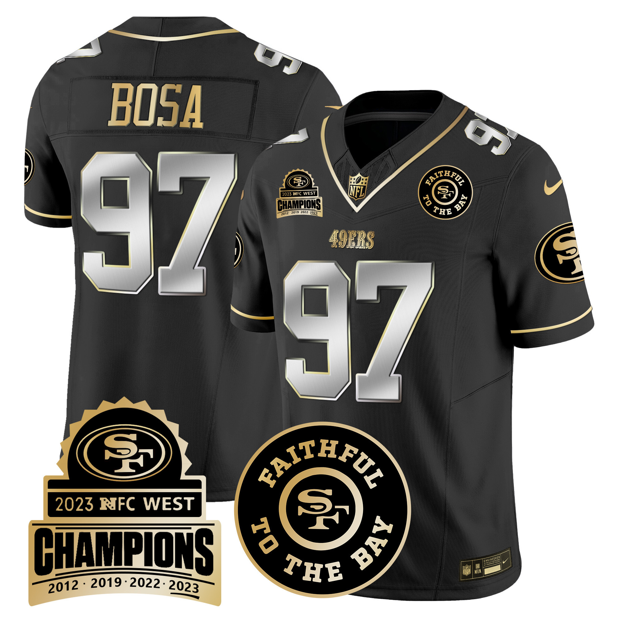 Men’s 49ers 2023 NFC West Champions Patch Vapor Jersey V3 – All Stitched
