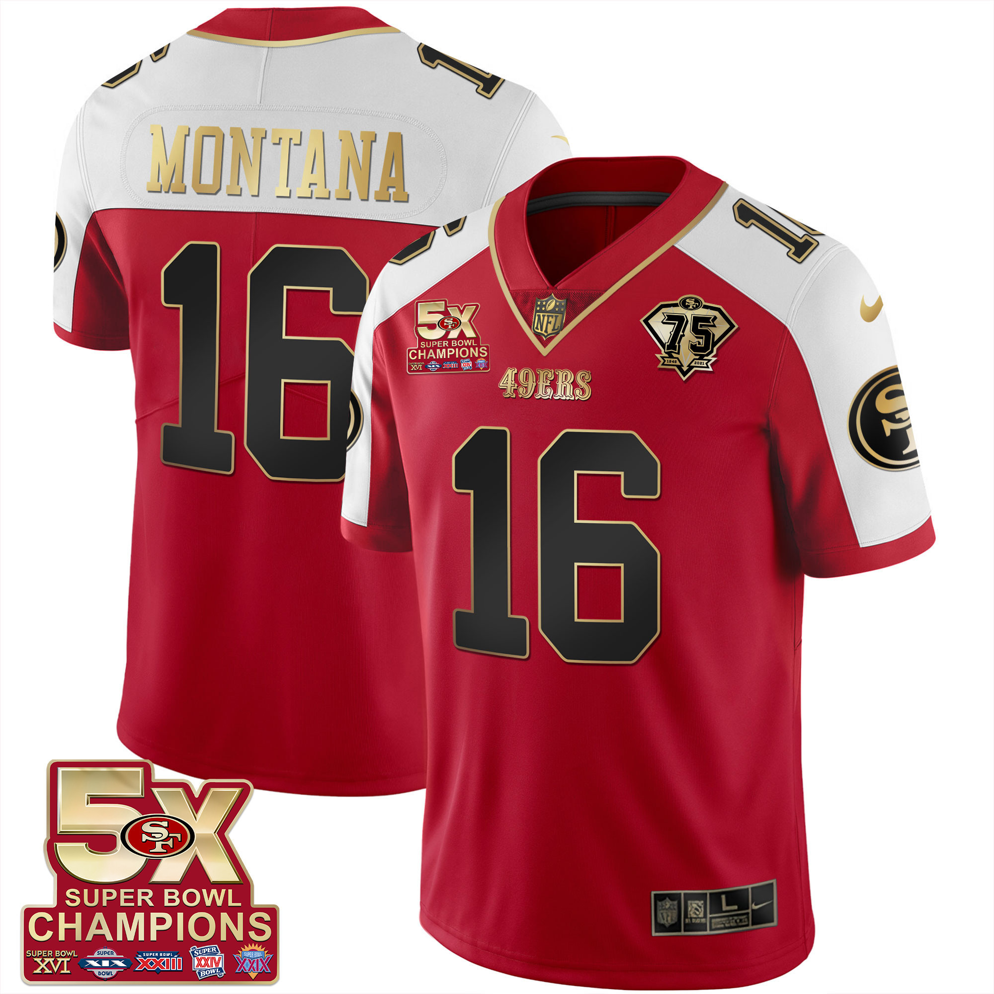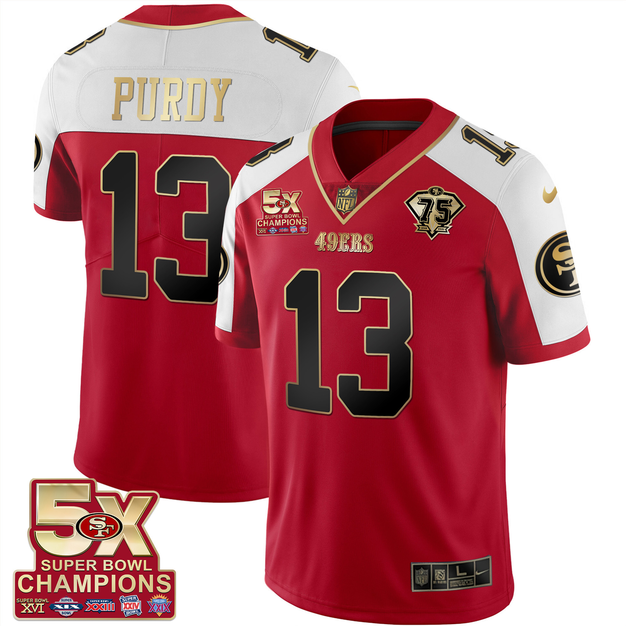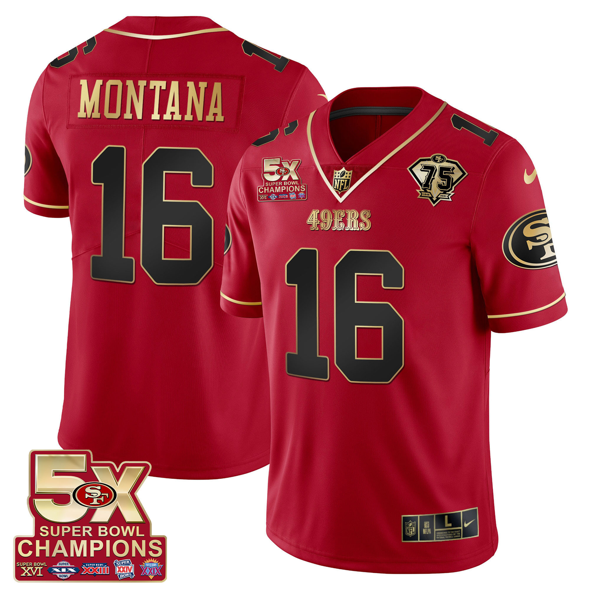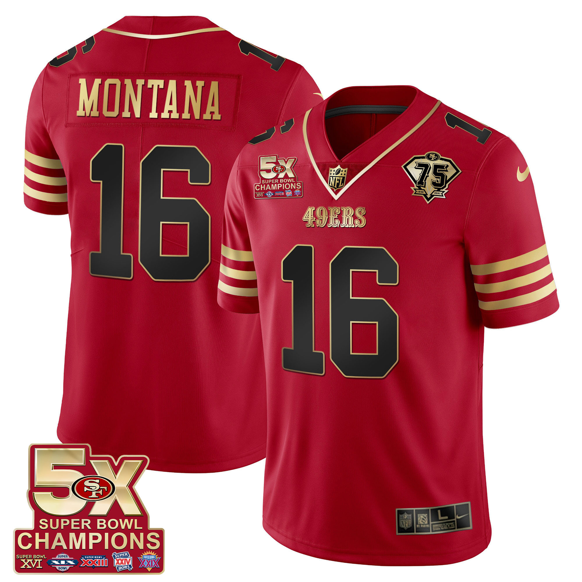 Men’s 49ers 5x Super Bowl Patch Black Red Vapor Jersey – Stitched
