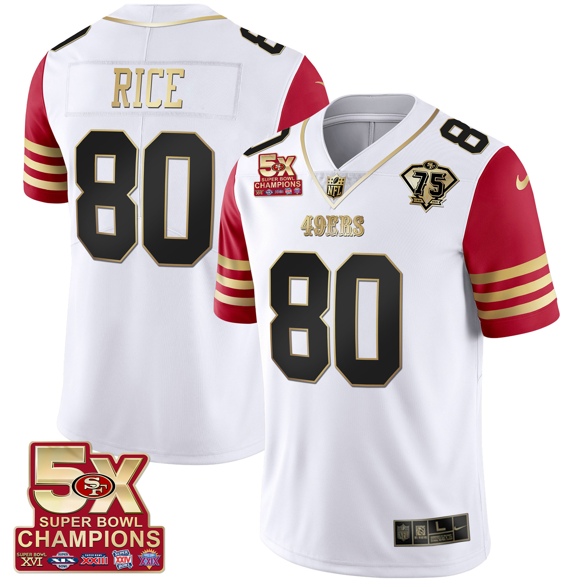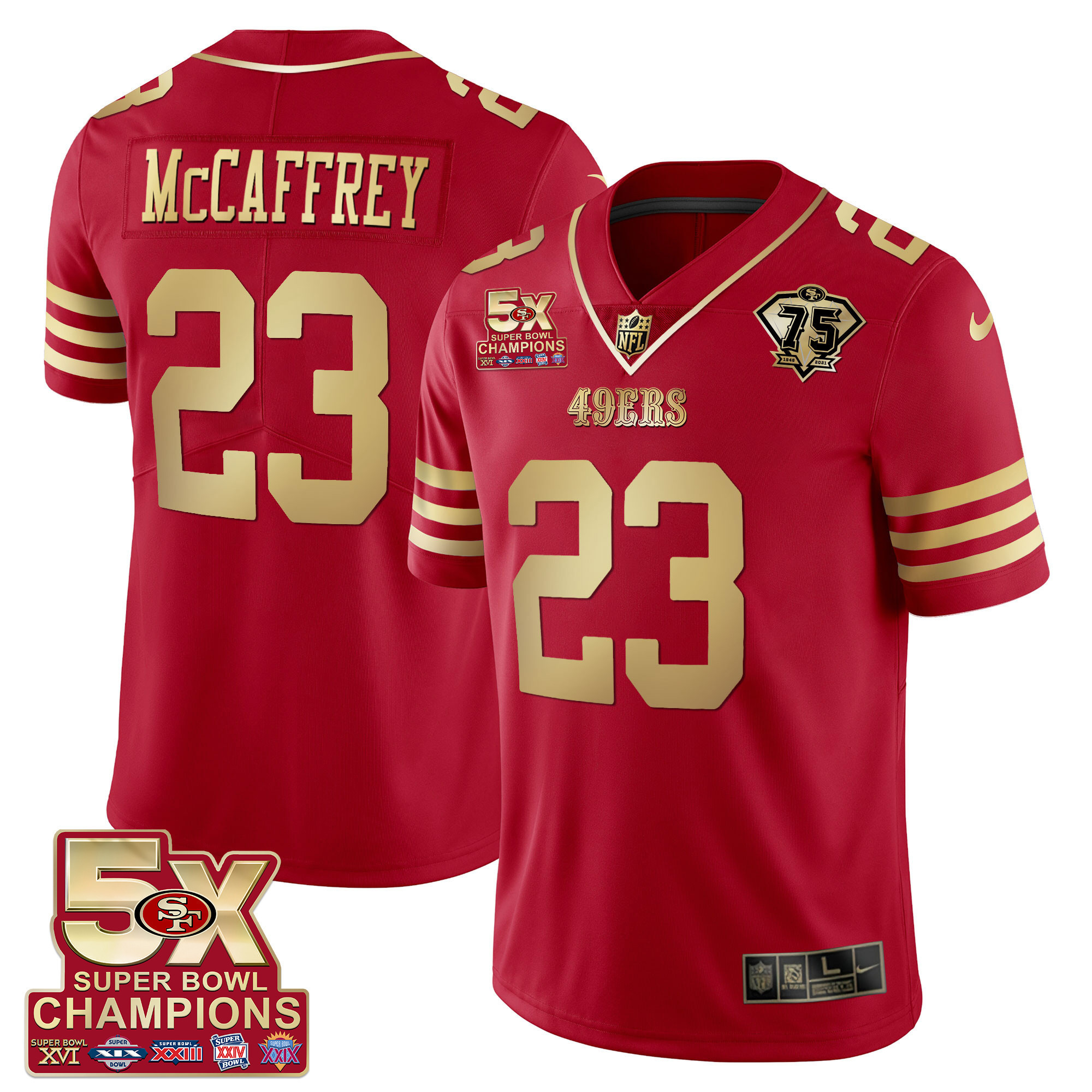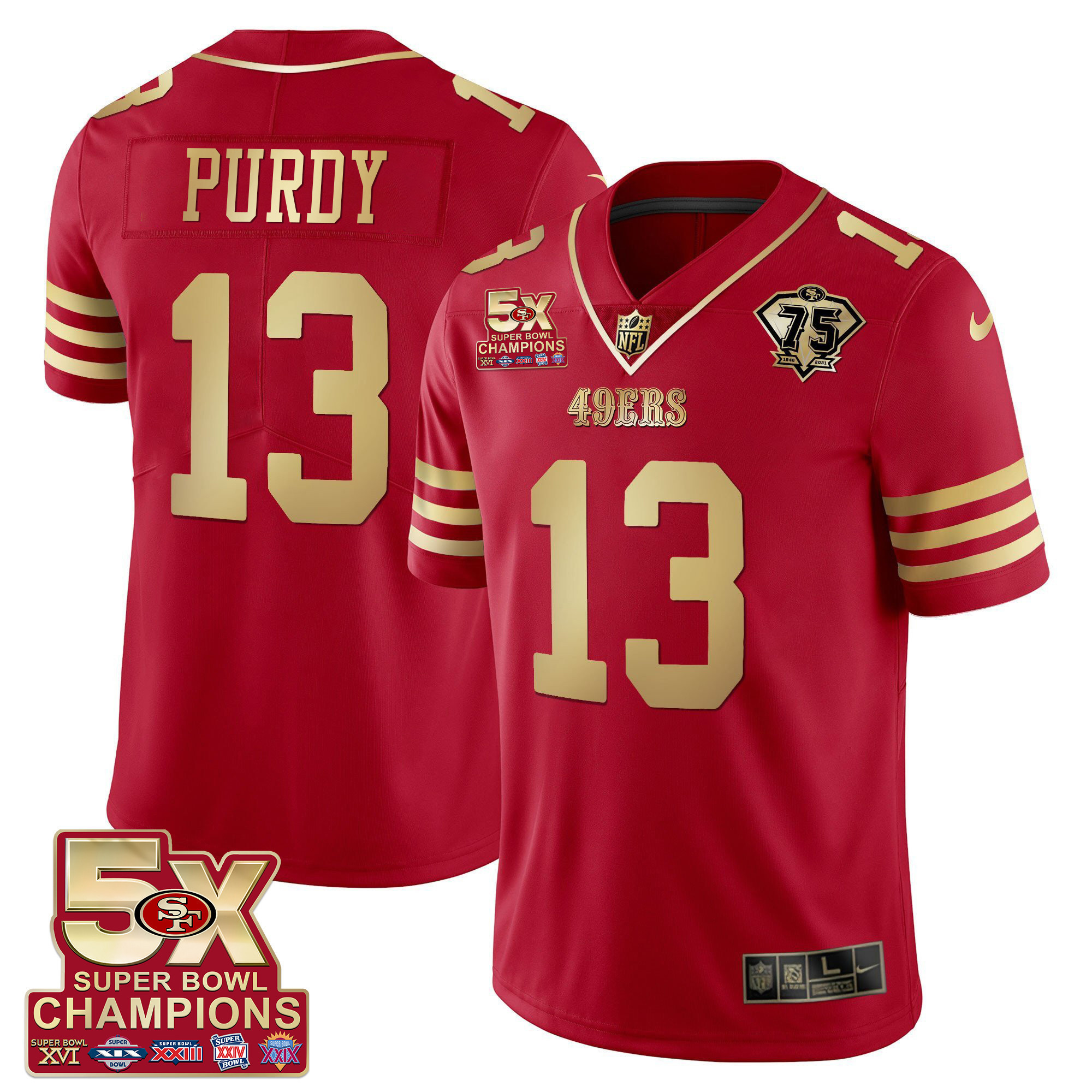 Men’s 49ers 5x Super Bowl Patch Black Red Vapor Jersey – Stitched