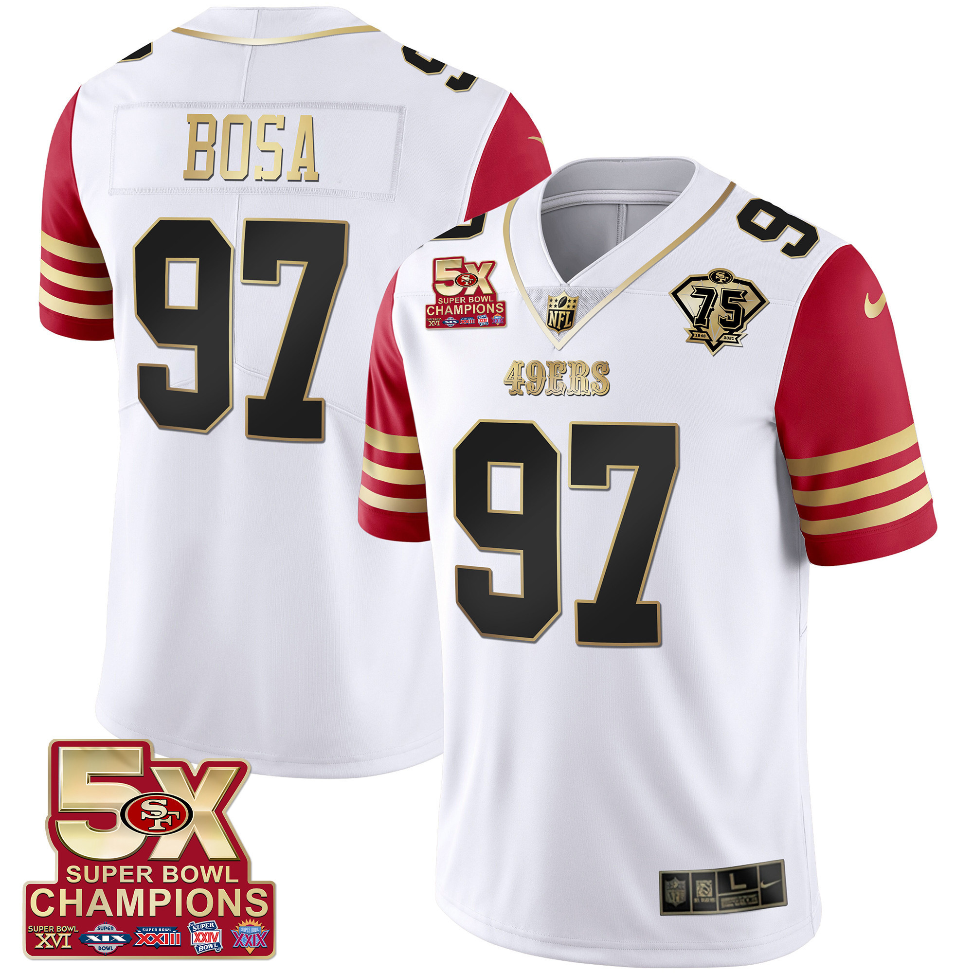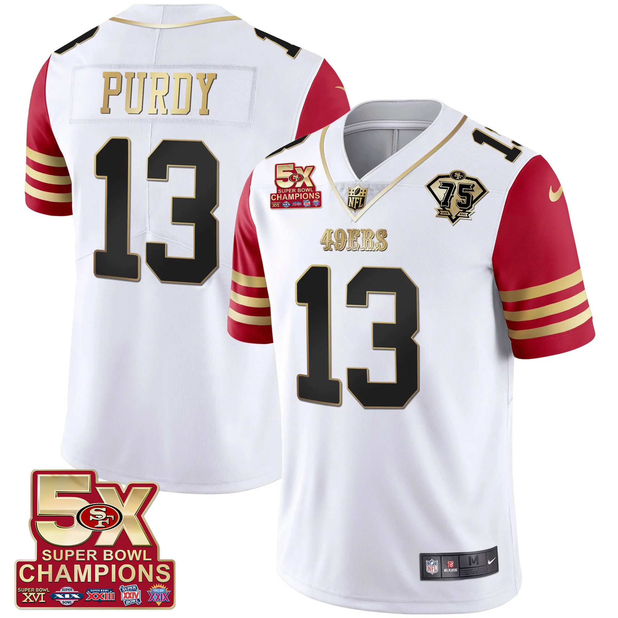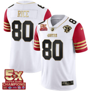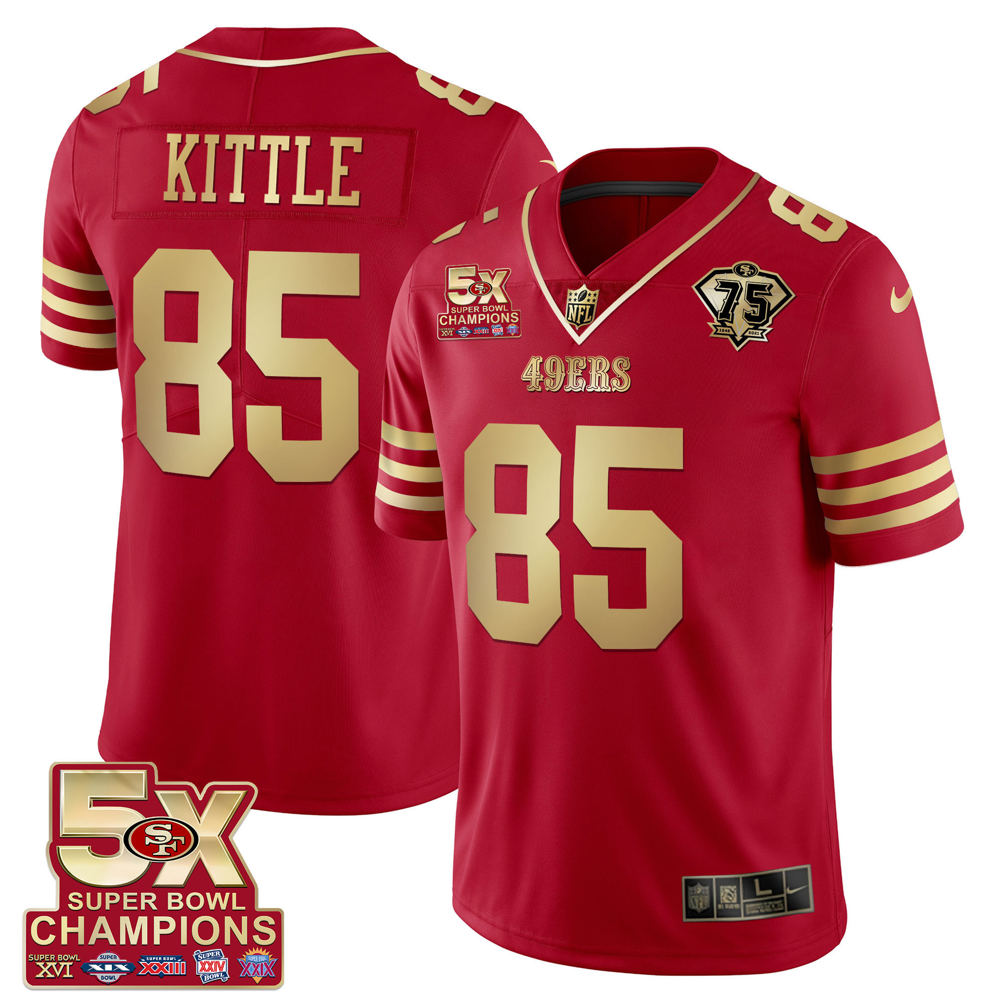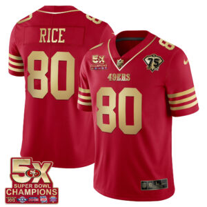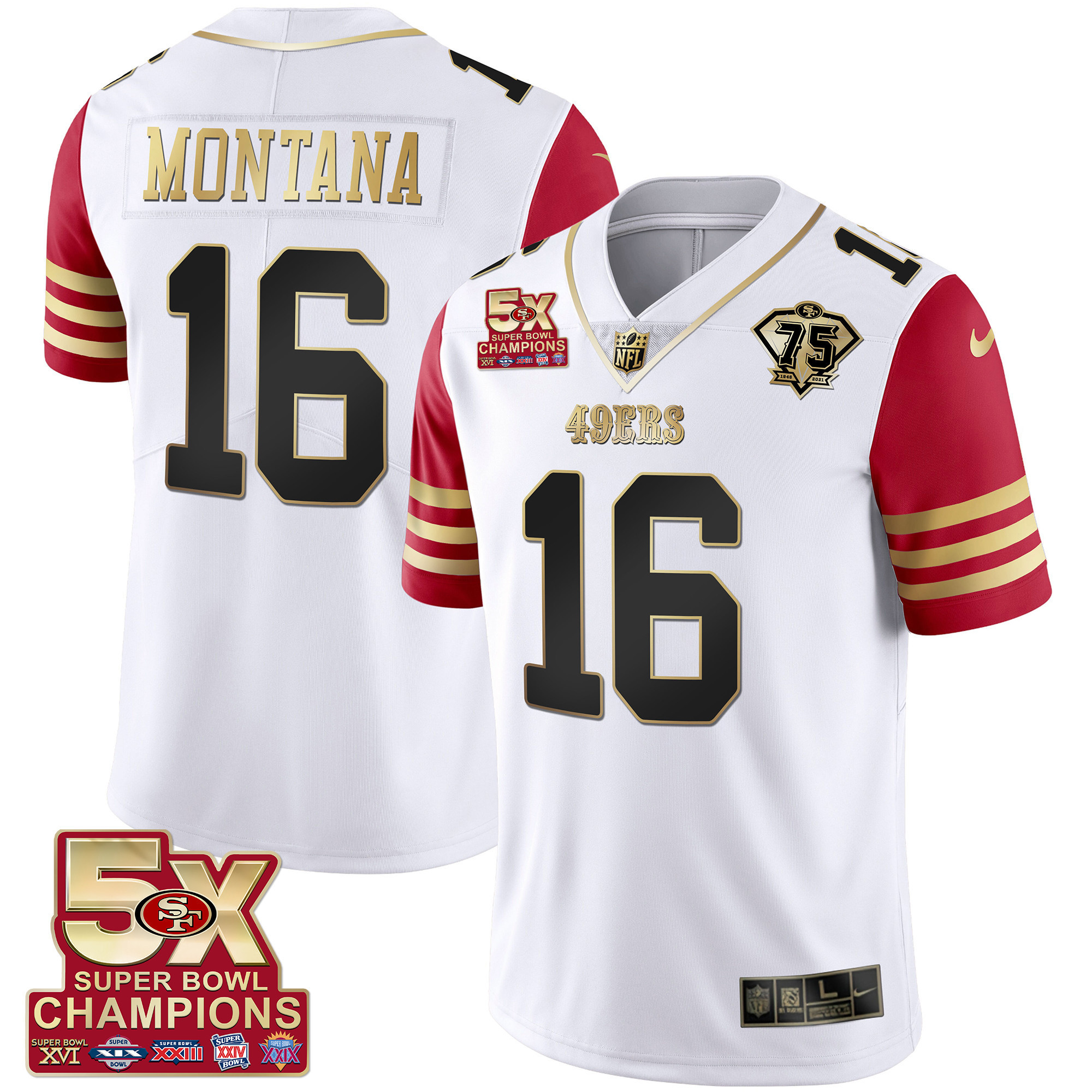 Men’s 49ers 5x Super Bowl Patch Black Red Vapor Jersey – Stitched