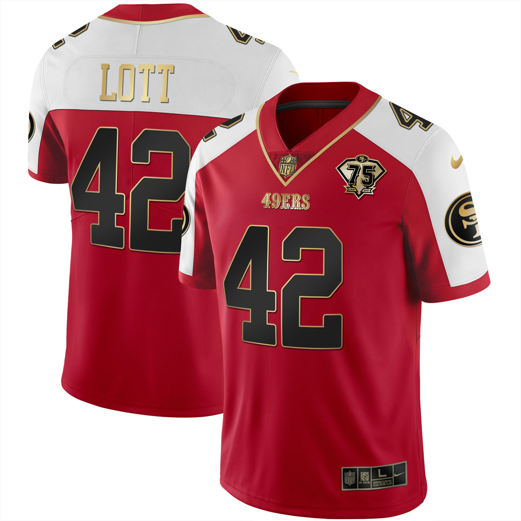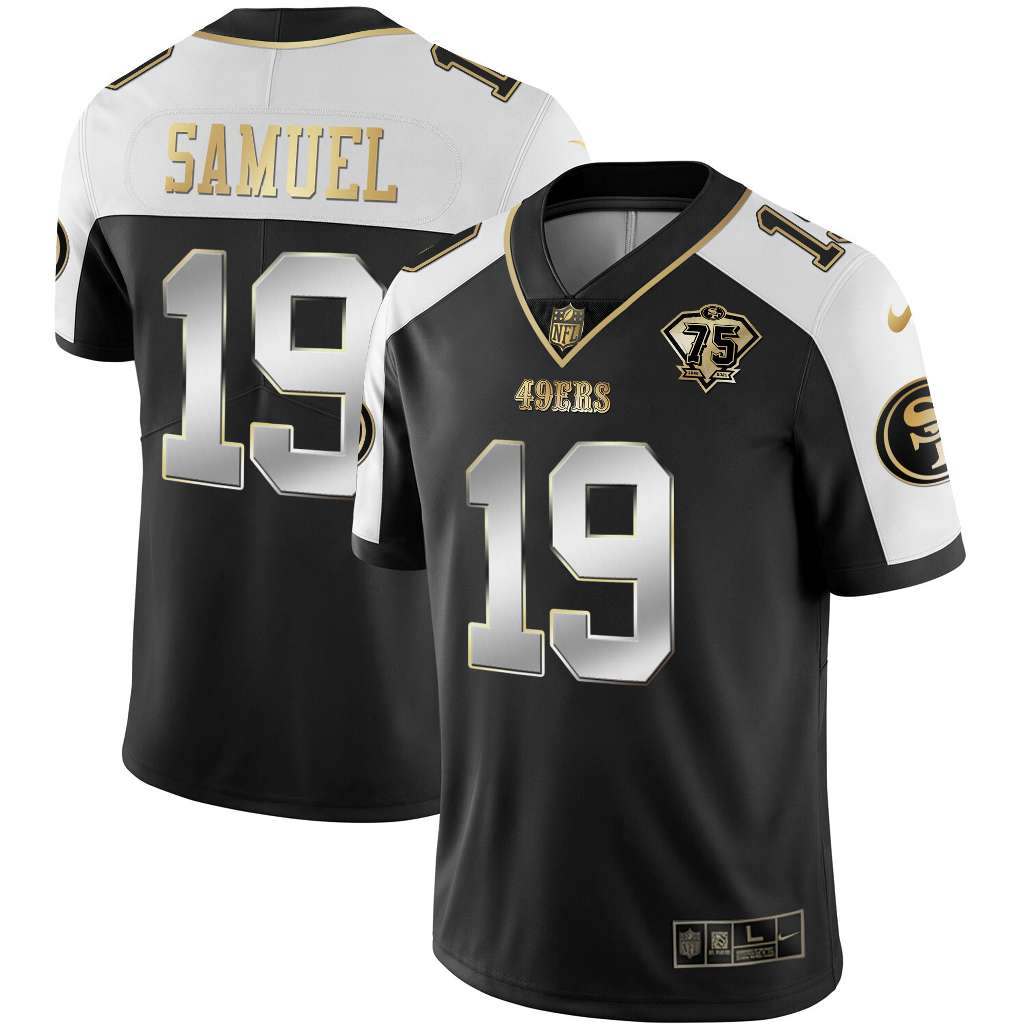 Men’s 49ers 75th Anniversary Patch Alternate Vapor Black Gold & Red Gold Limited – All Stitched