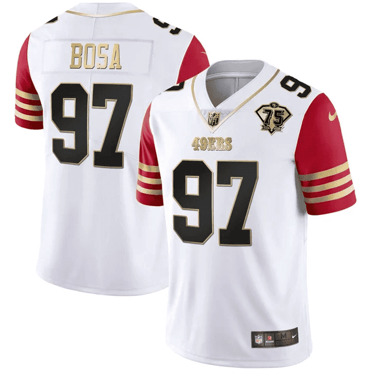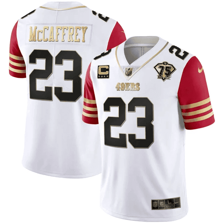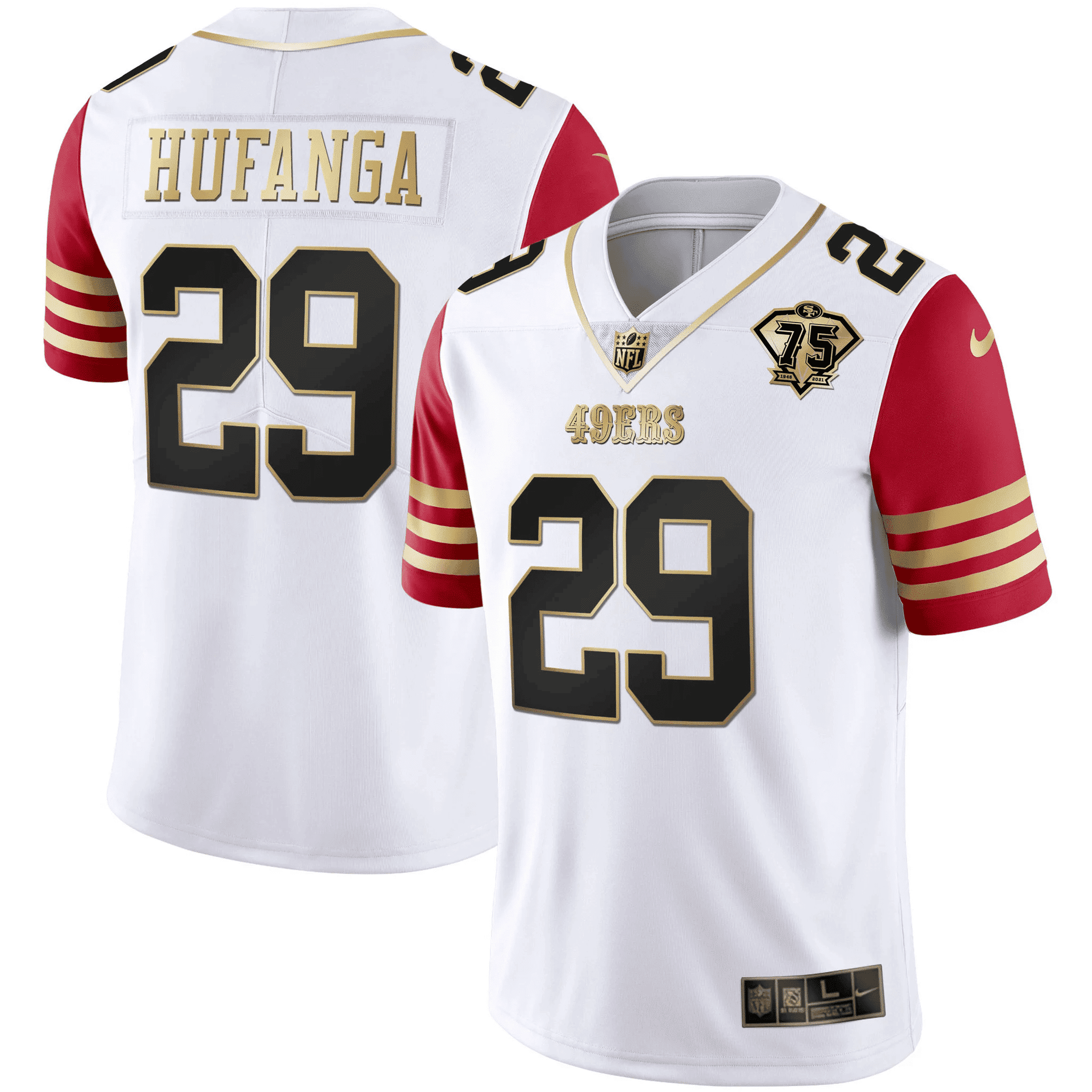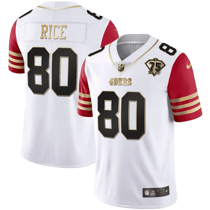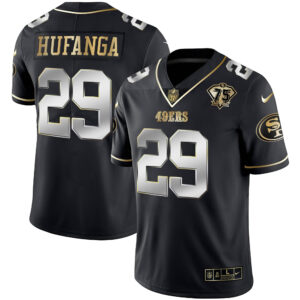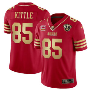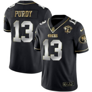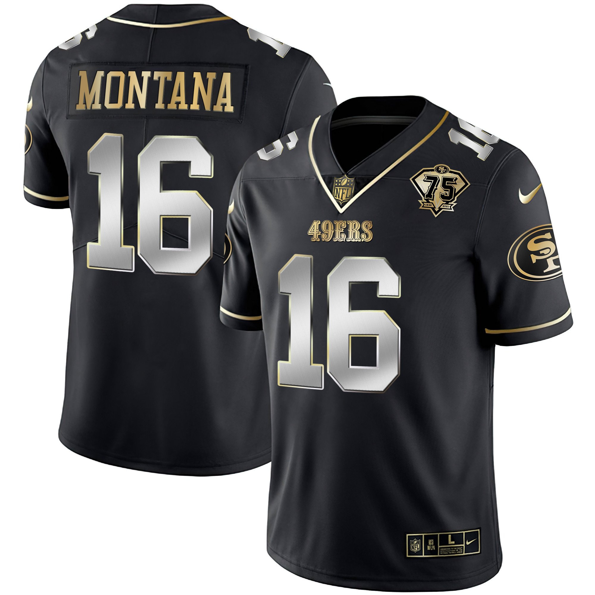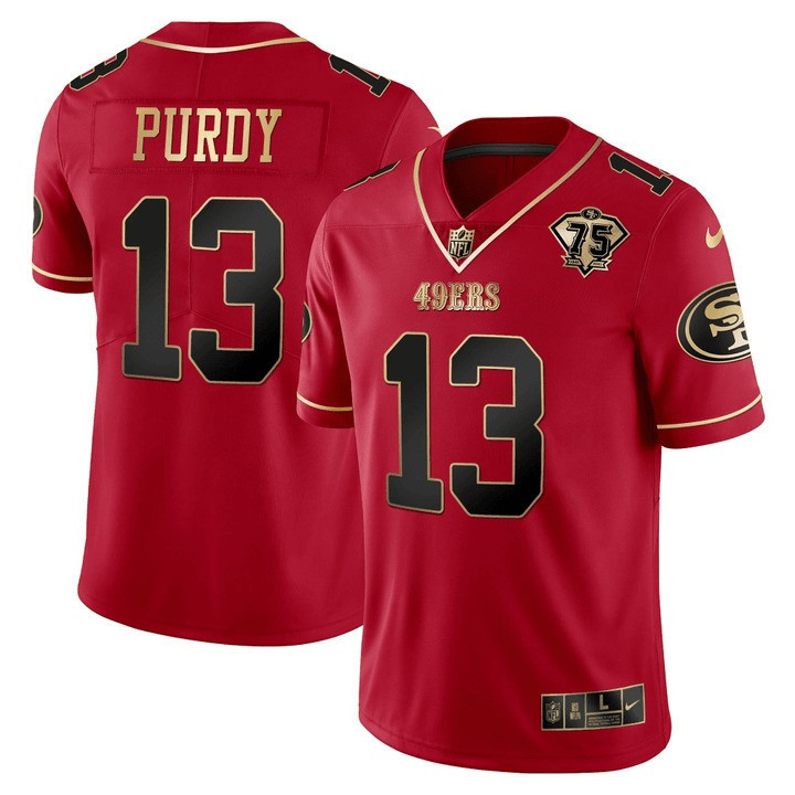 Men’s 49ers 75th Anniversary Patch Vapor Black Red Gold Limited Edition – All Stitched