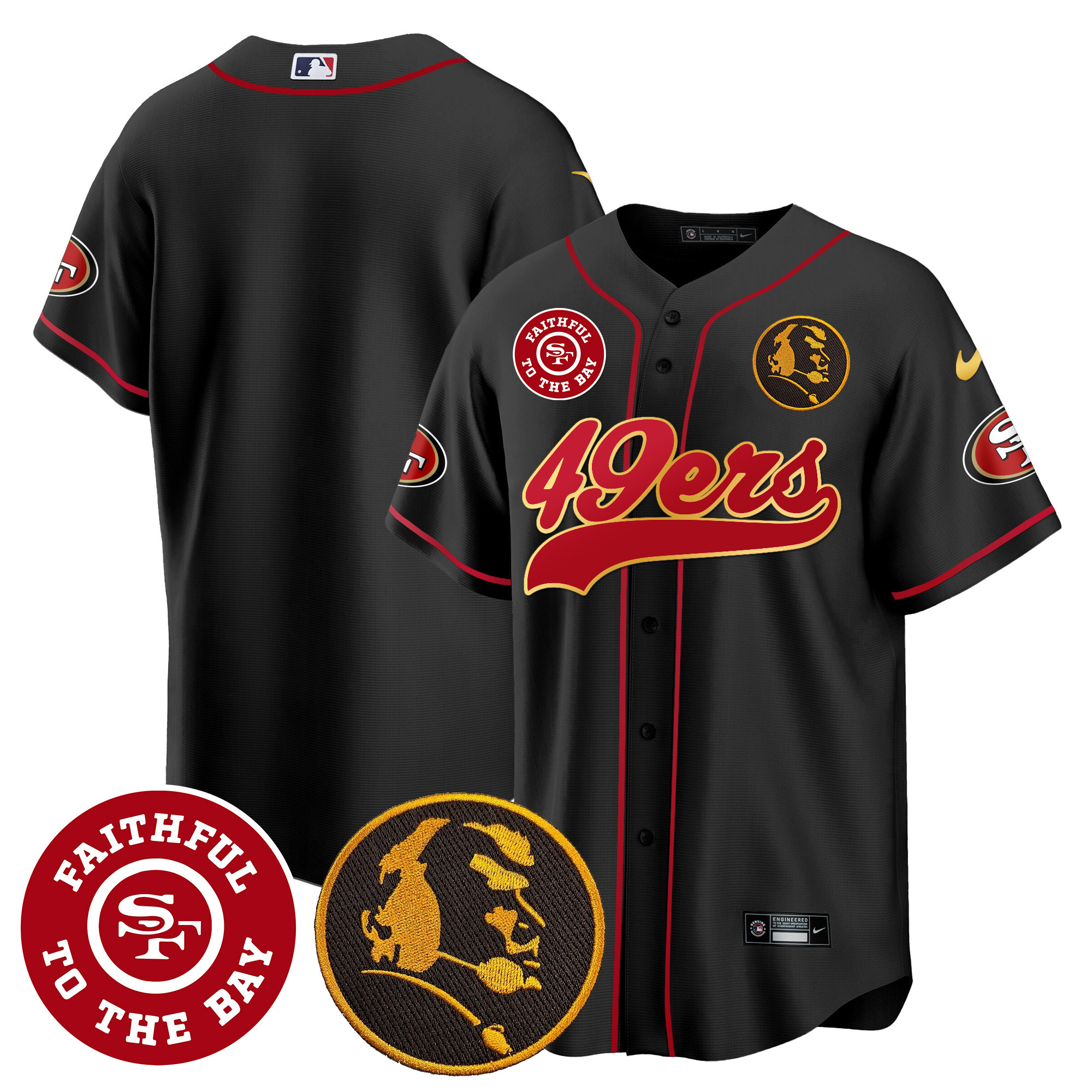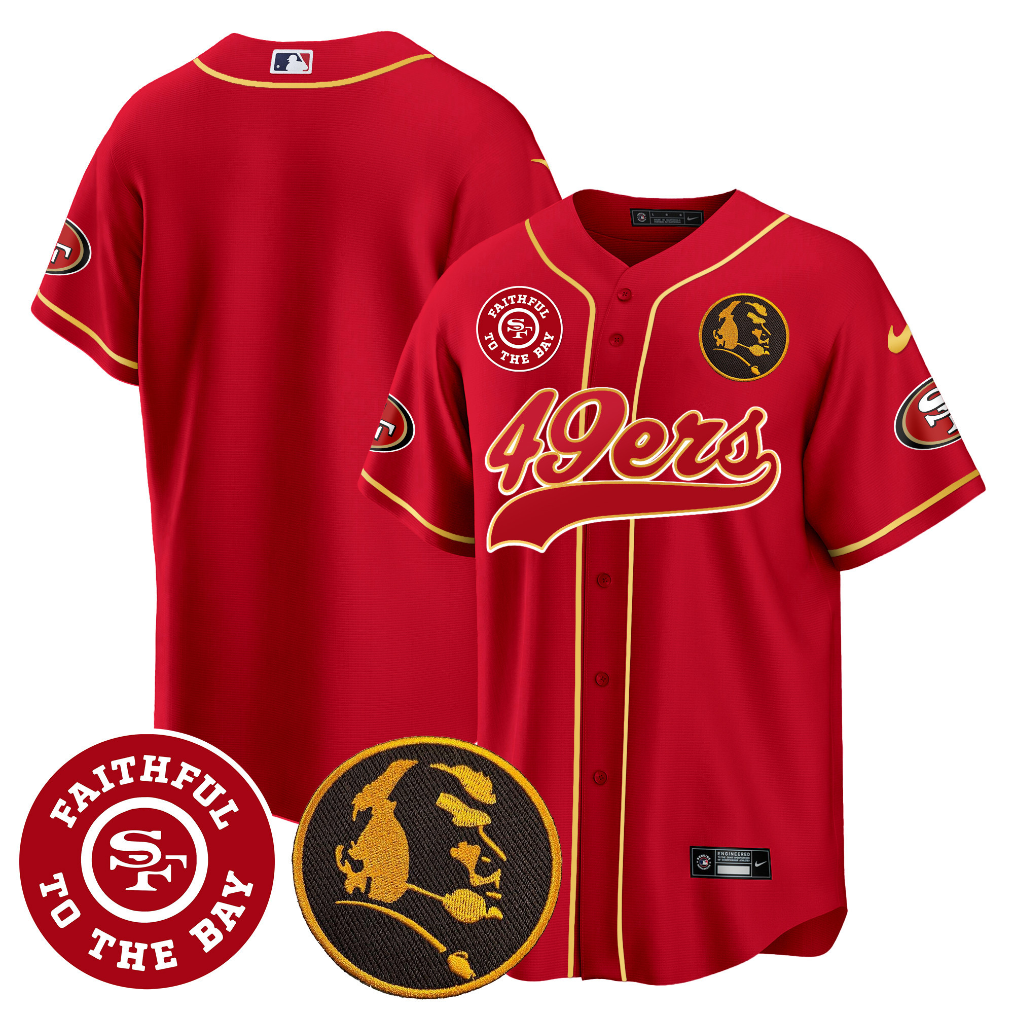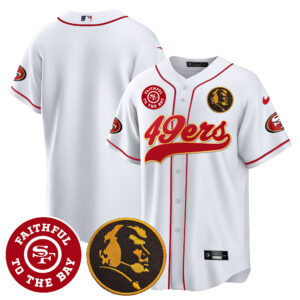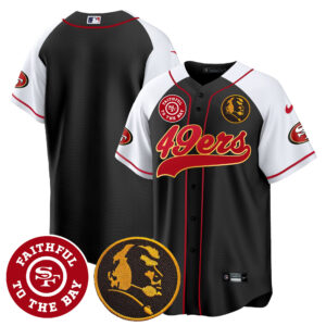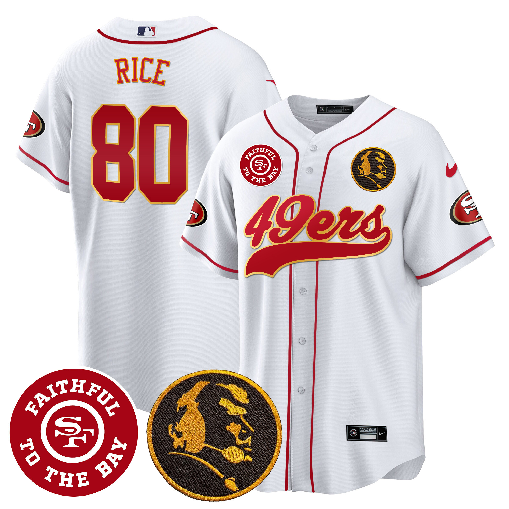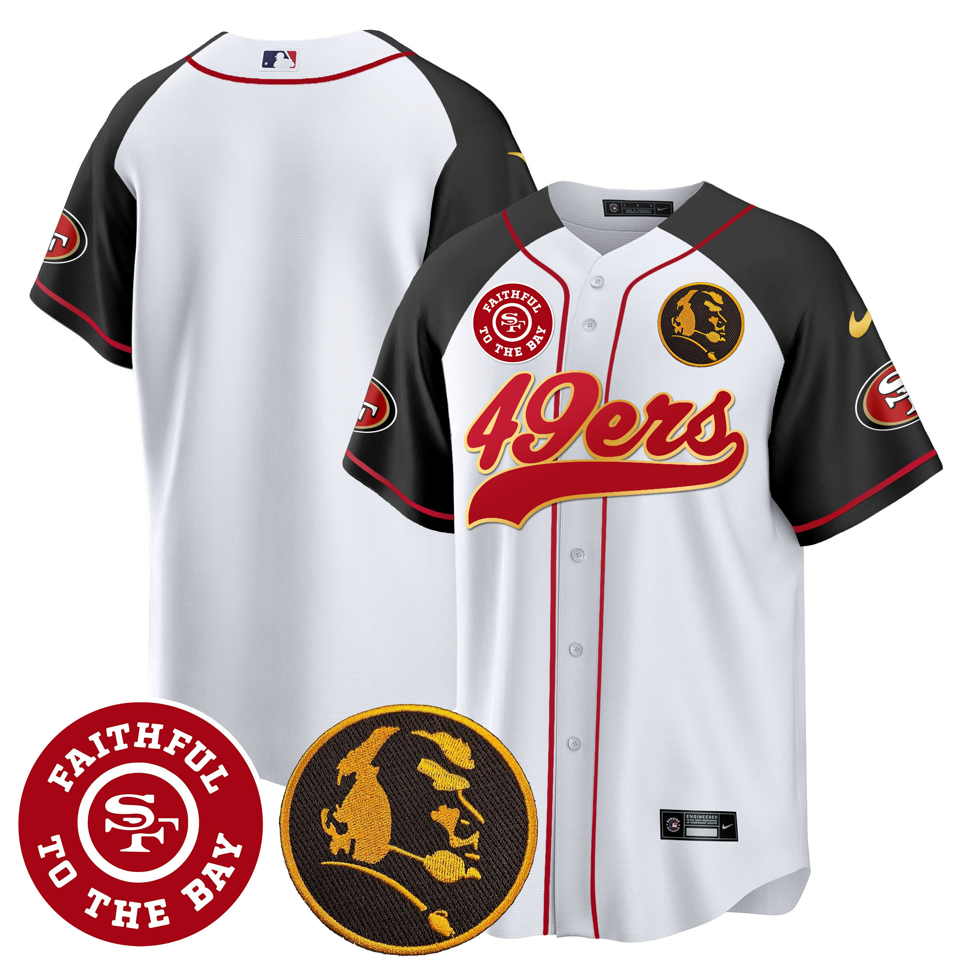 Men’s 49ers Faithful & John Madden Patch Baseball Gold Trim Jersey – All Stitched
