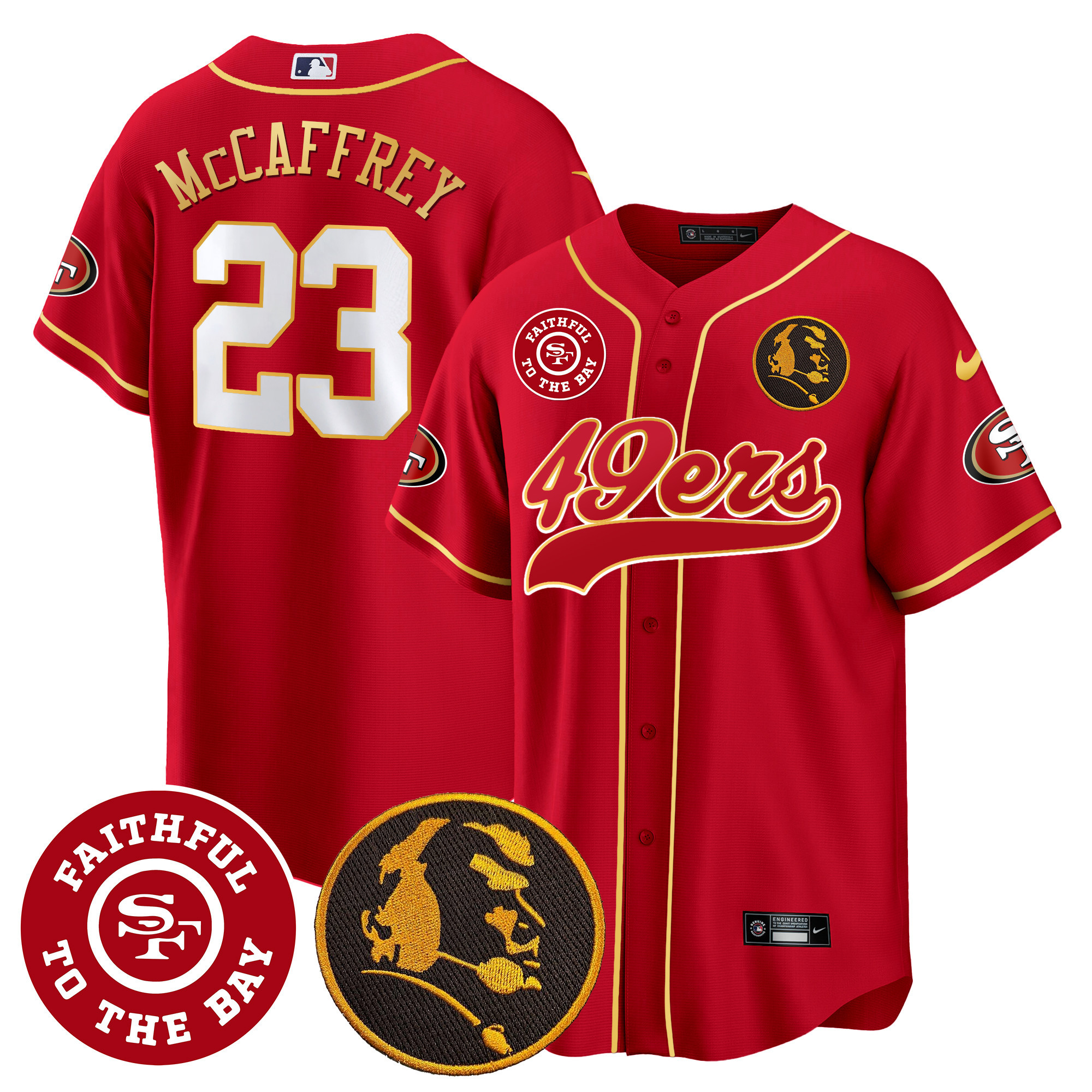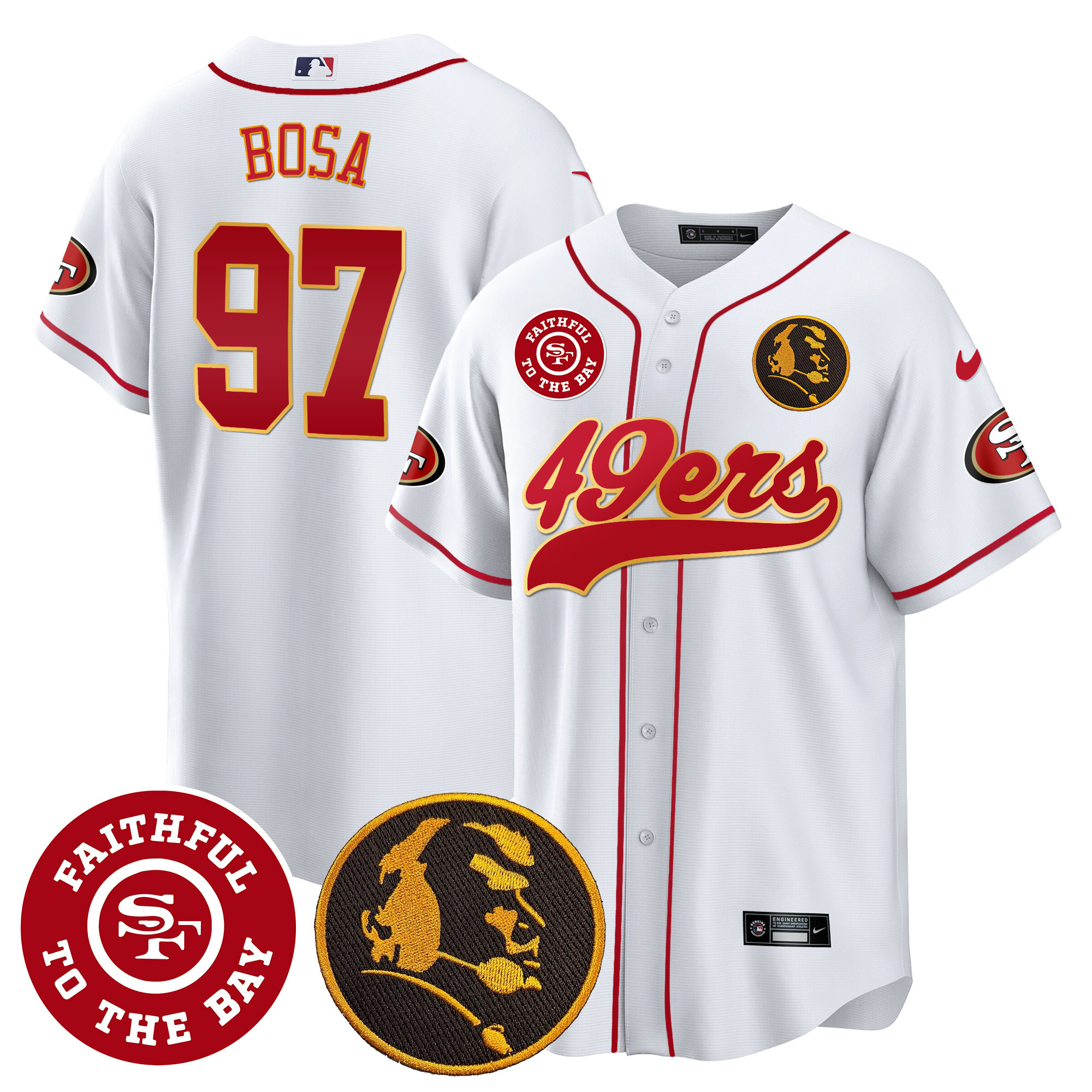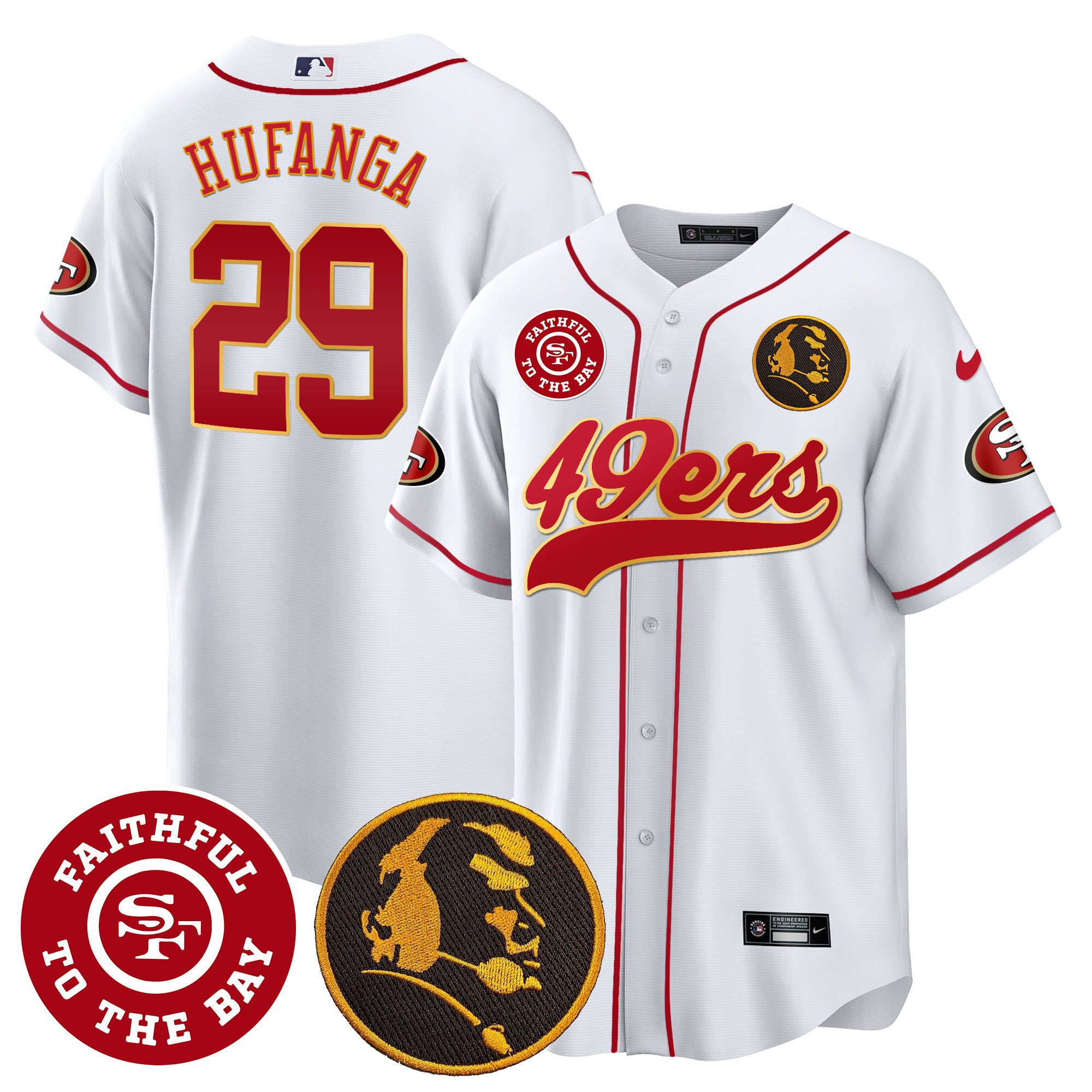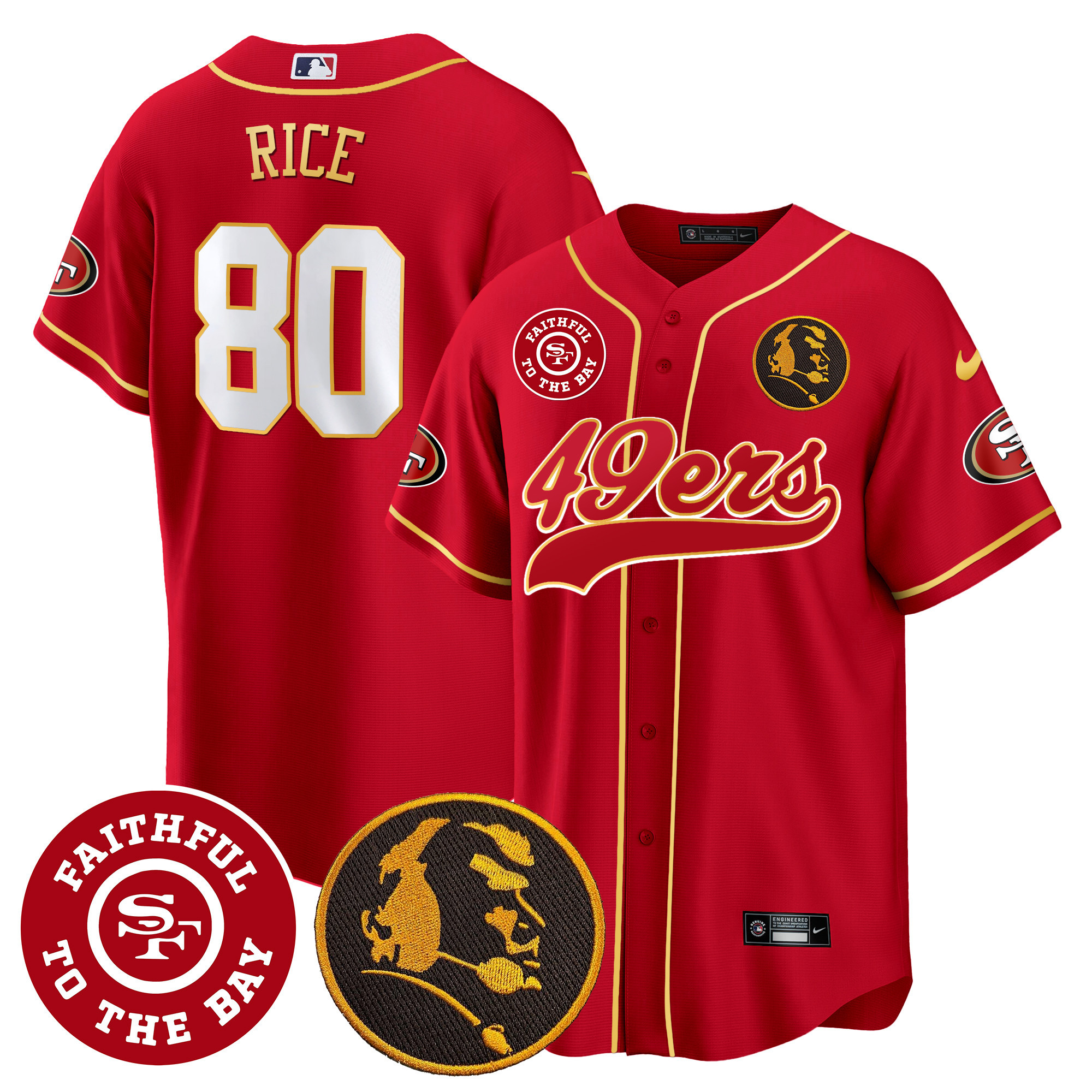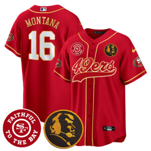 Men’s 49ers Faithful & John Madden Patch Baseball Gold Trim Jersey – All Stitched