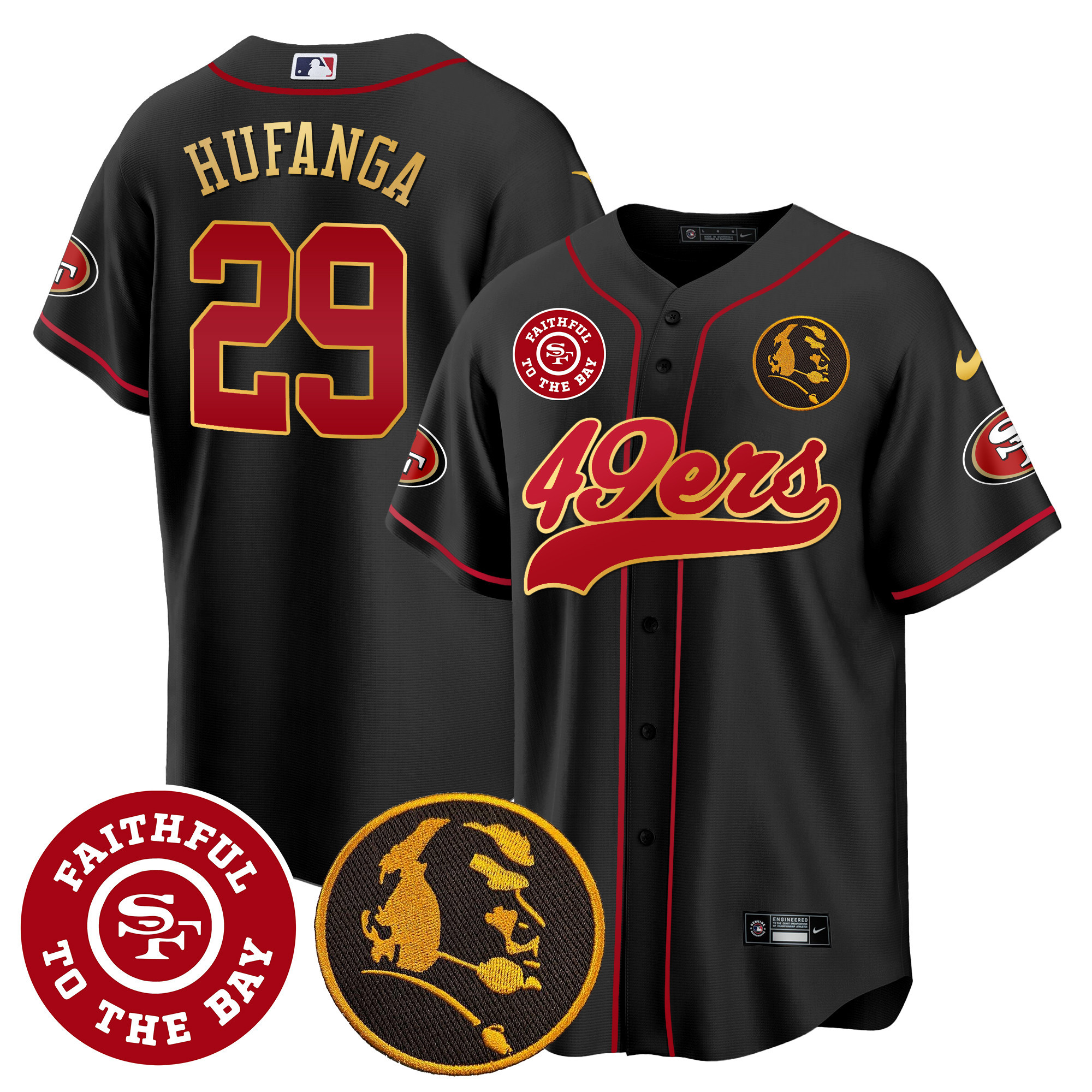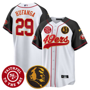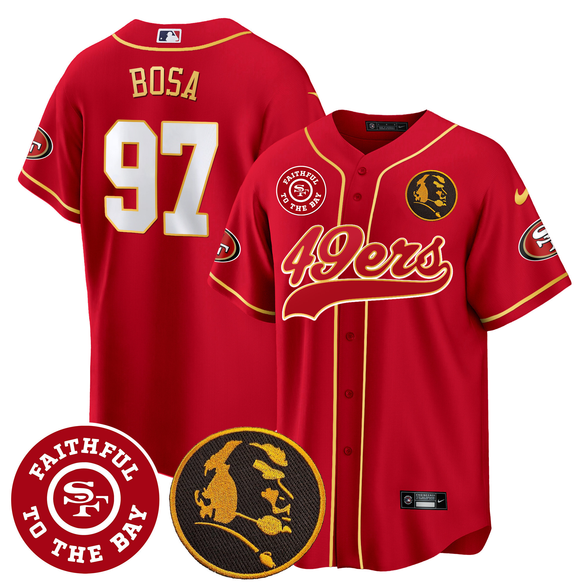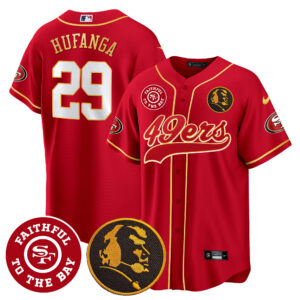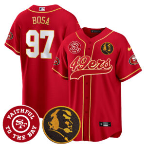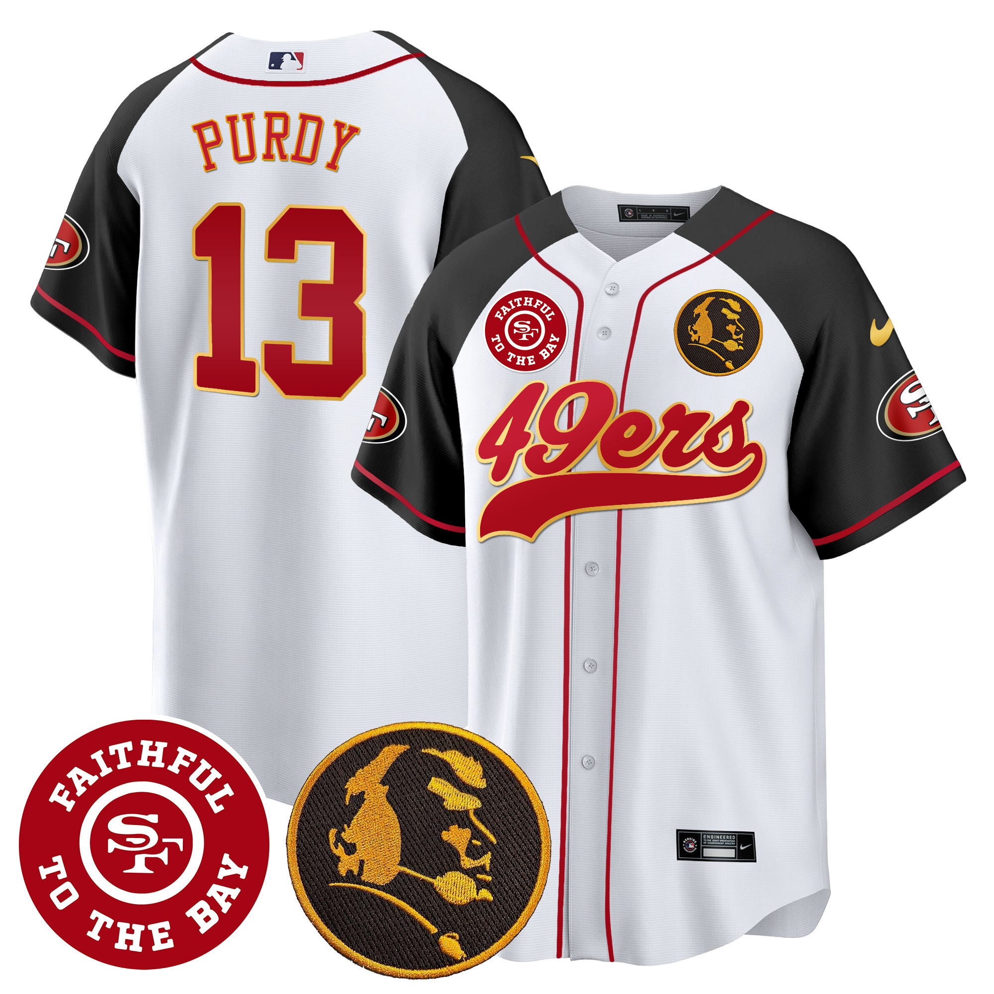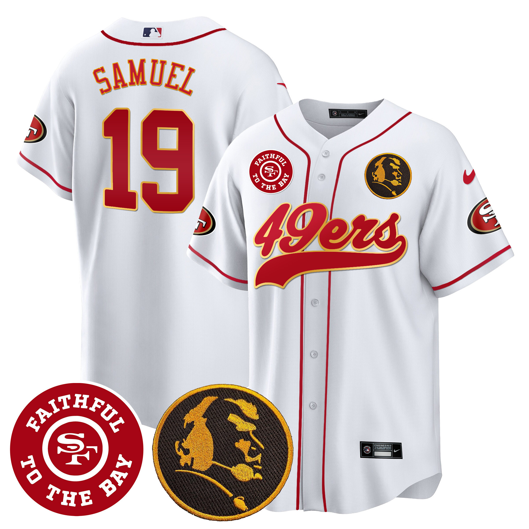 Men’s 49ers Faithful & John Madden Patch Baseball Gold Trim Jersey – All Stitched
