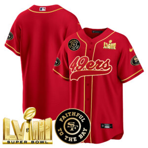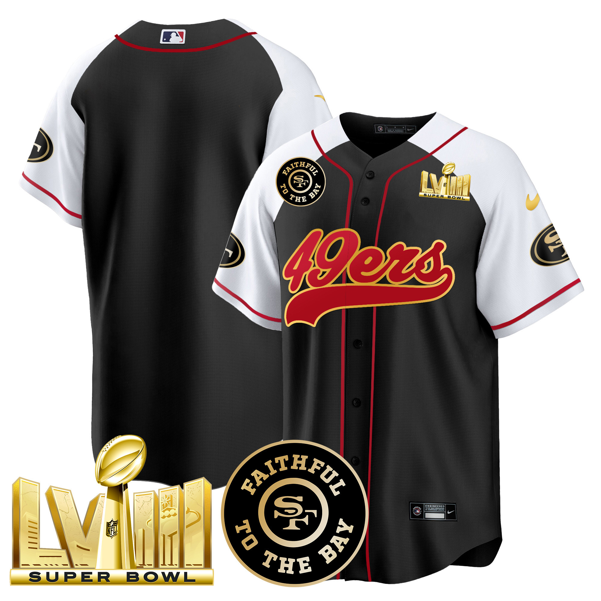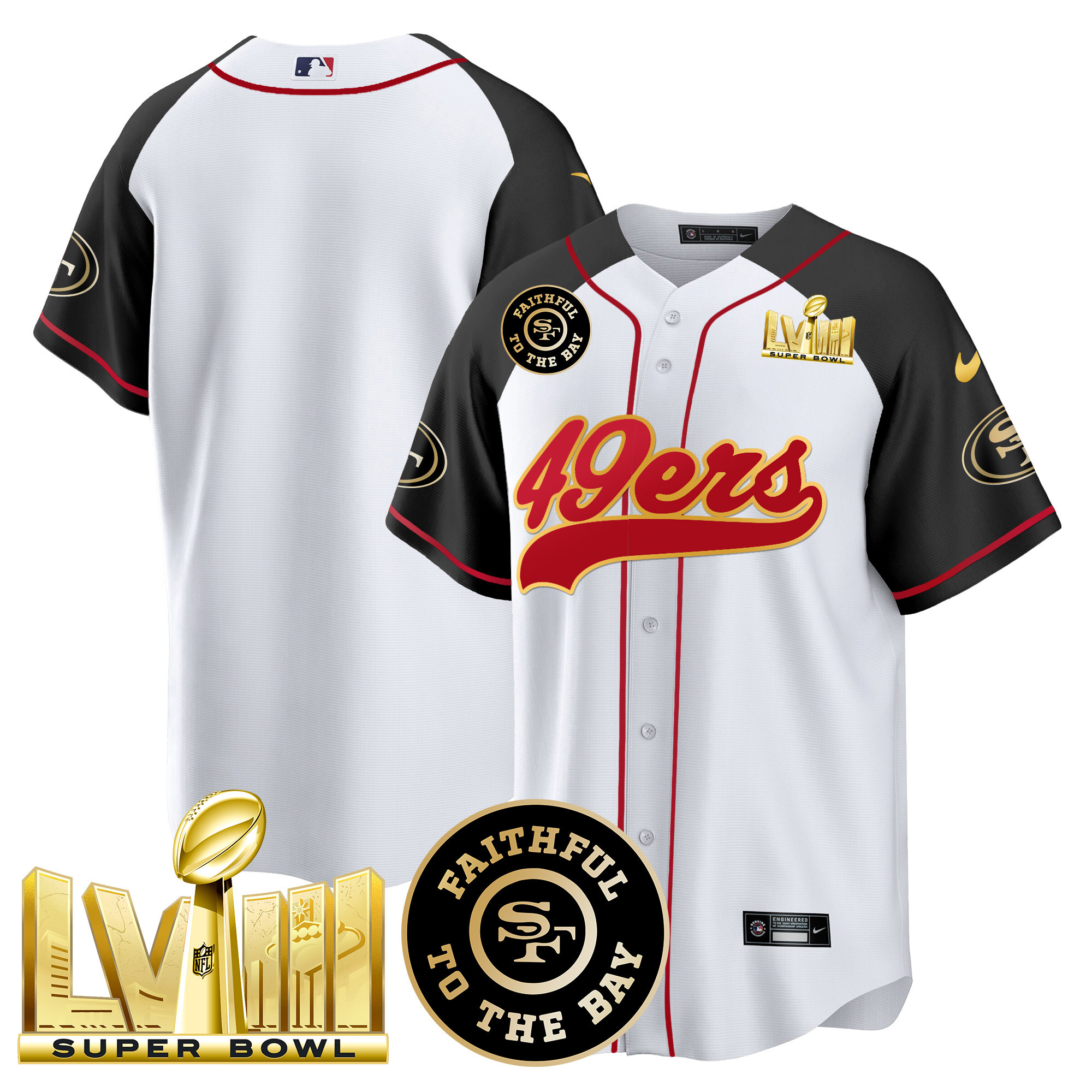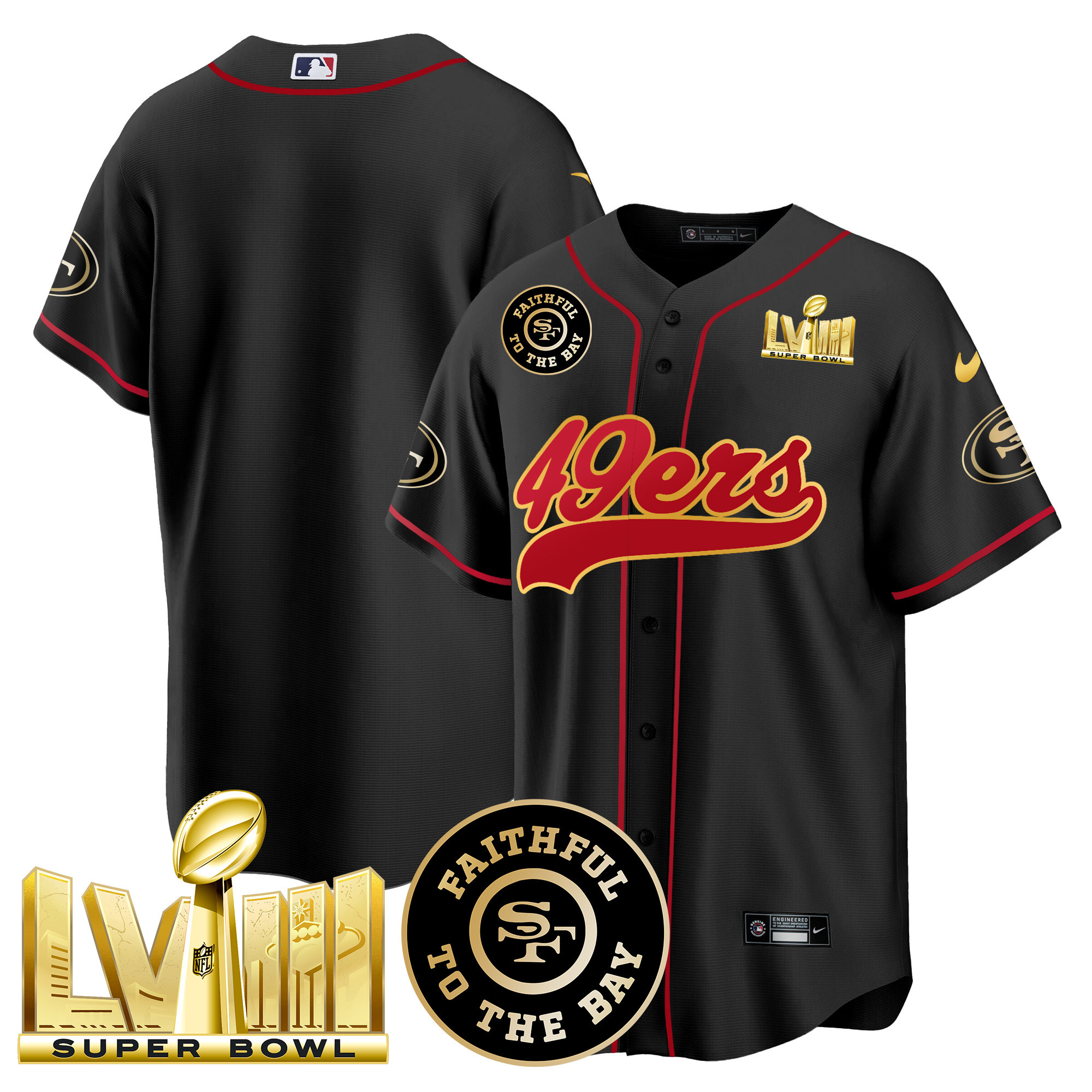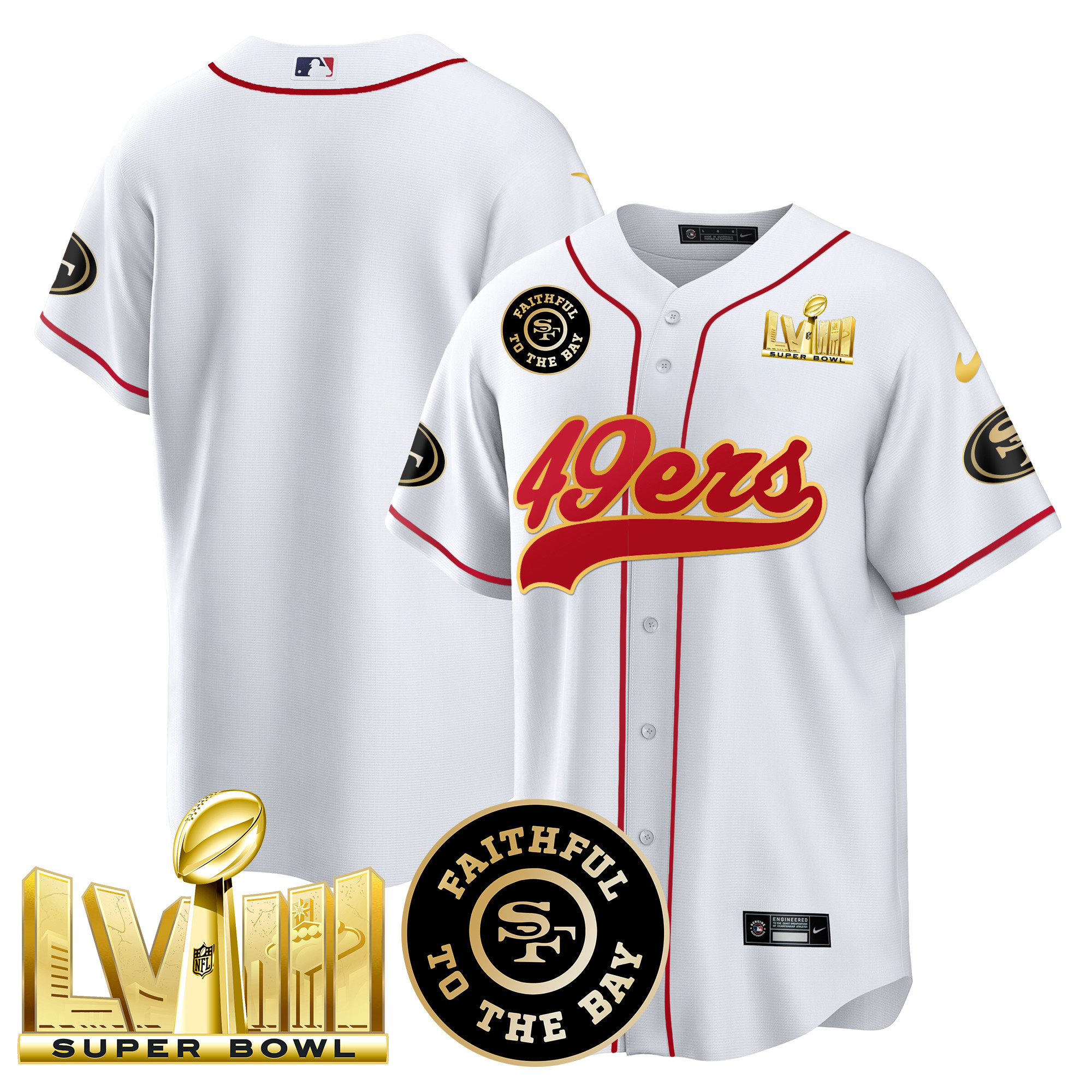 Men’s 49ers Faithful & Super Bowl LVIII Gold Patch Baseball Jersey – All Stitched