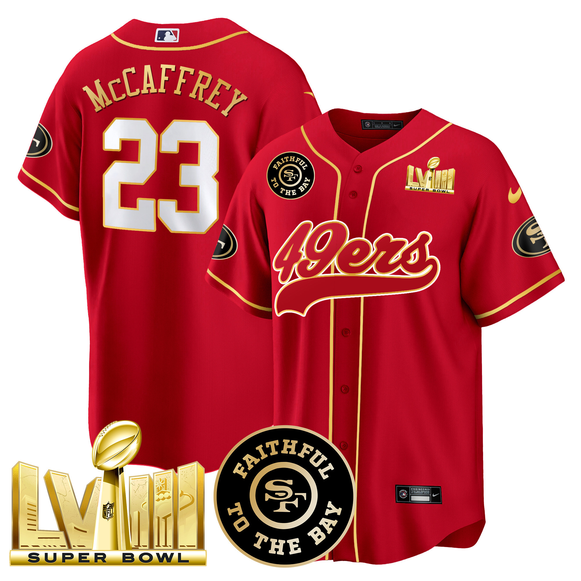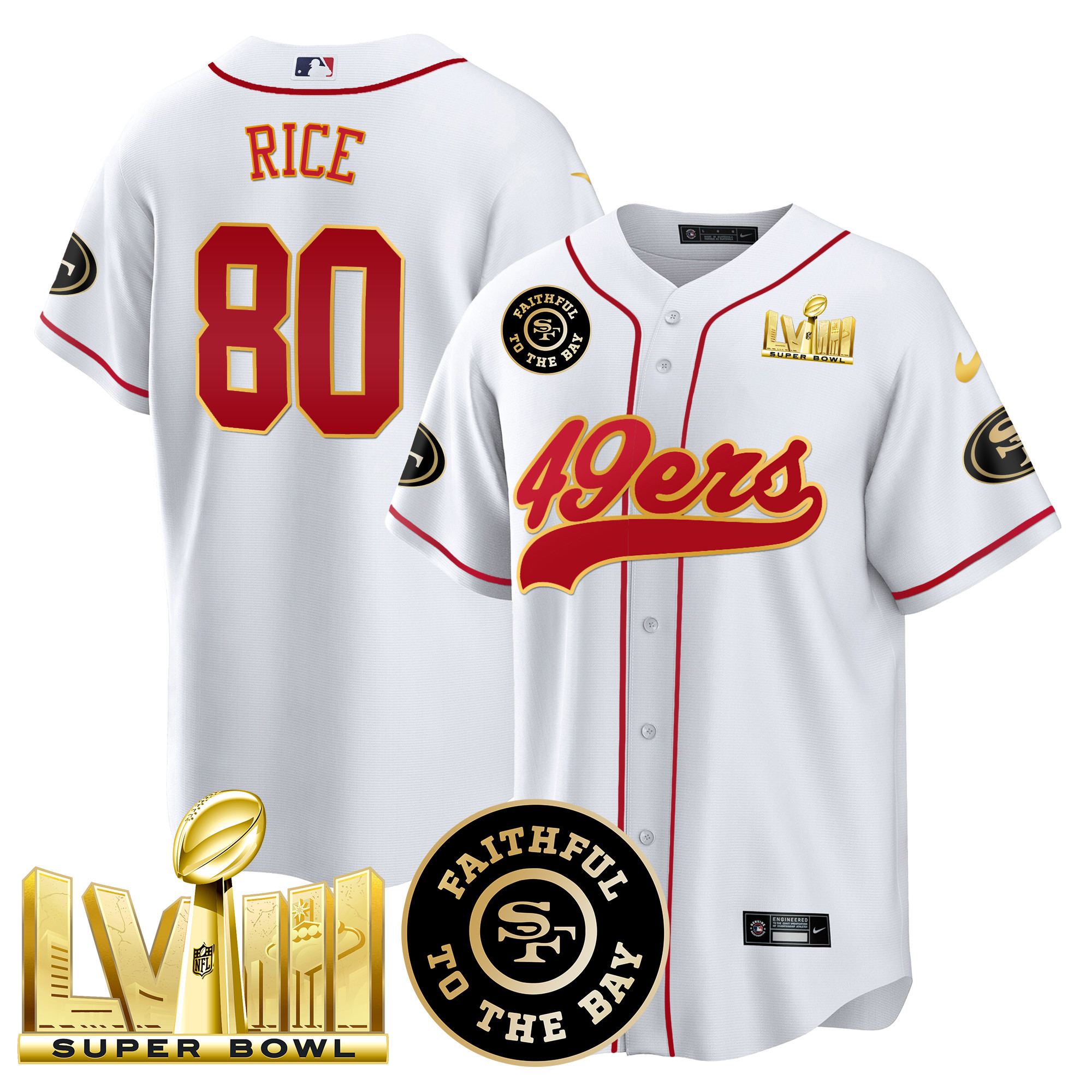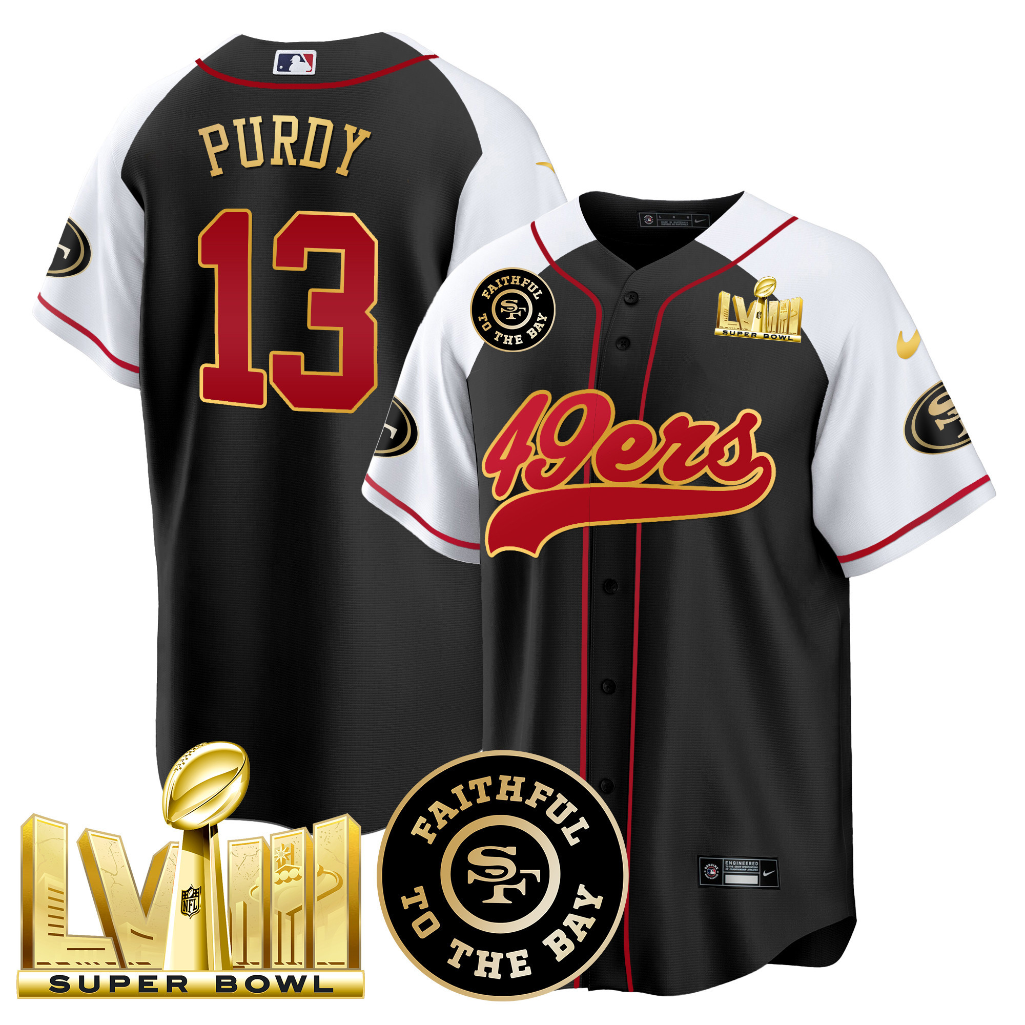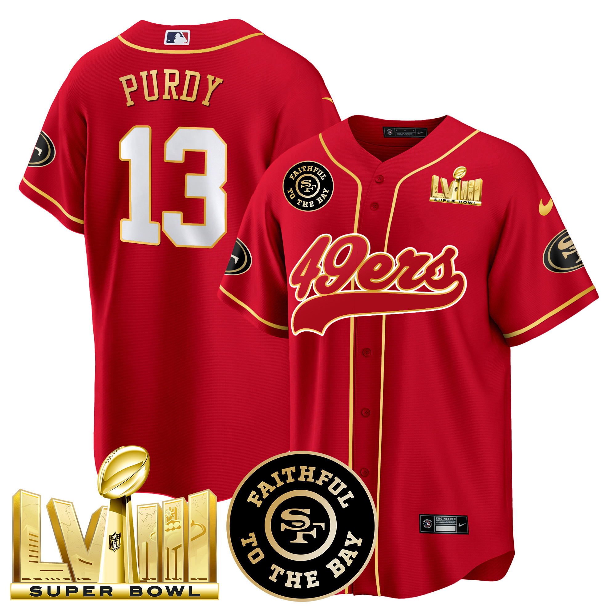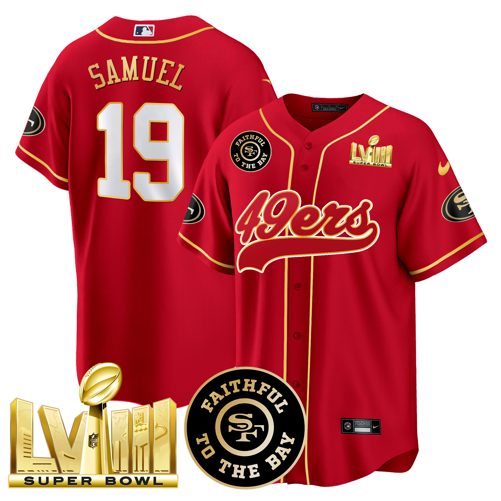 Men’s 49ers Faithful & Super Bowl LVIII Gold Patch Baseball Jersey – All Stitched