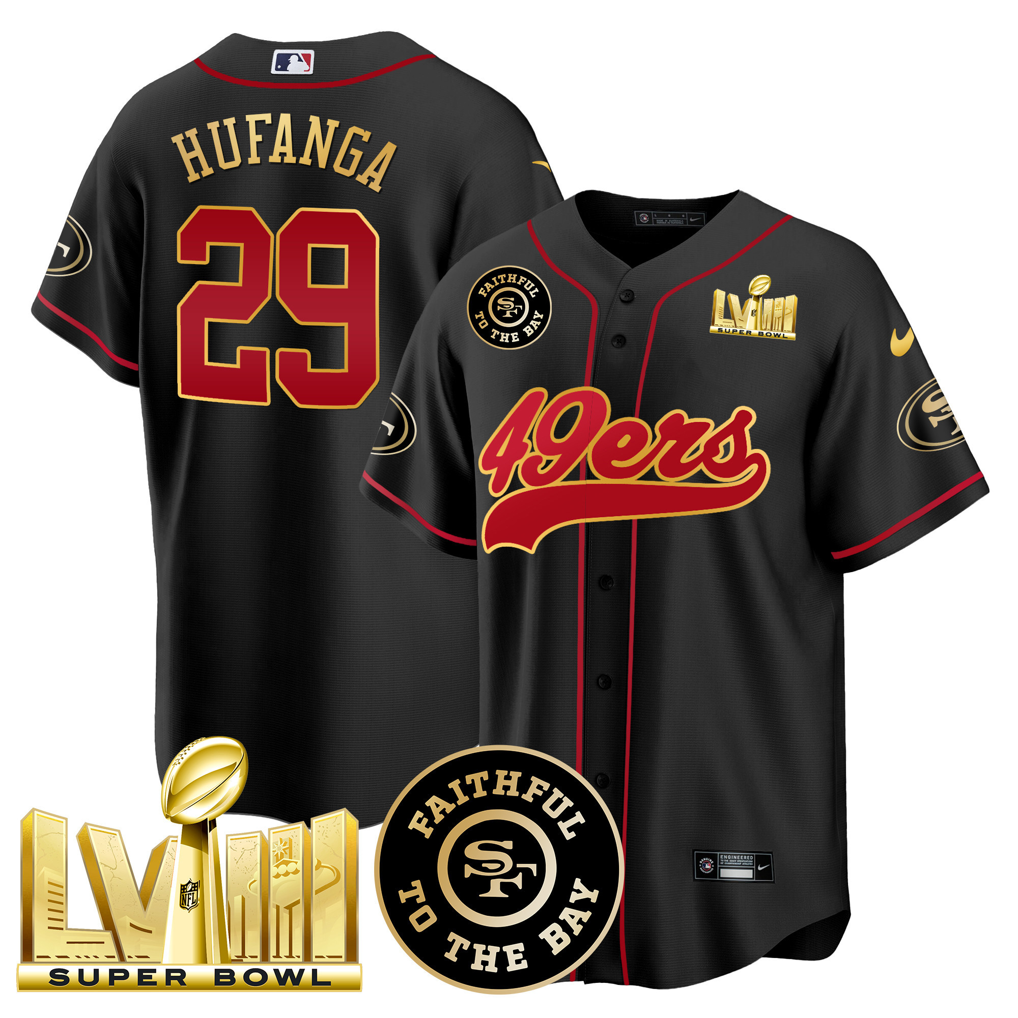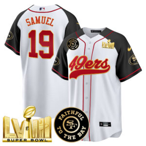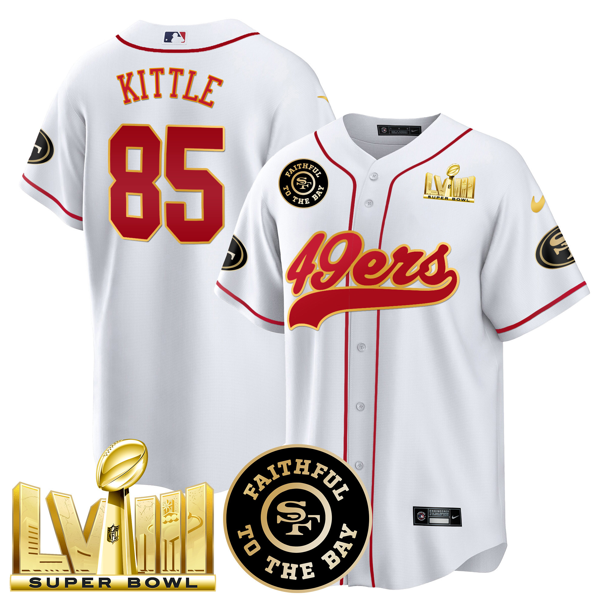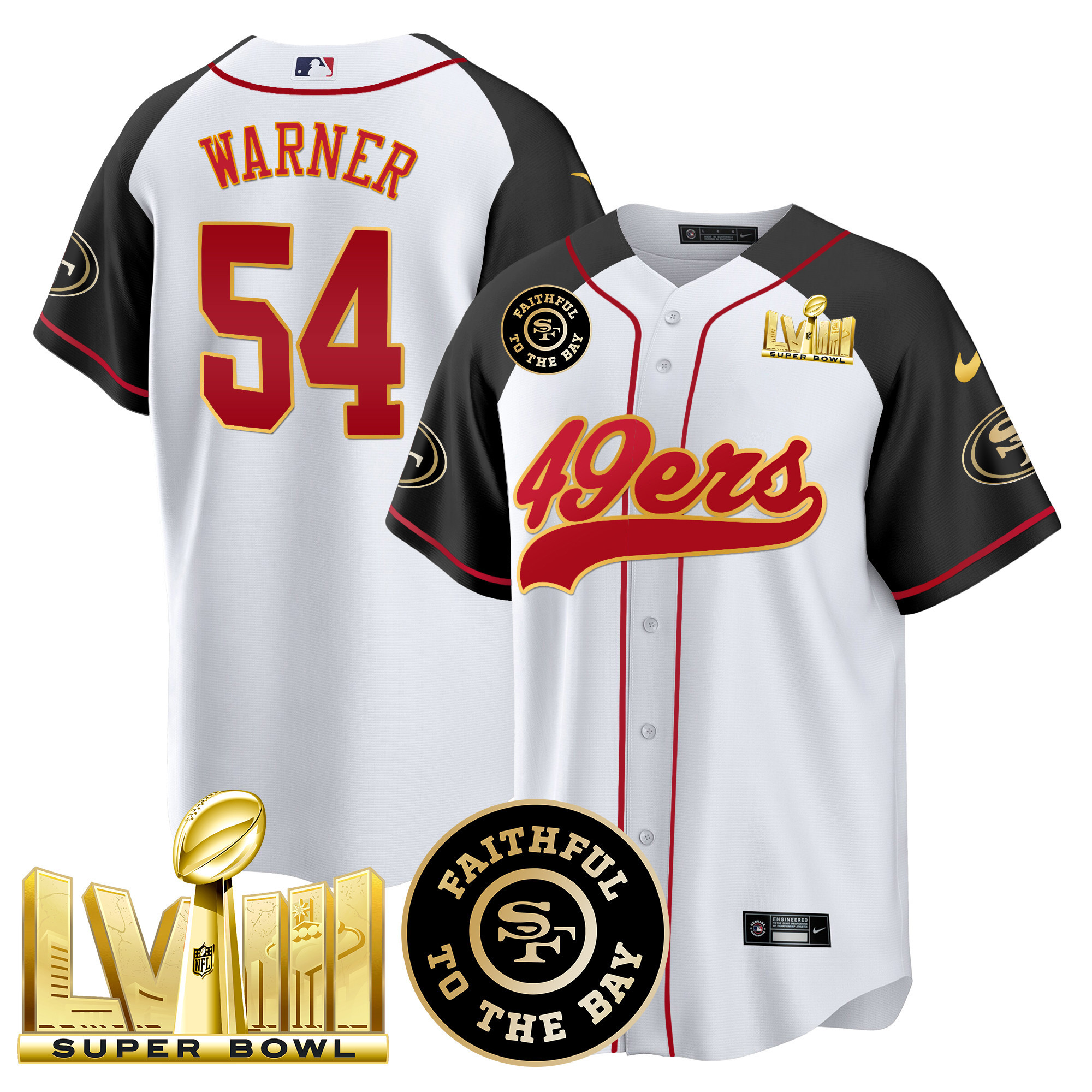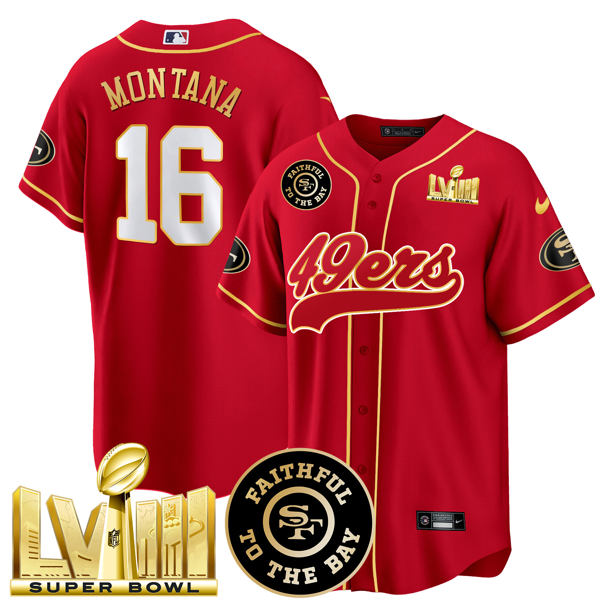 Men’s 49ers Faithful & Super Bowl LVIII Gold Patch Baseball Jersey – All Stitched