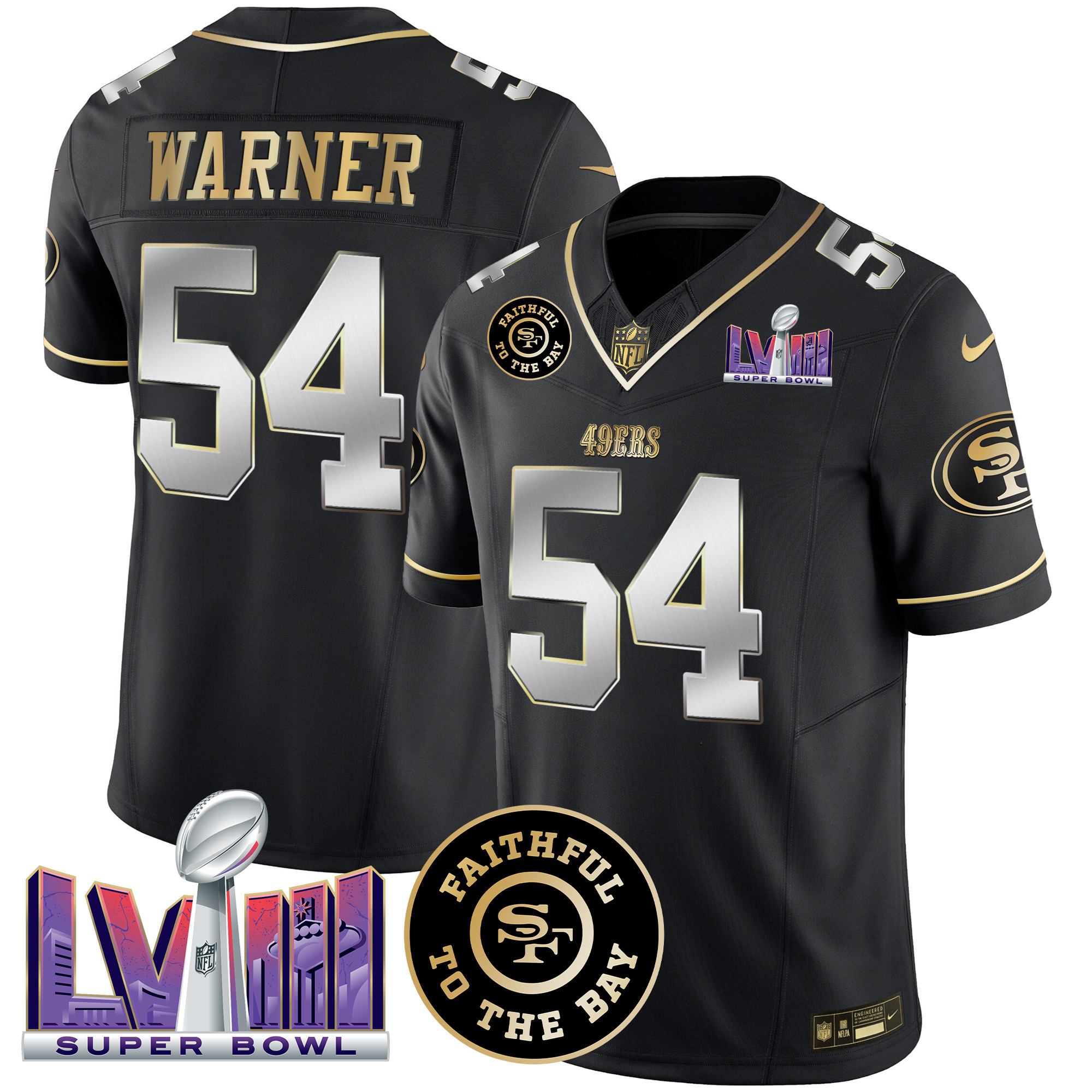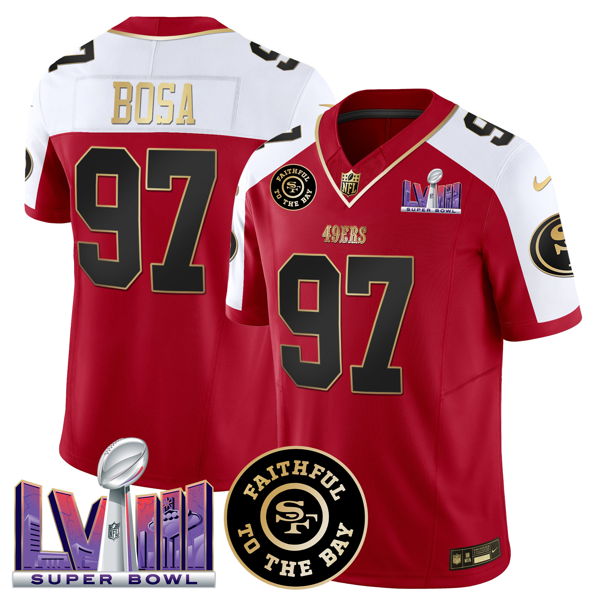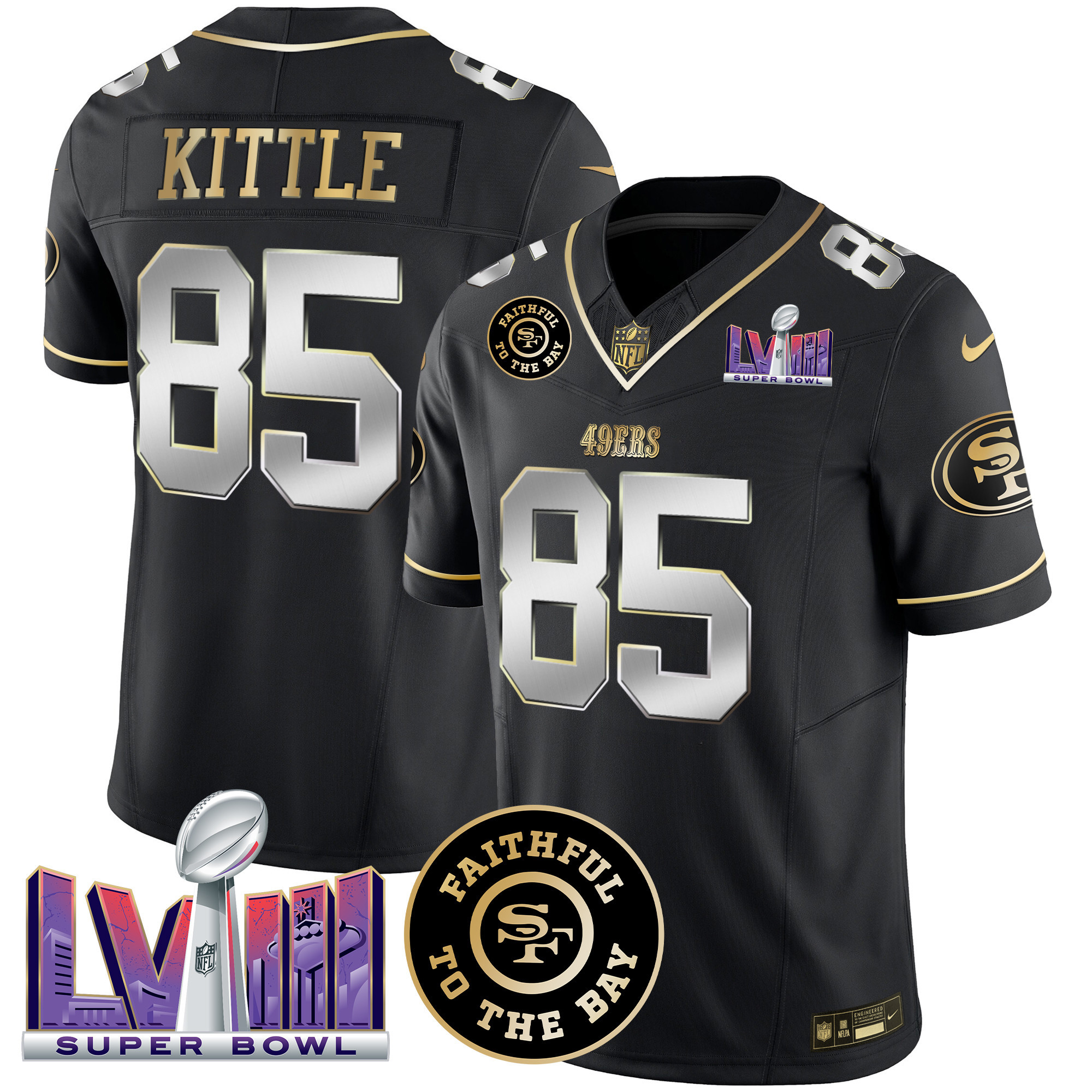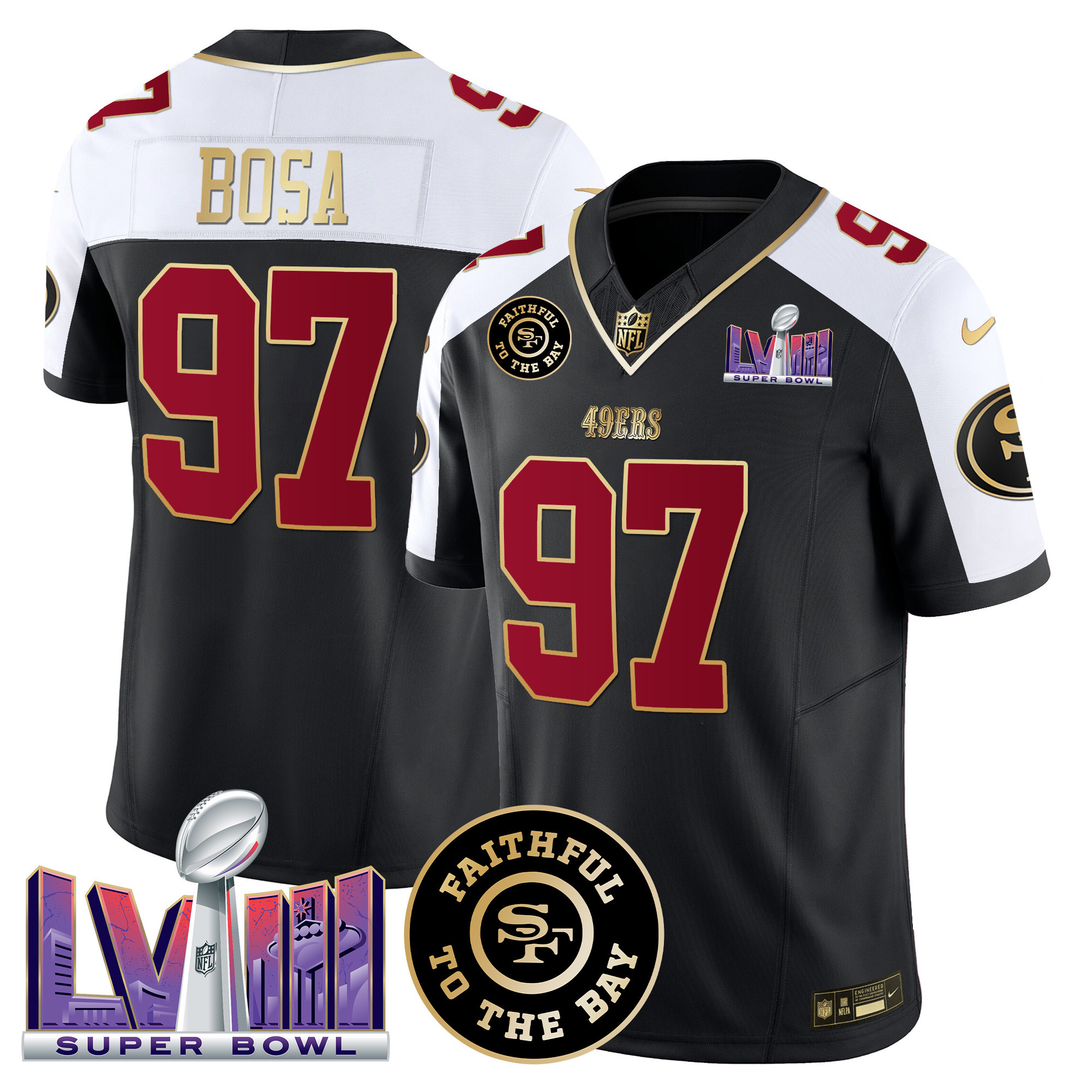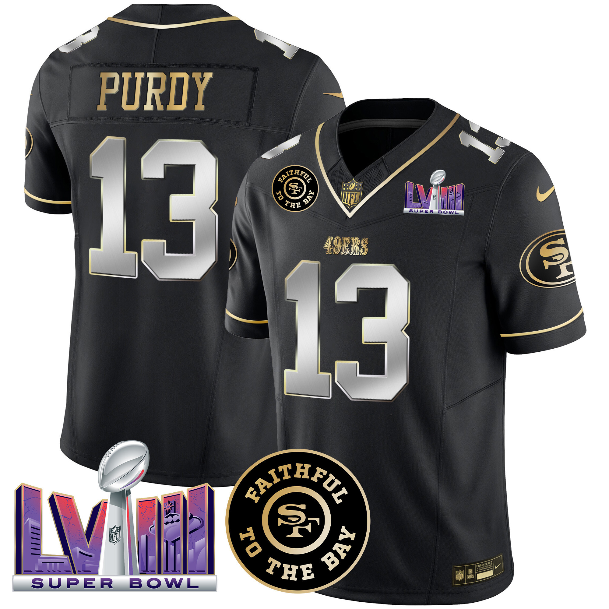 Men’s 49ers Faithful & Super Bowl LVIII Patch Vapor Jersey – All Stitched