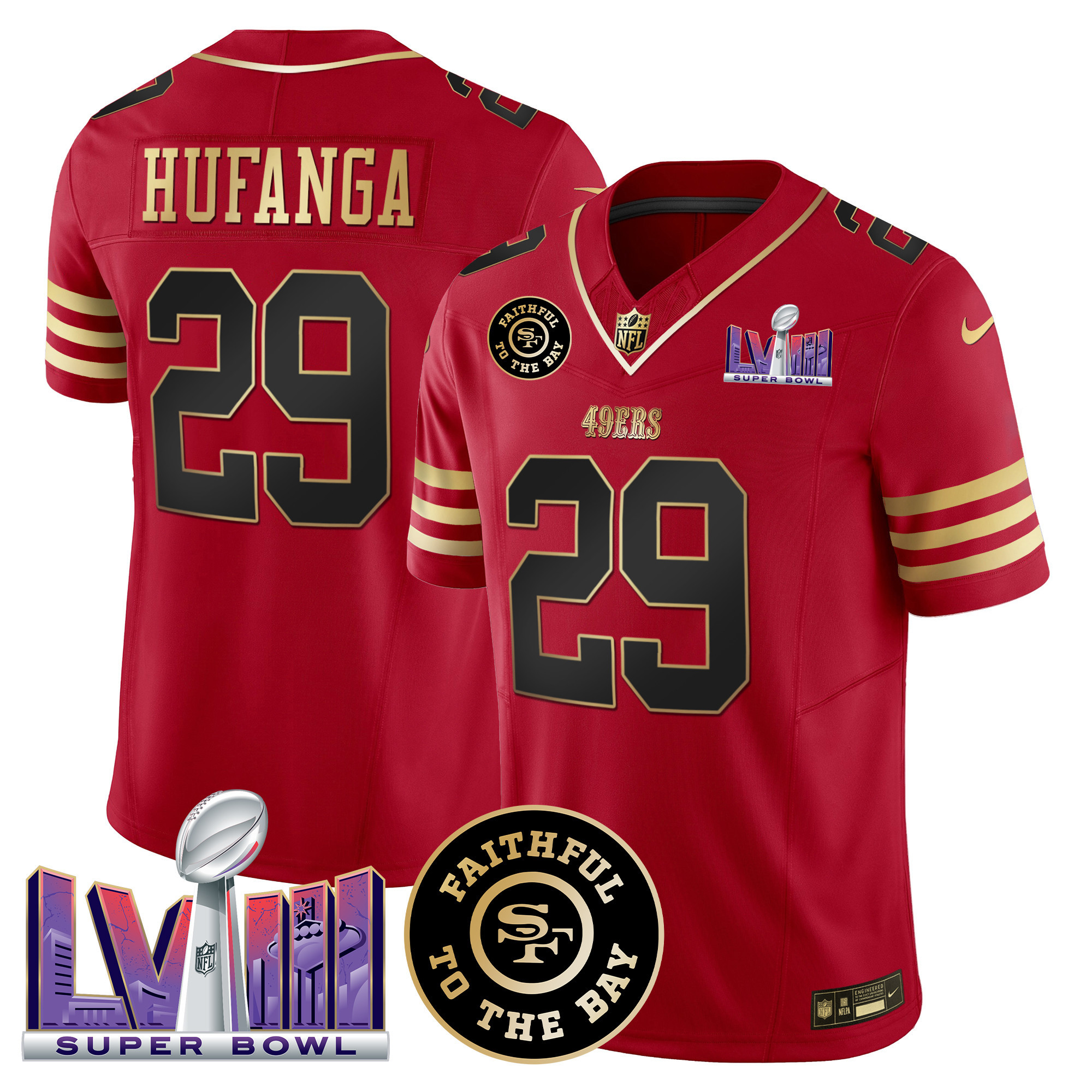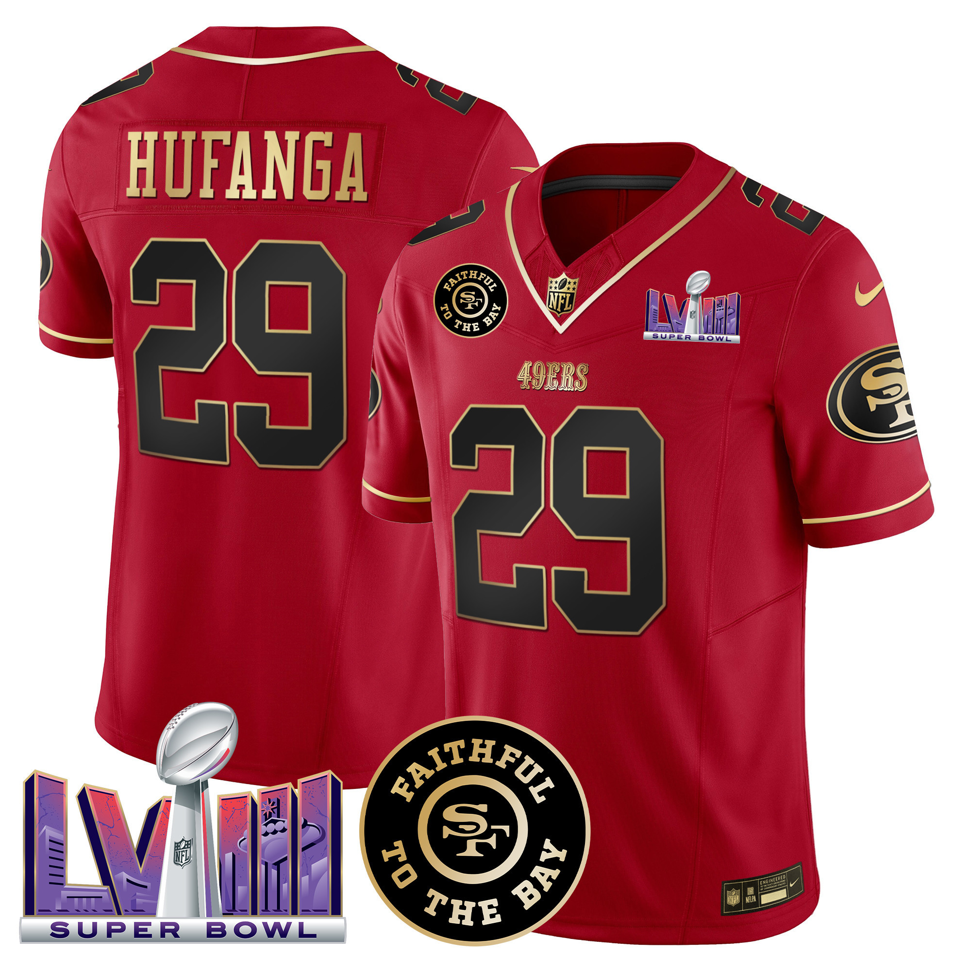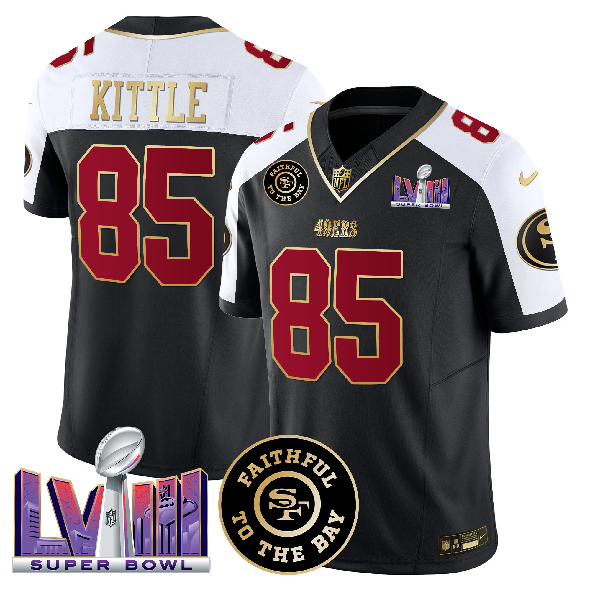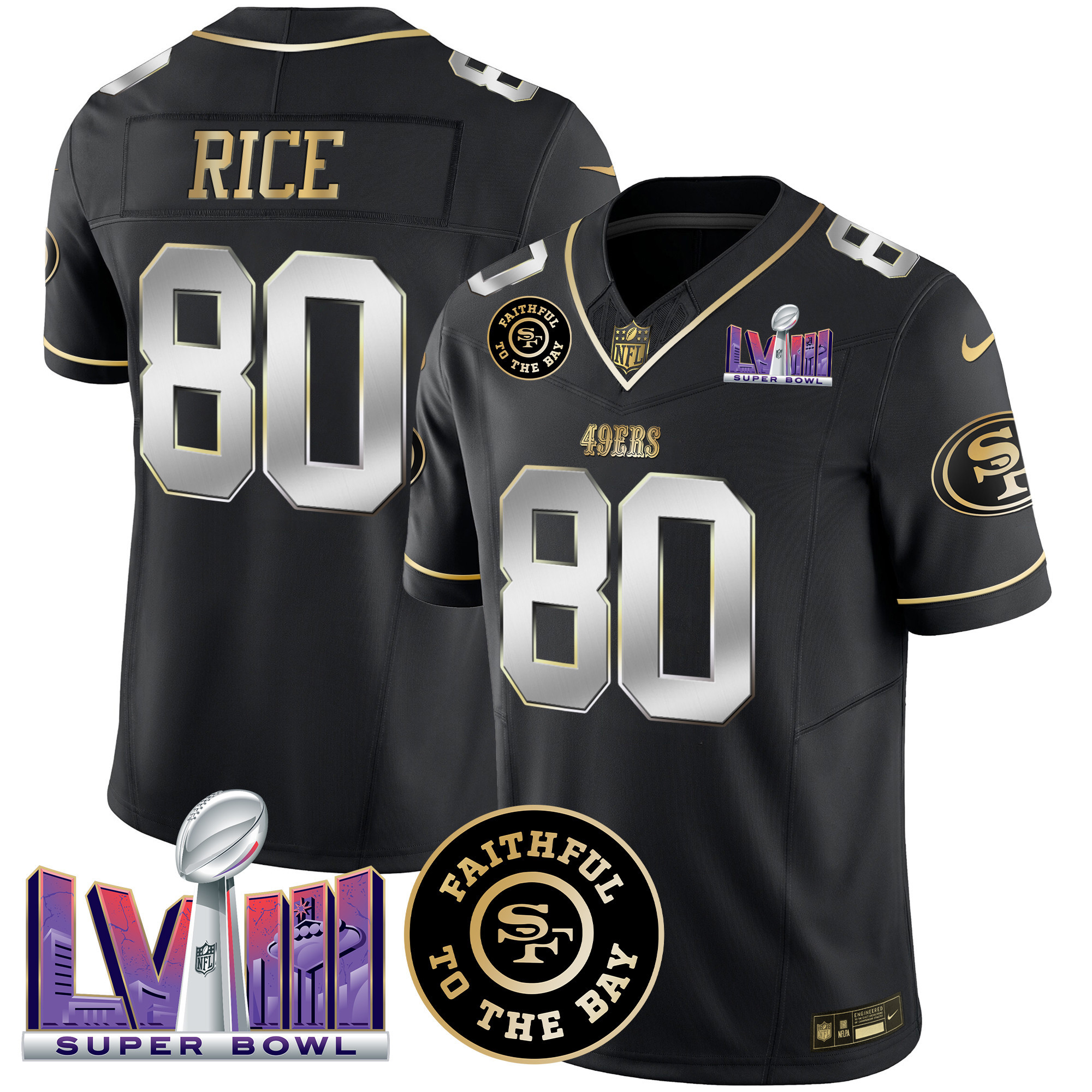 Men’s 49ers Faithful & Super Bowl LVIII Patch Vapor Jersey – All Stitched