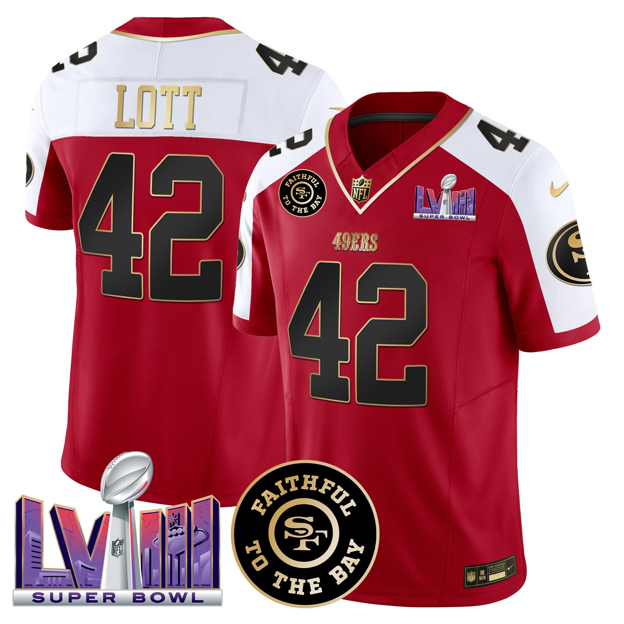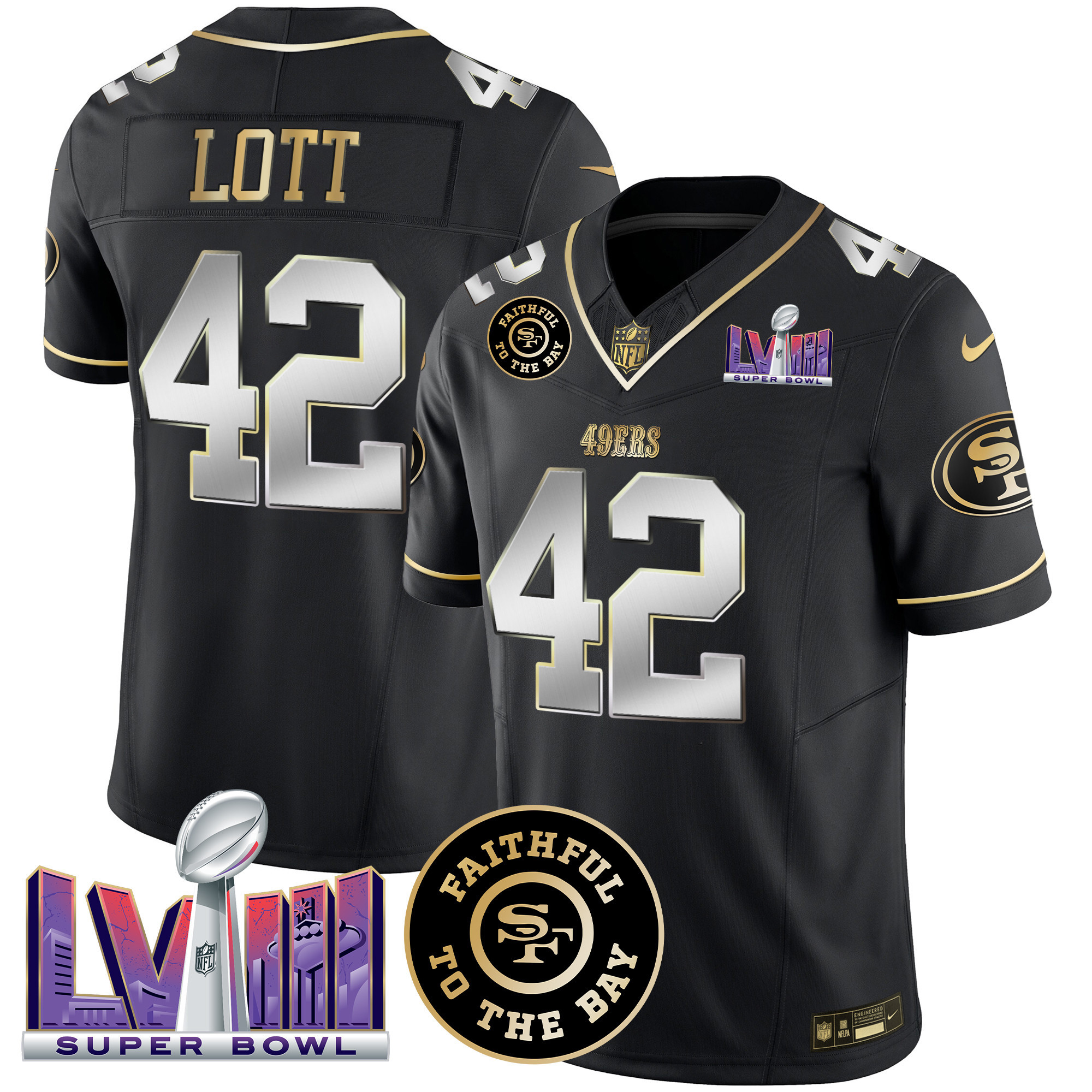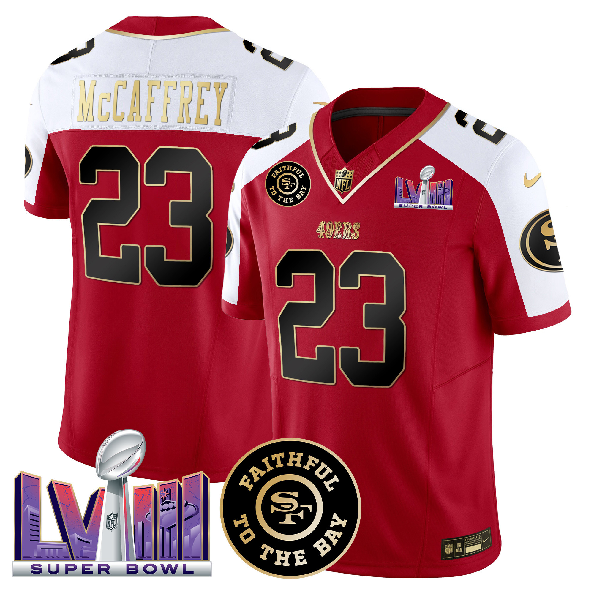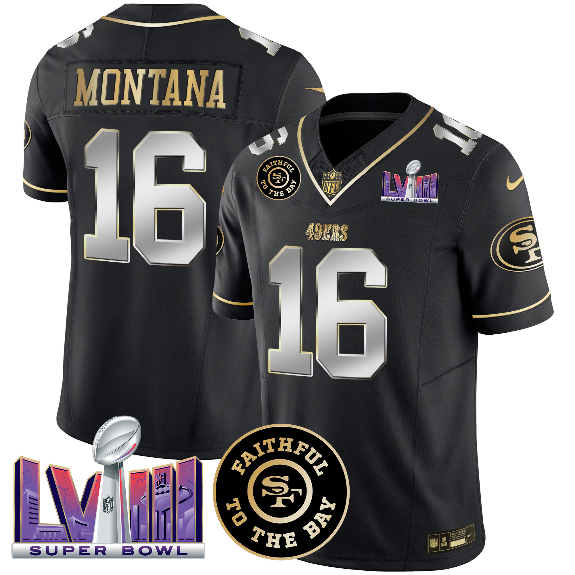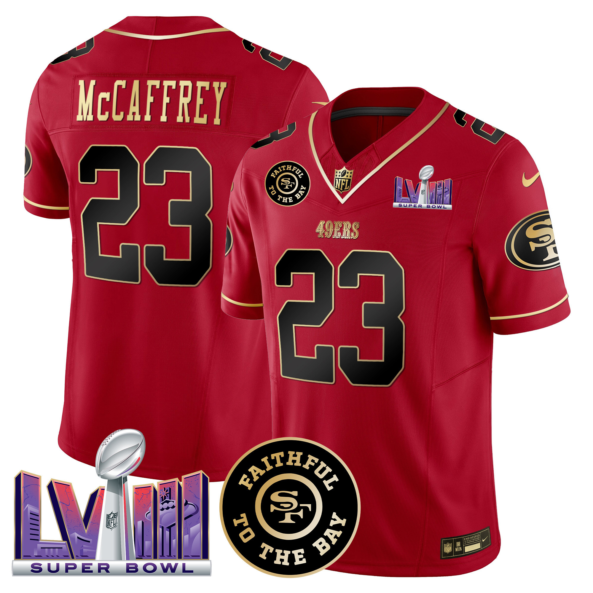 Men’s 49ers Faithful & Super Bowl LVIII Patch Vapor Jersey – All Stitched