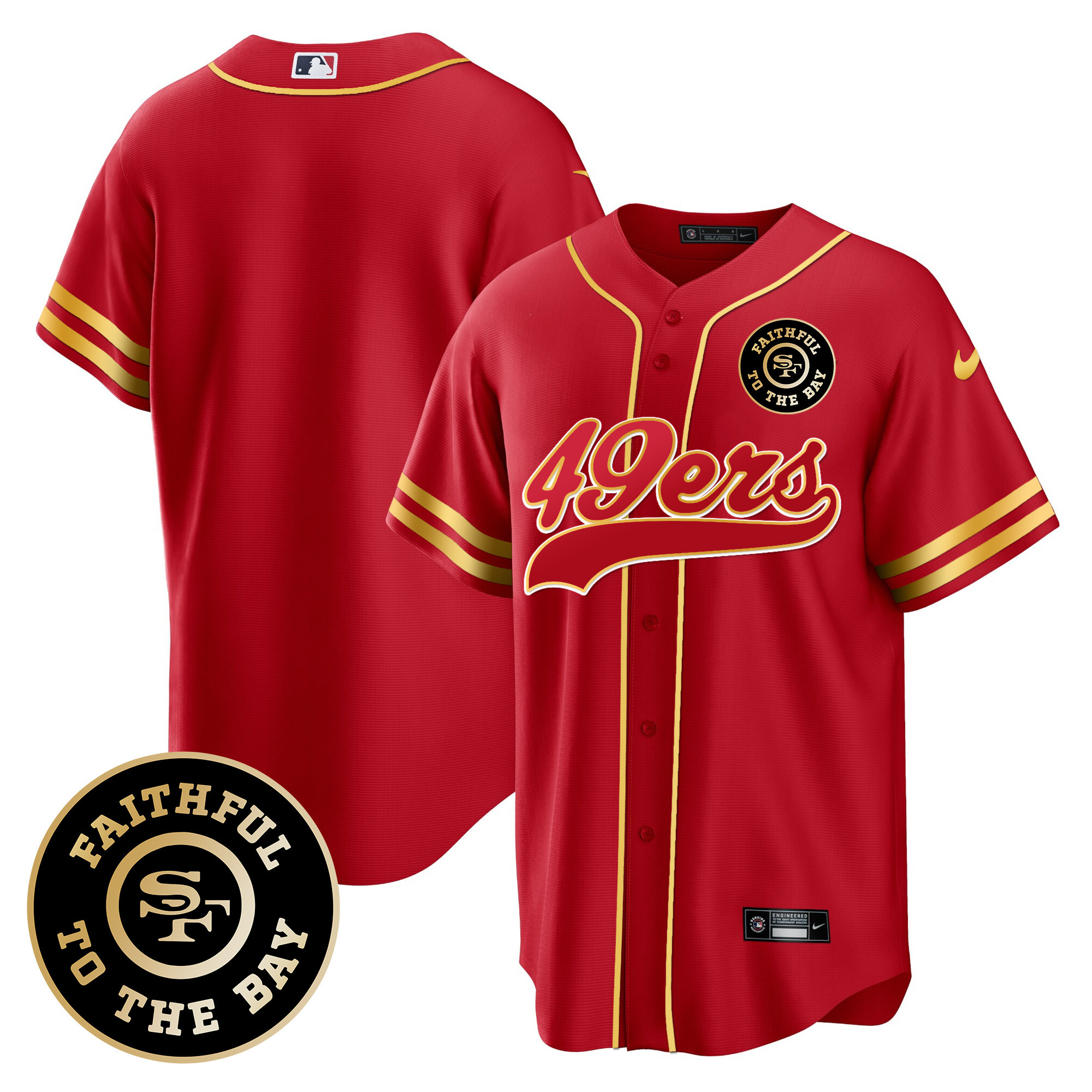 Men’s 49ers Faithful To The Bay Patch Baseball Jersey V2 – All Stitched