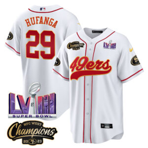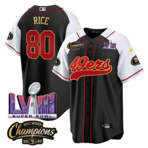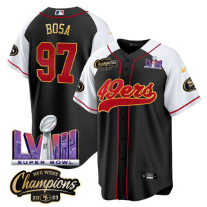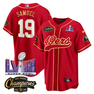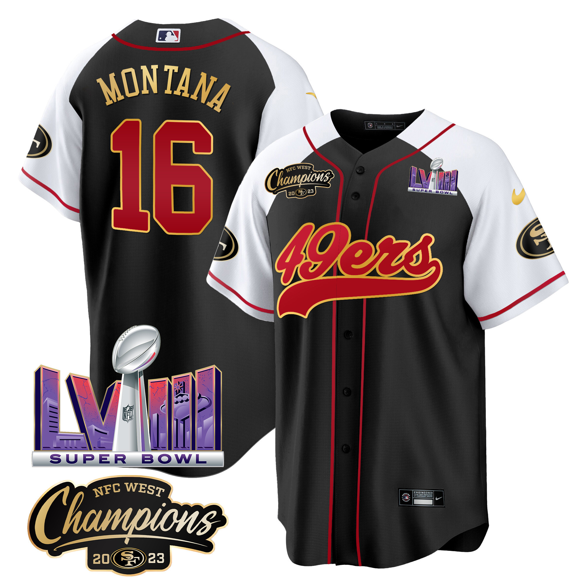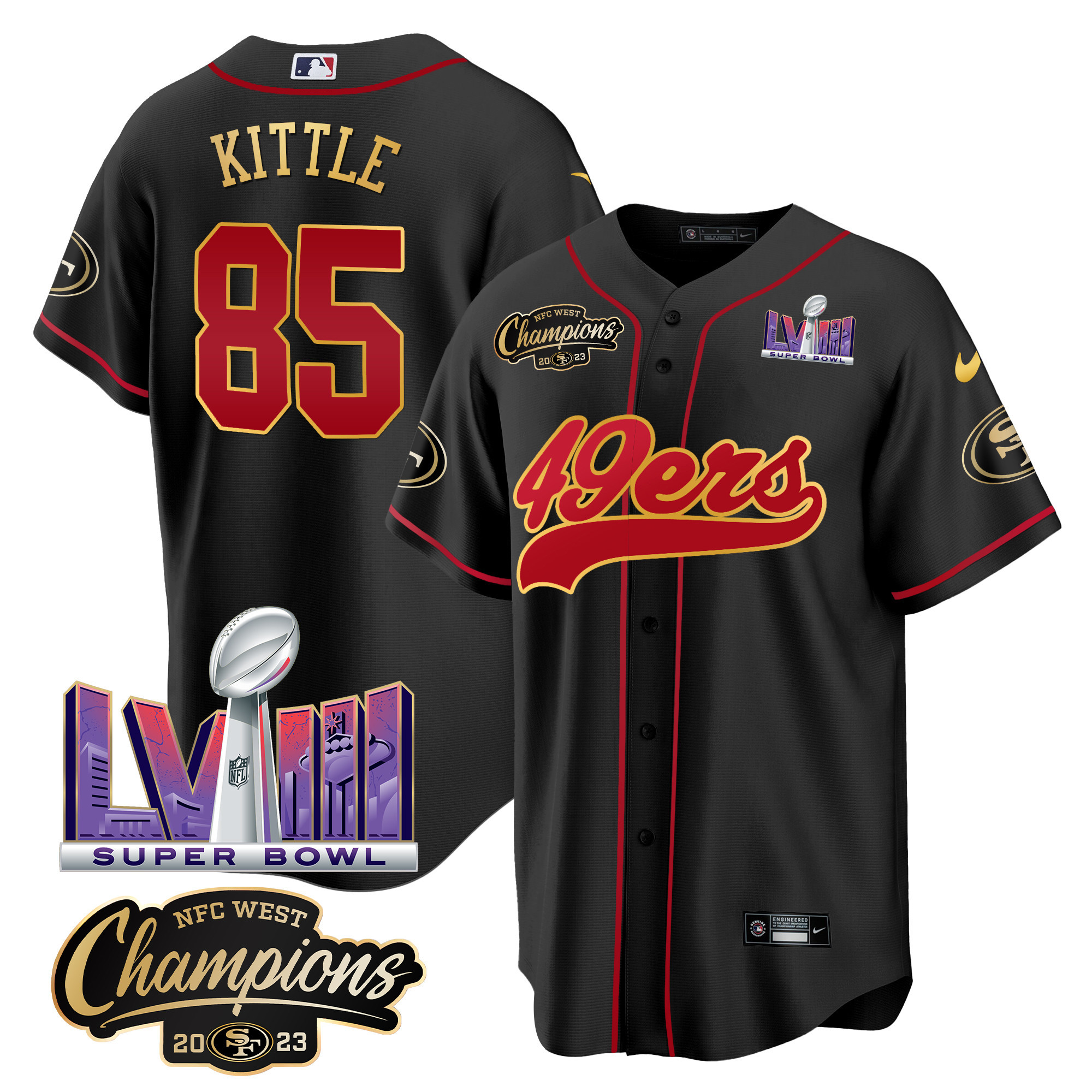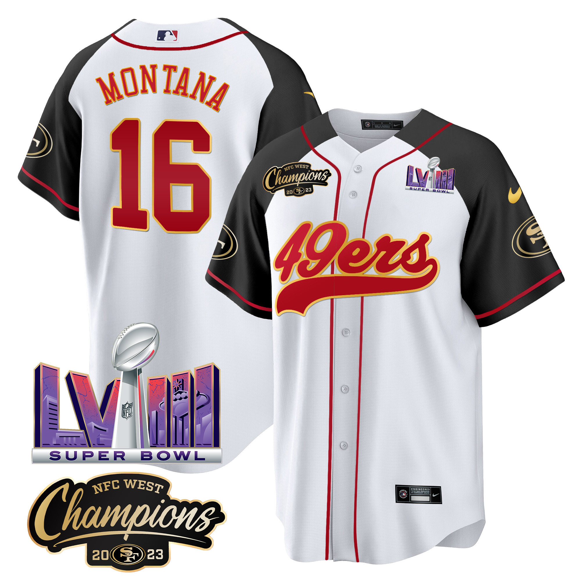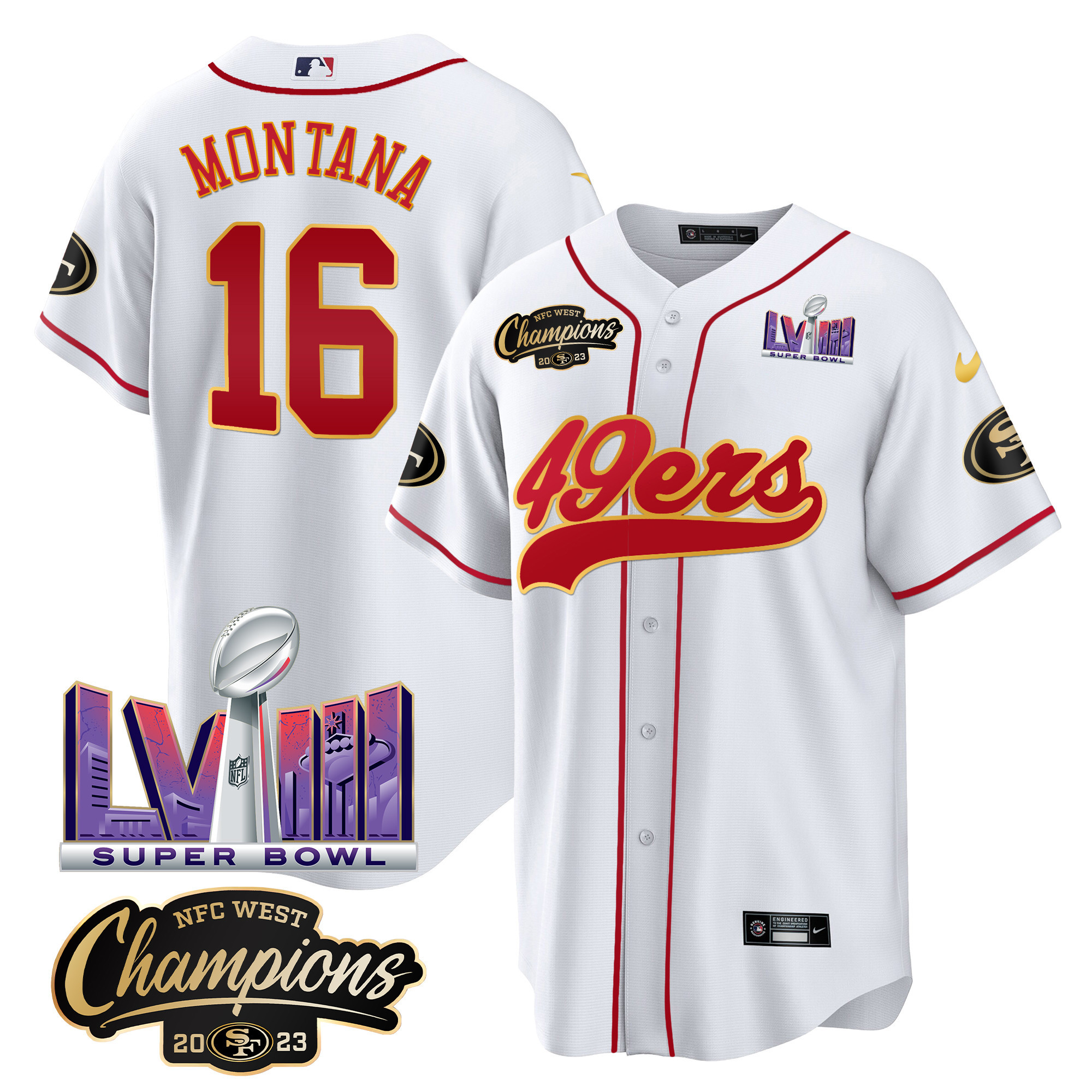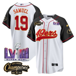 Men’s 49ers NFC West Champions & Super Bowl LVIII Patch Baseball Jersey – All Stitched