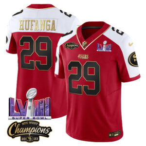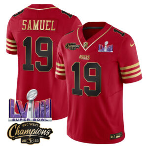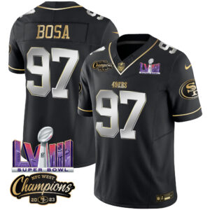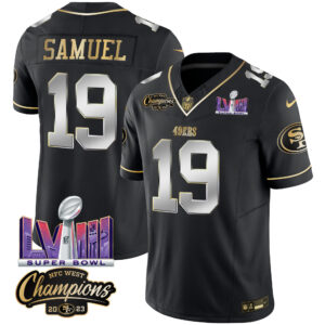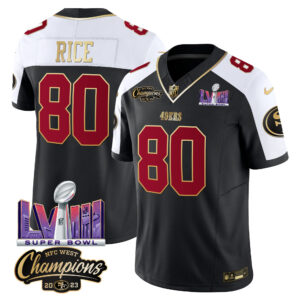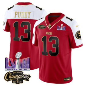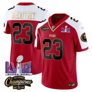 Men’s 49ers NFC West Champions & Super Bowl LVIII Patch Vapor Jersey V2 – All Stitched