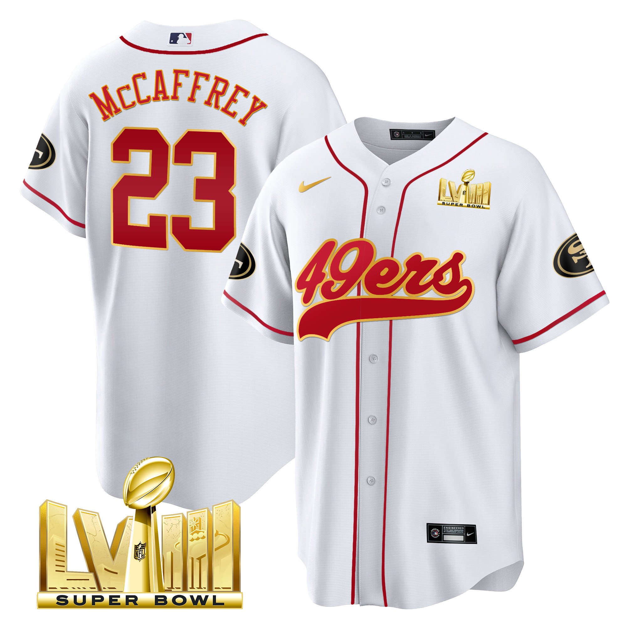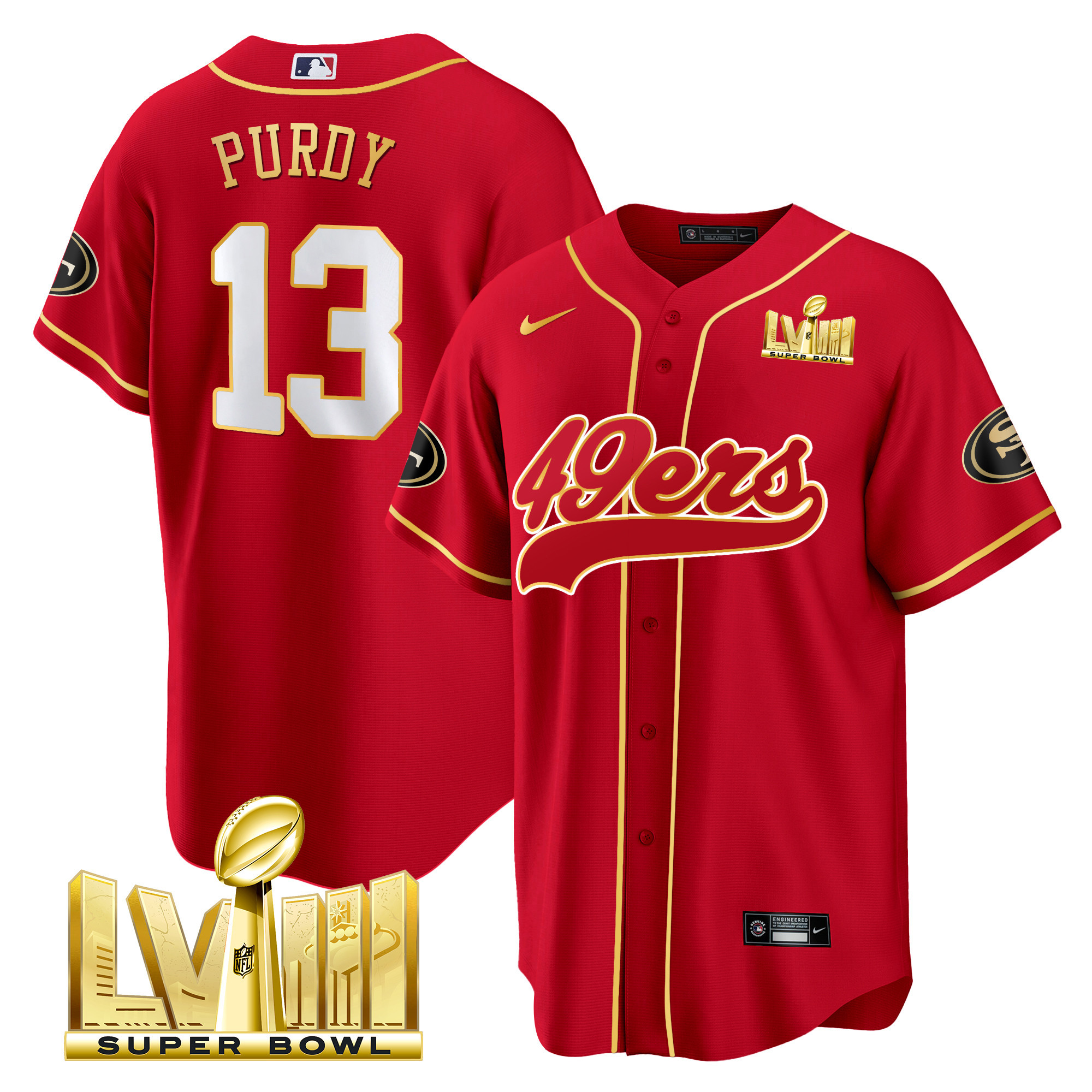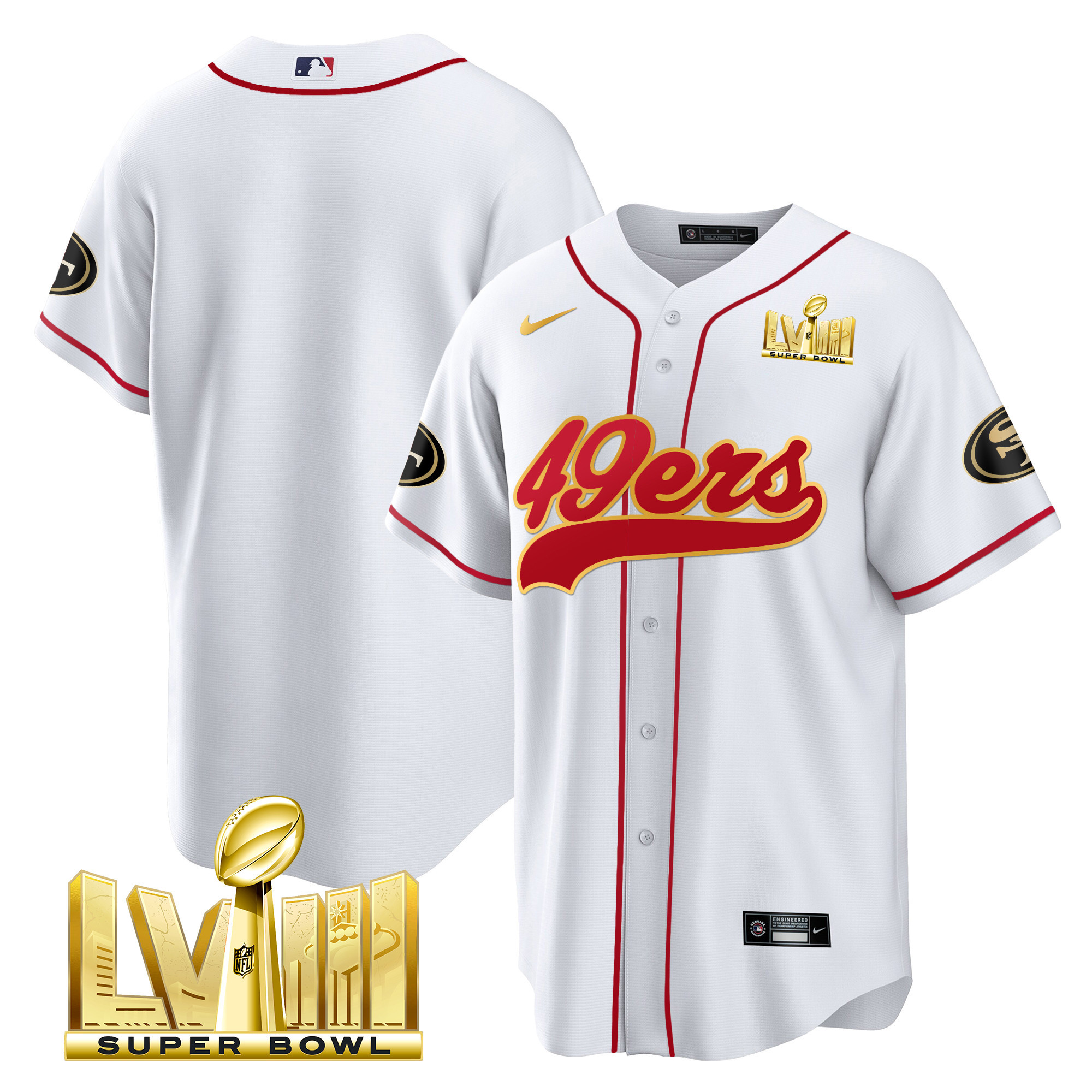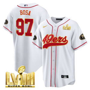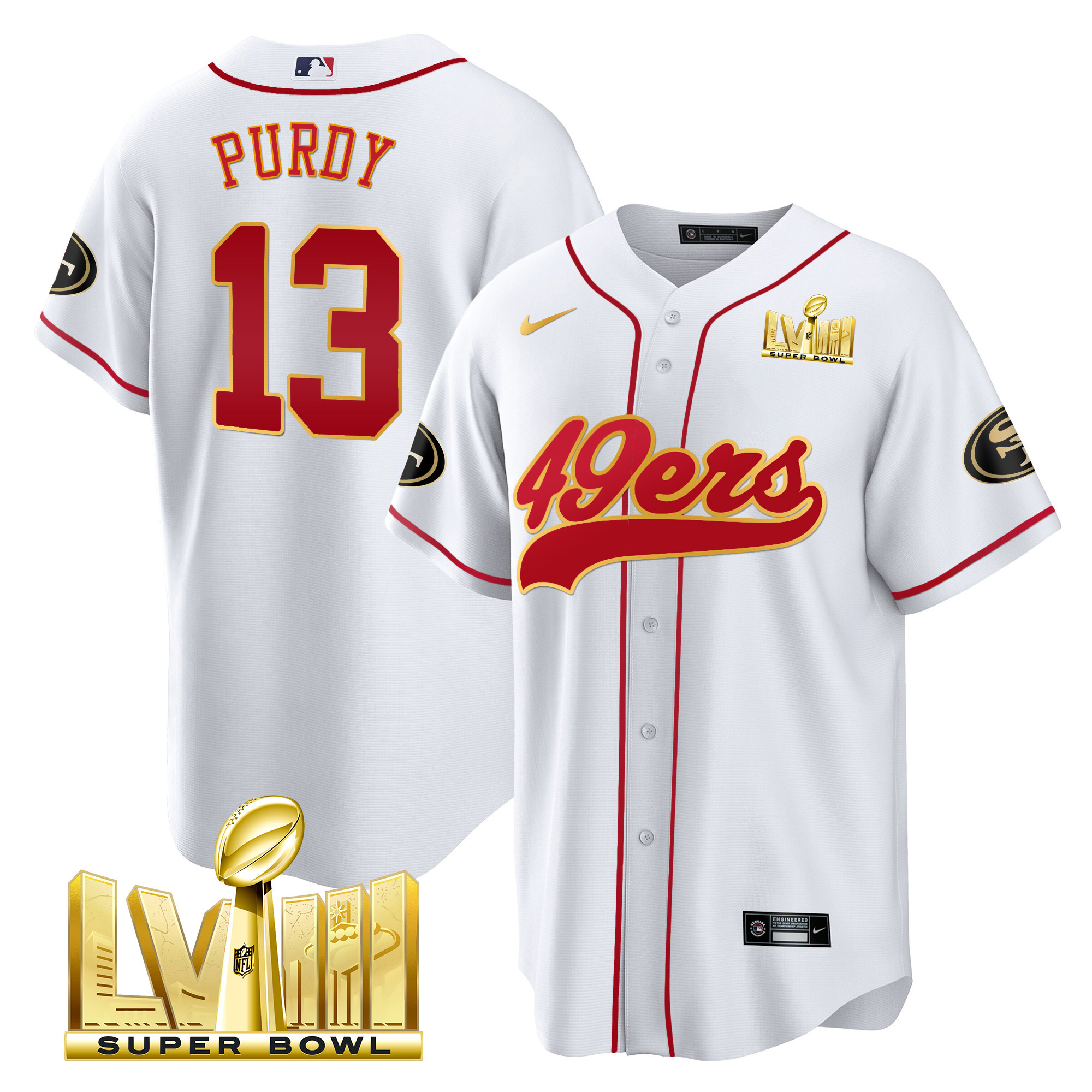 Men’s 49ers Super Bowl LVIII Gold Patch Baseball Jersey – All Stitched