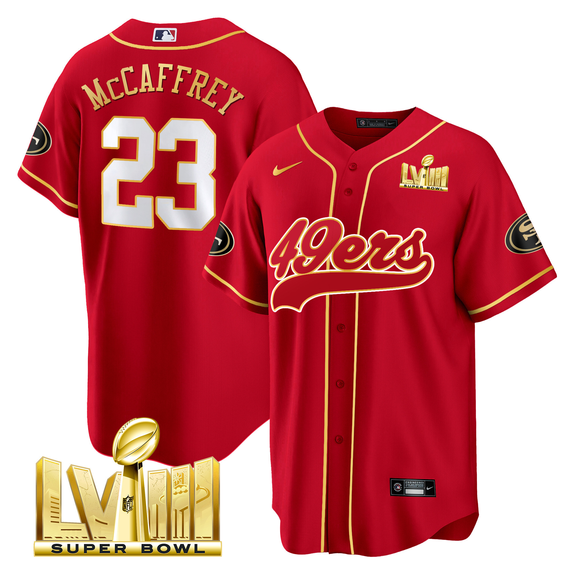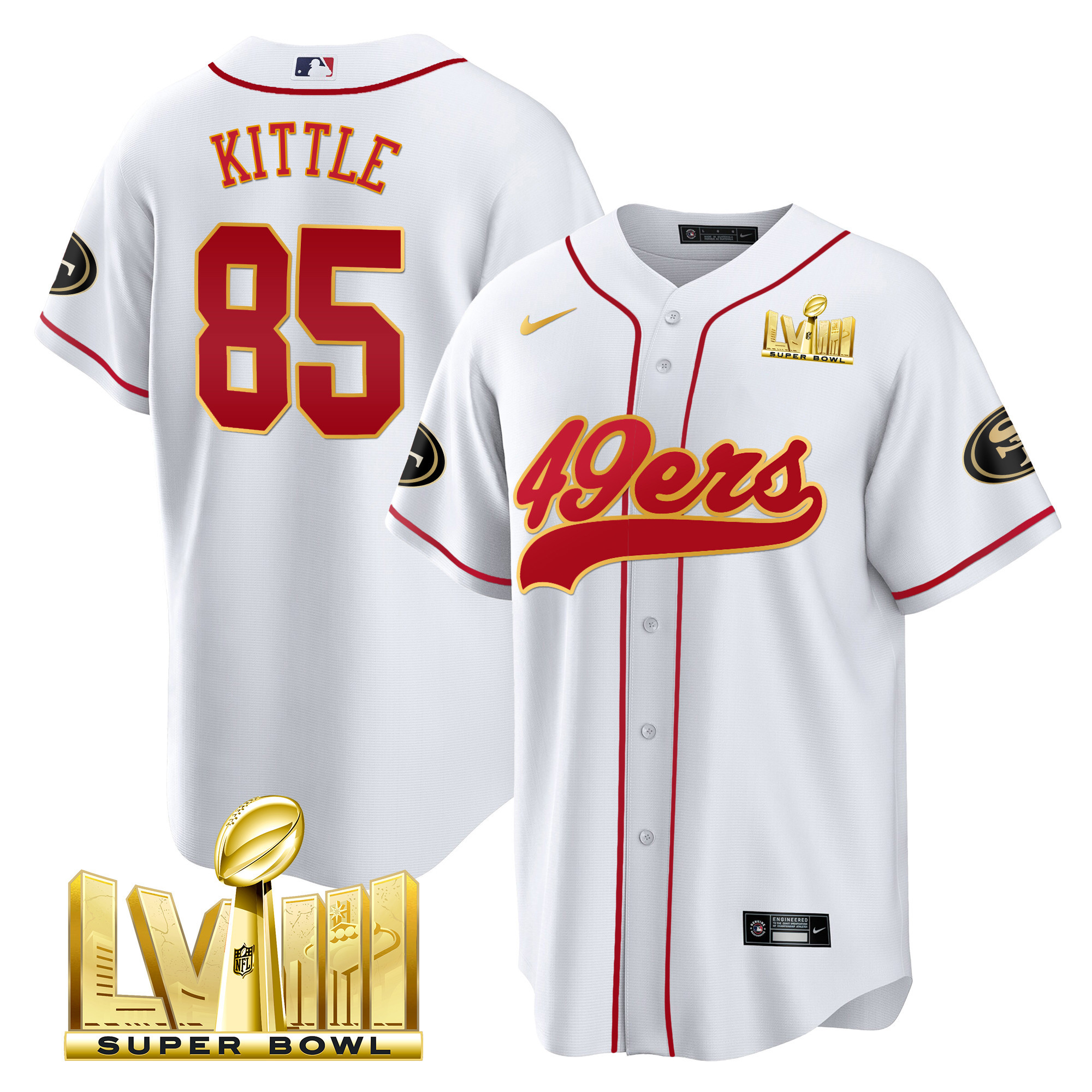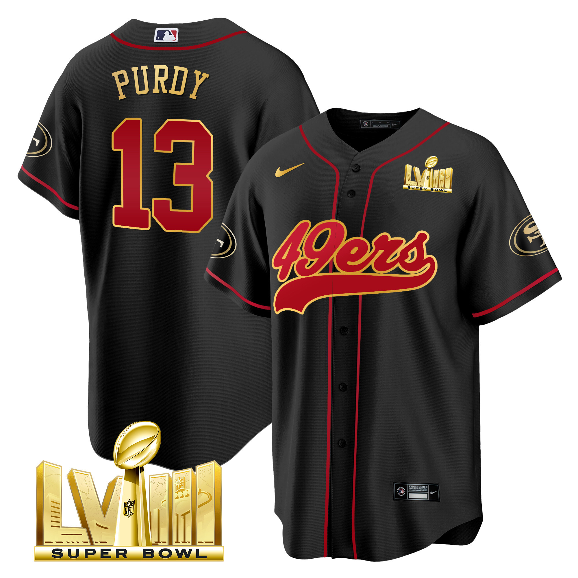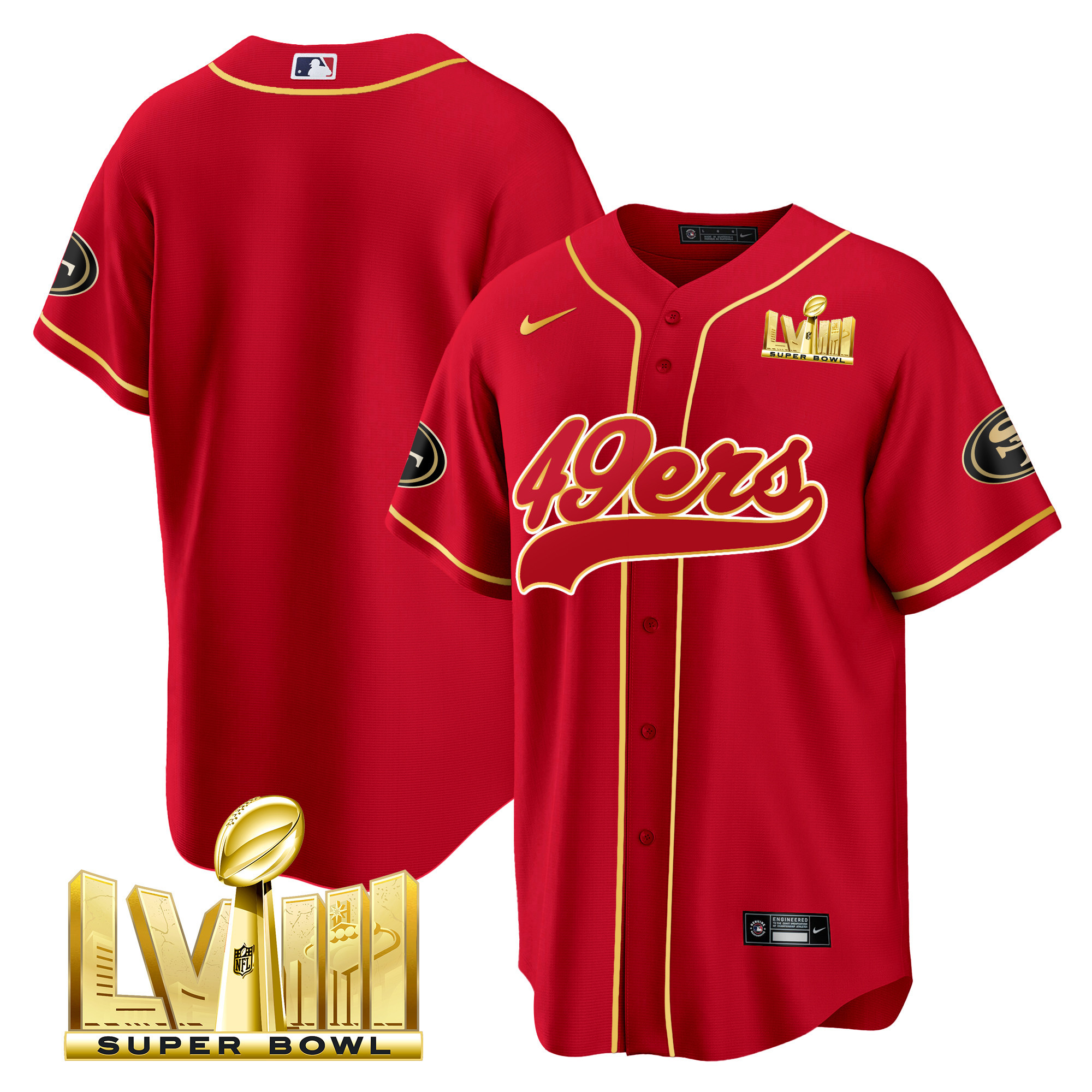 Men’s 49ers Super Bowl LVIII Gold Patch Baseball Jersey – All Stitched