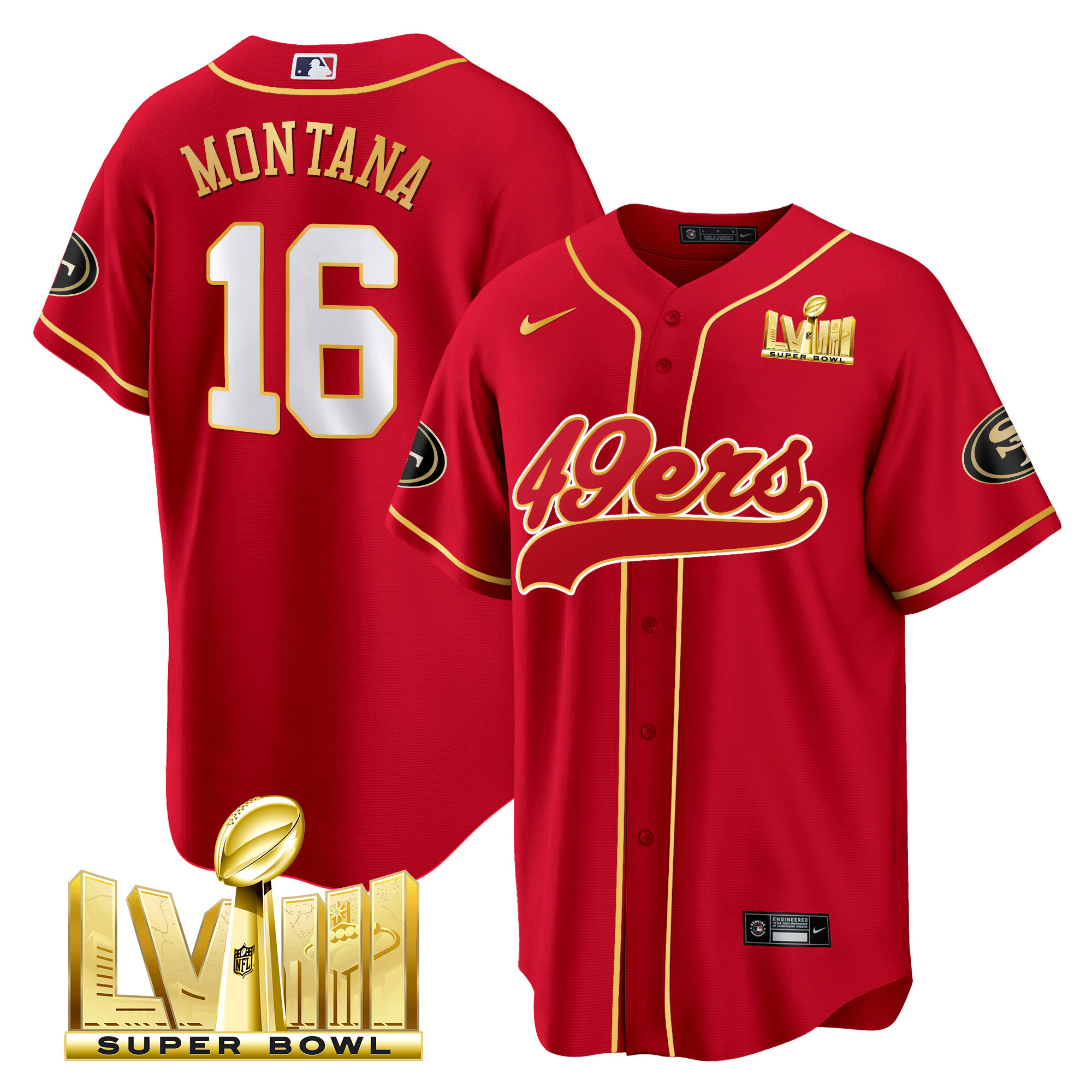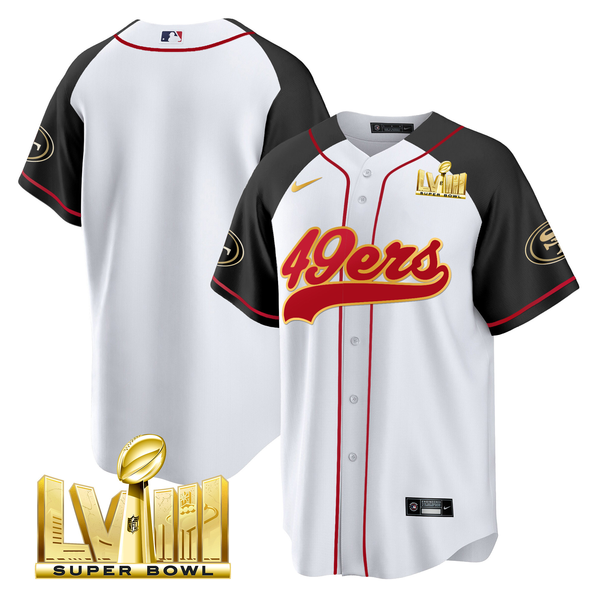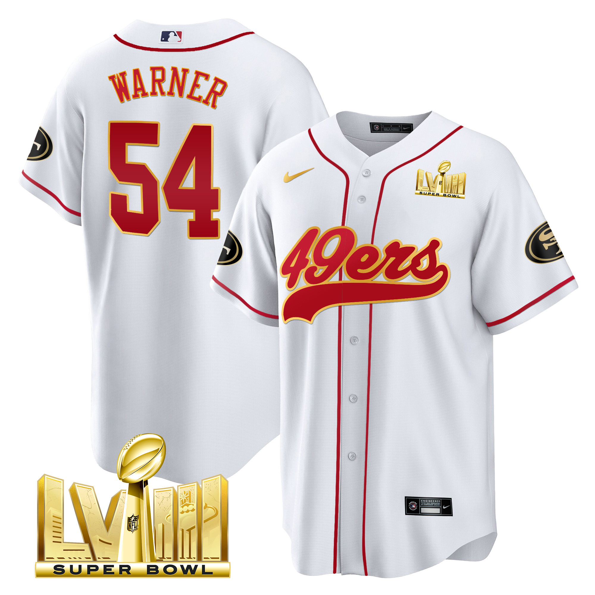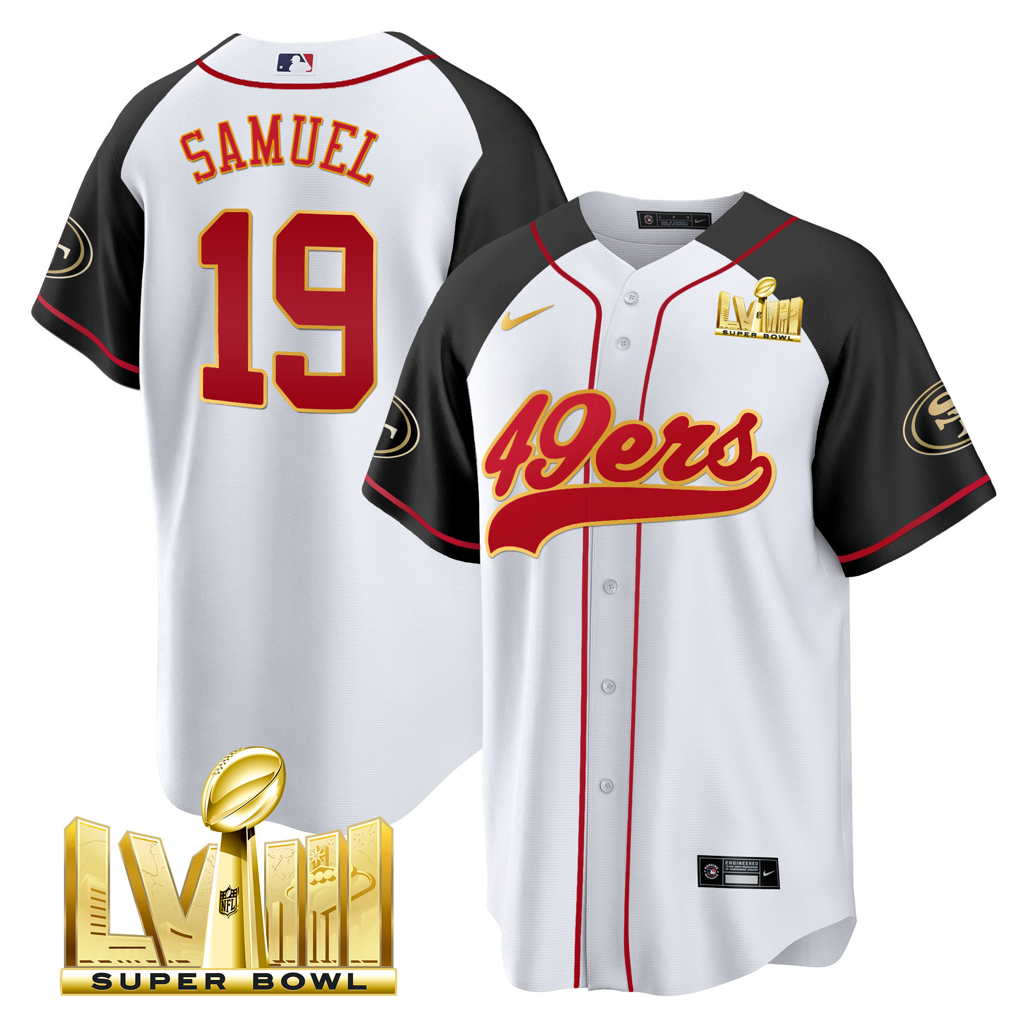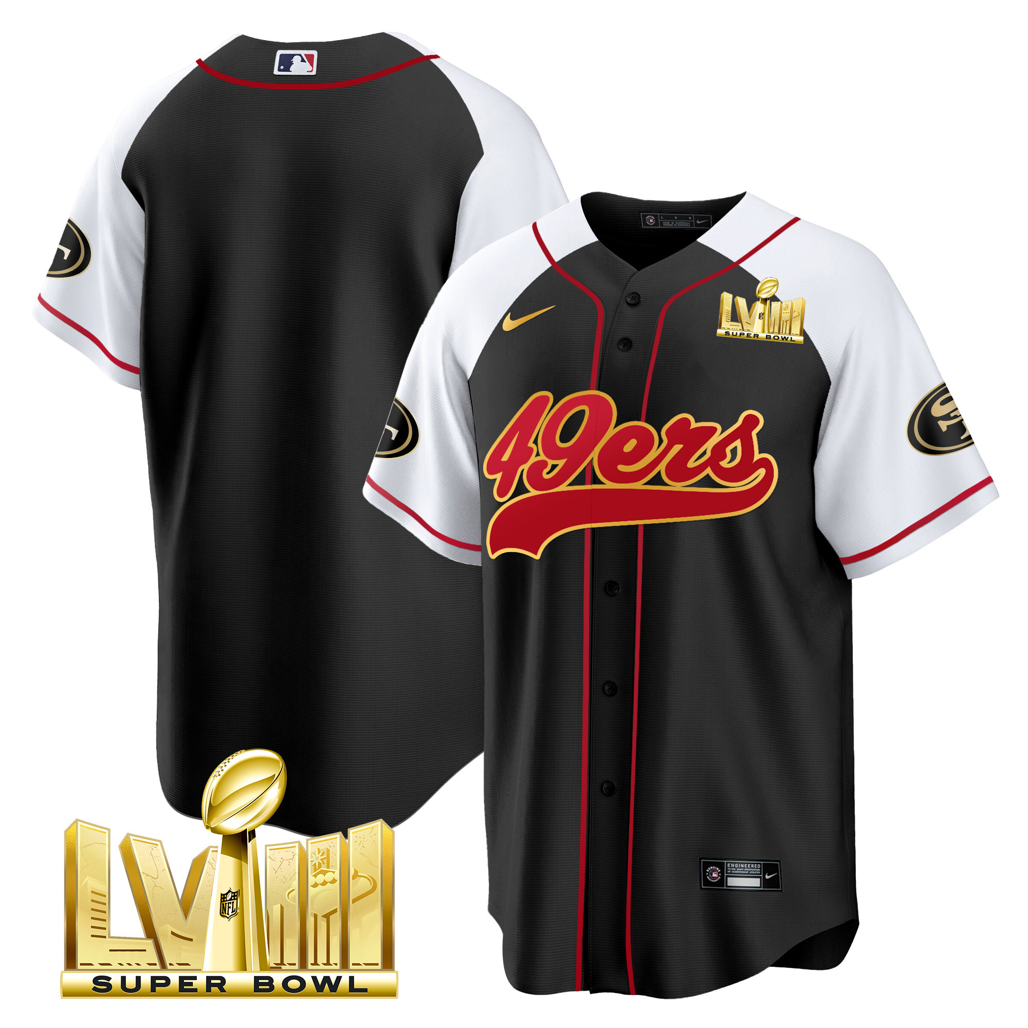 Men’s 49ers Super Bowl LVIII Gold Patch Baseball Jersey – All Stitched