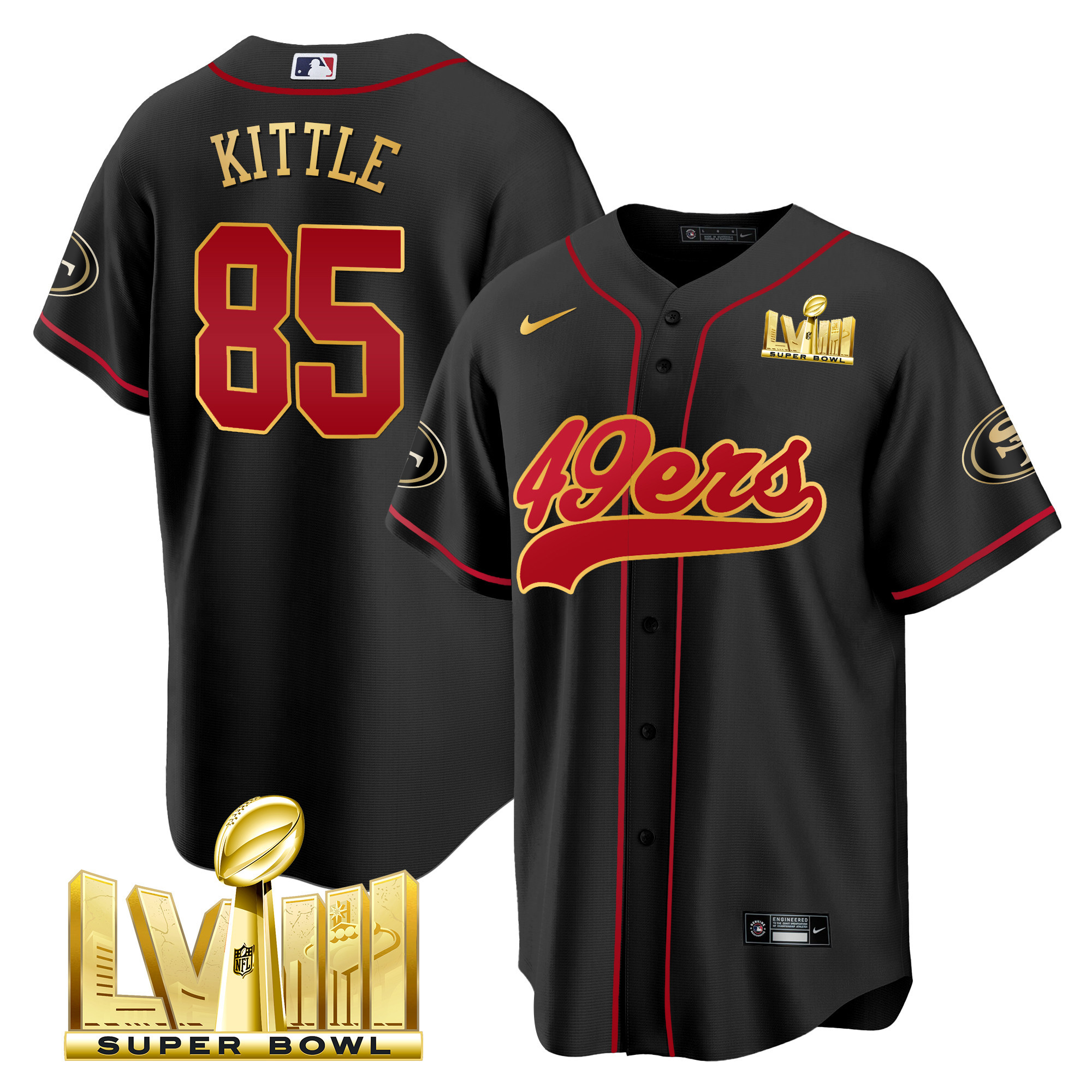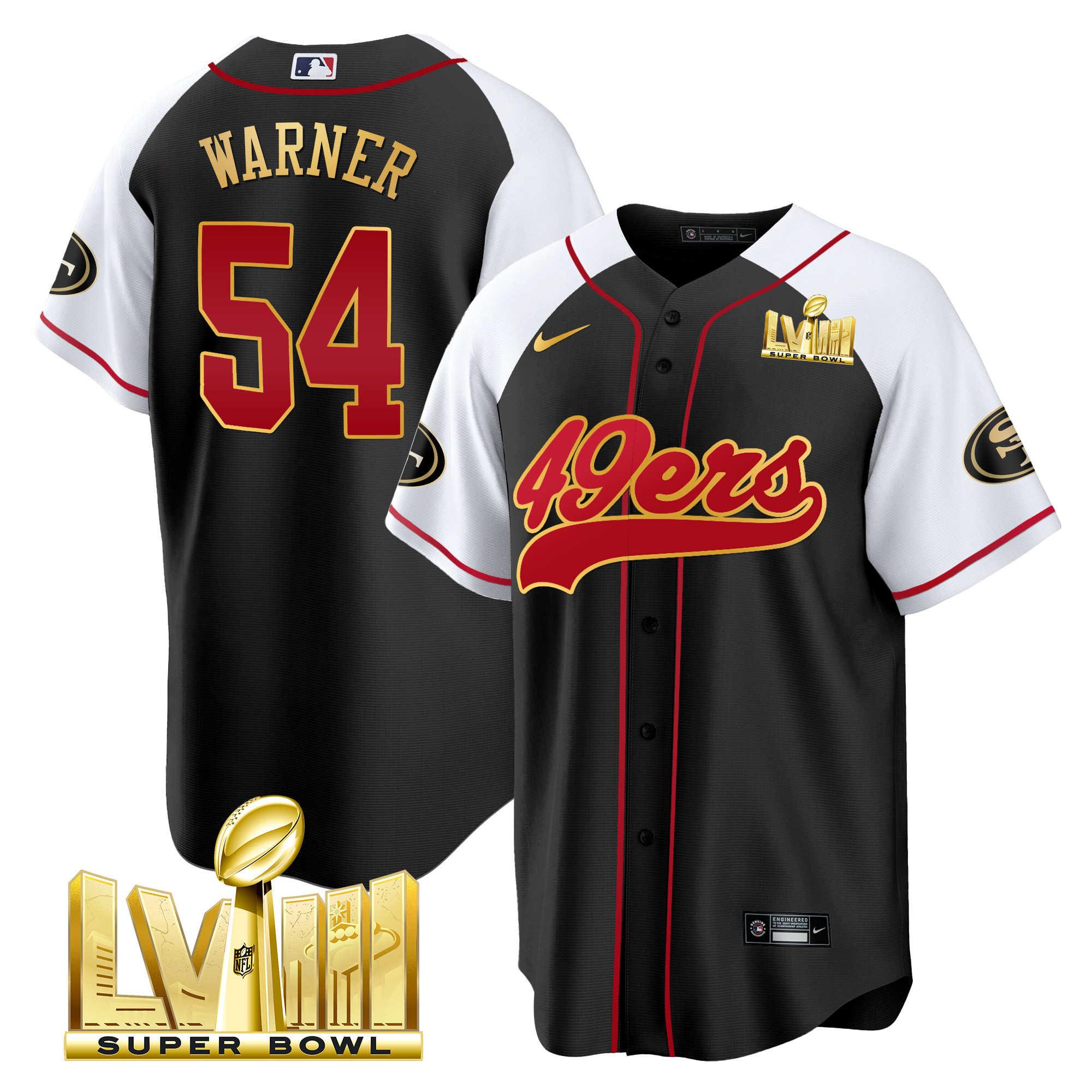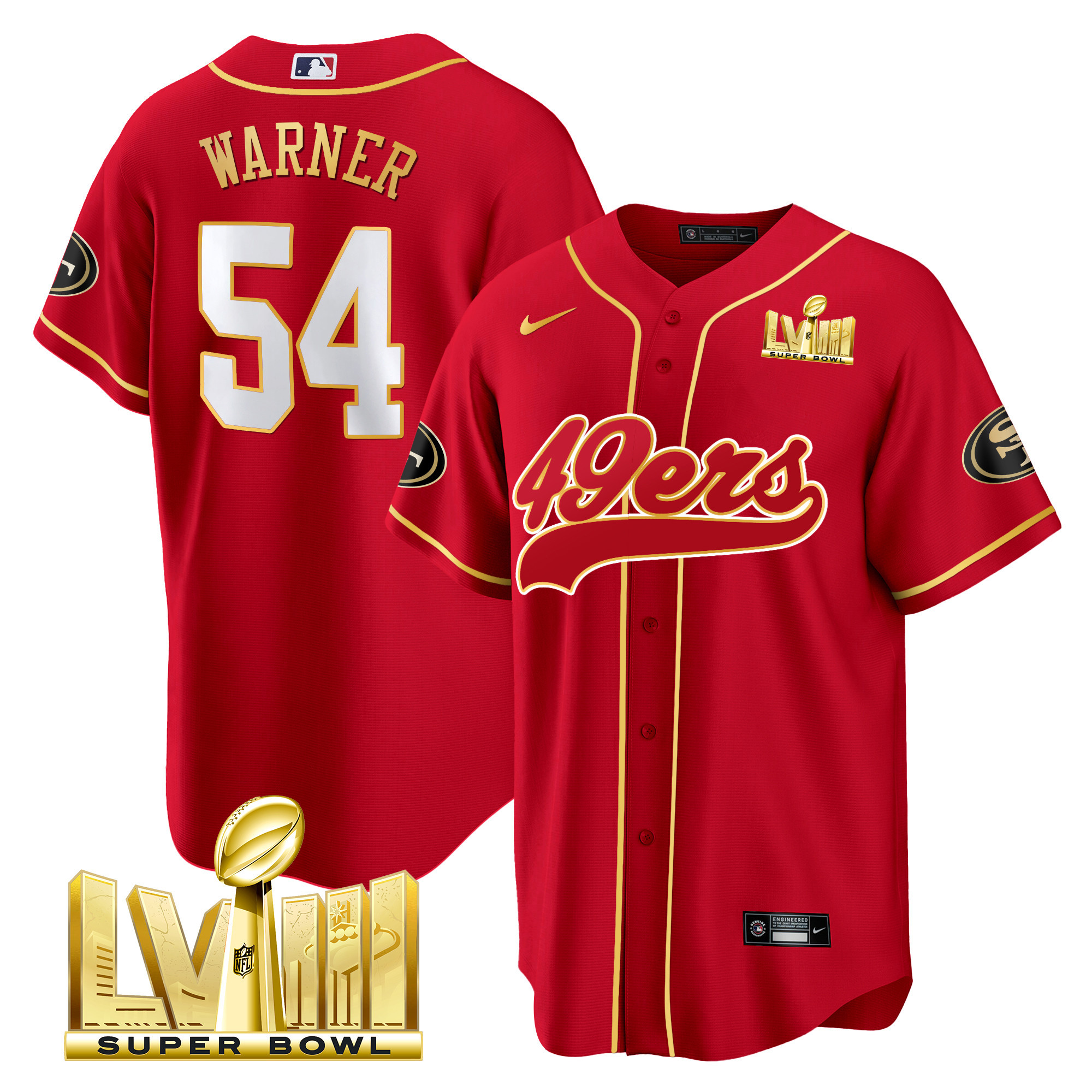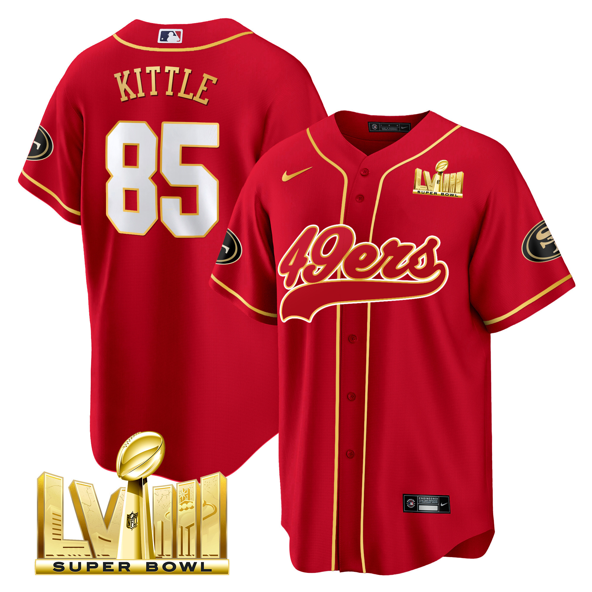 Men’s 49ers Super Bowl LVIII Gold Patch Baseball Jersey – All Stitched