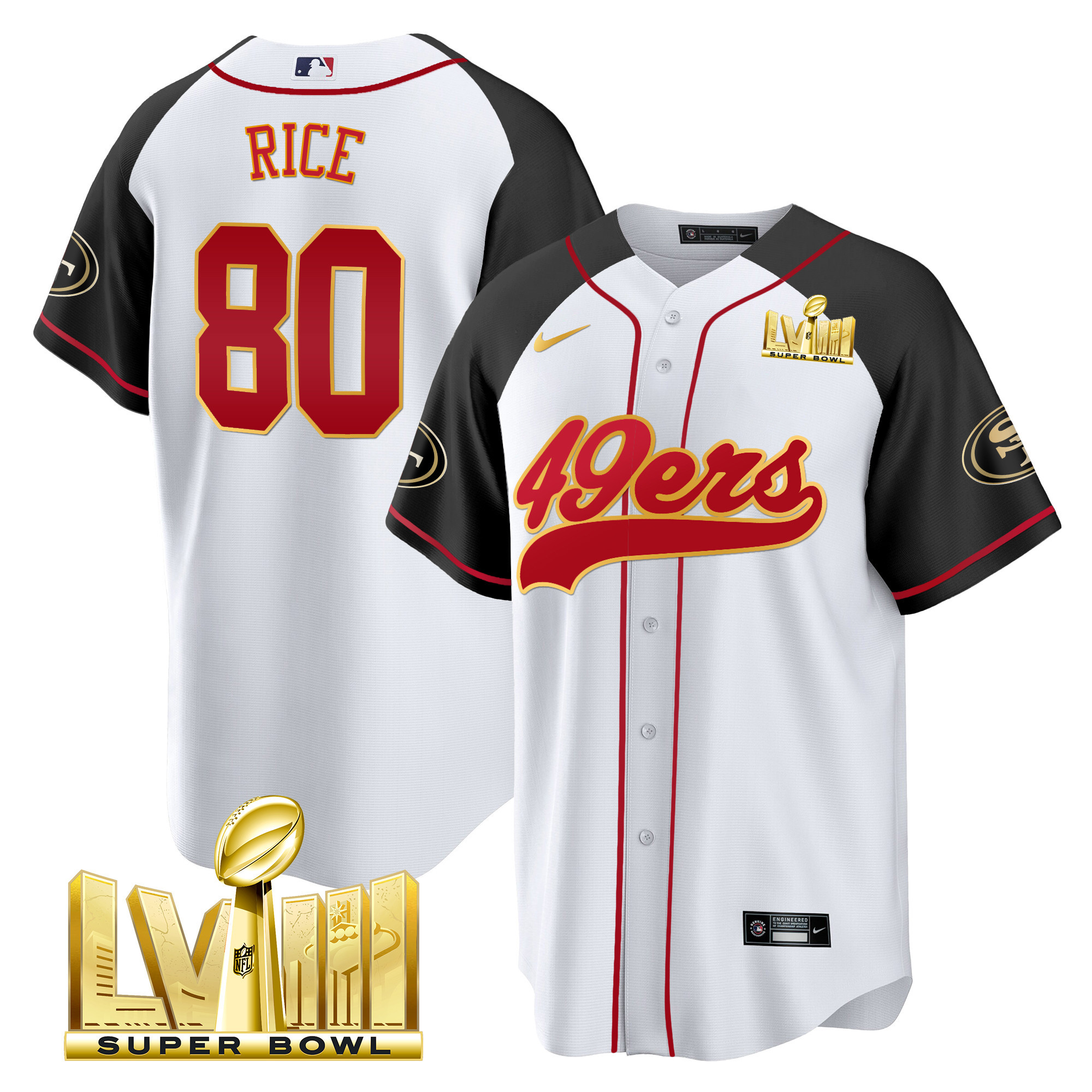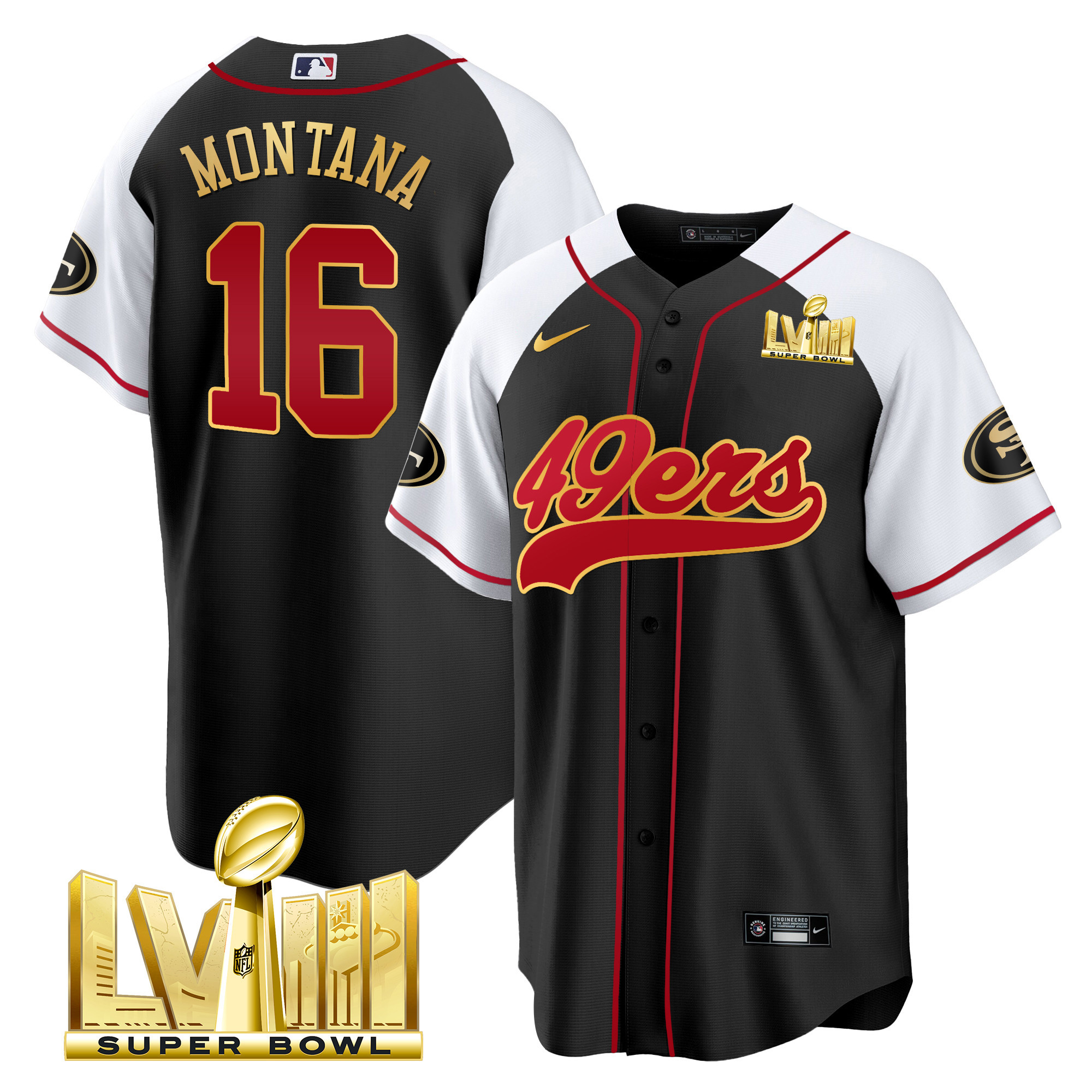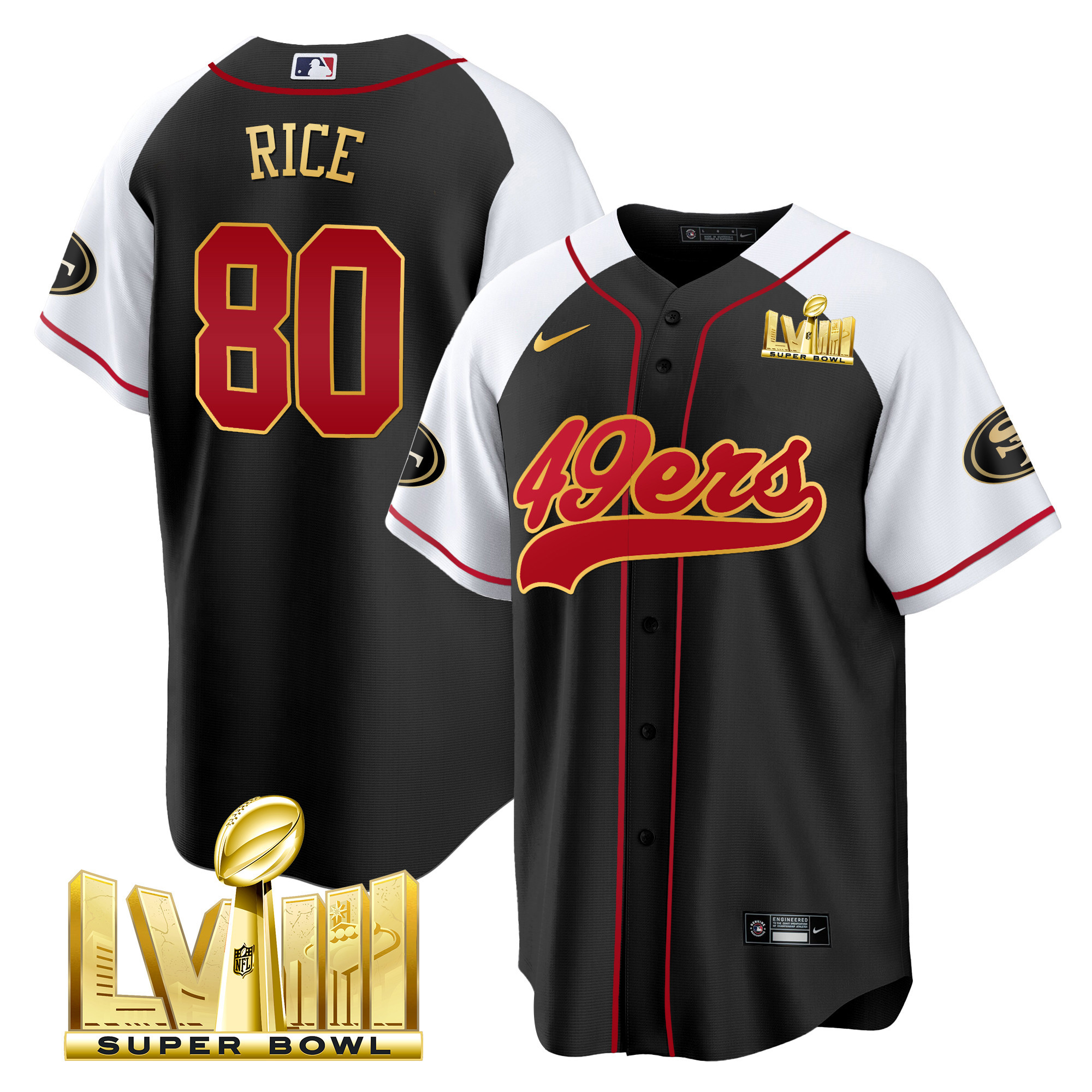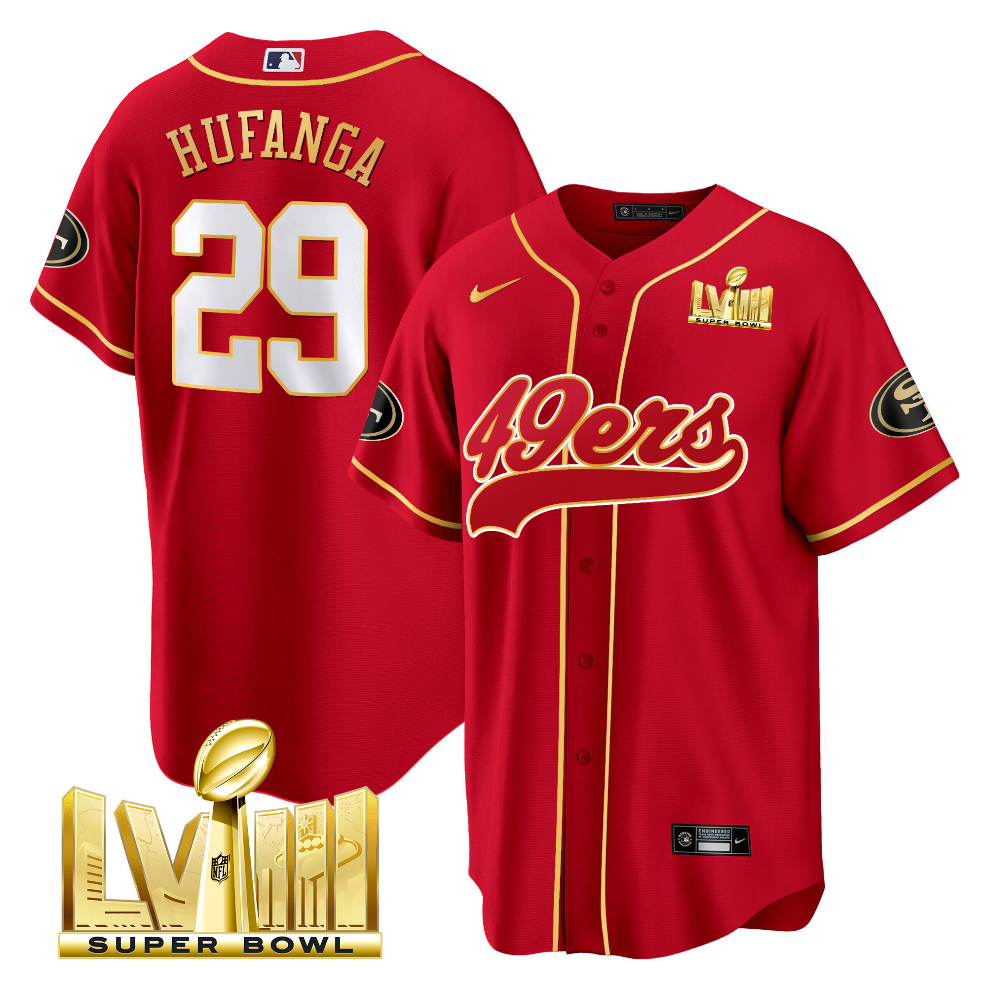 Men’s 49ers Super Bowl LVIII Gold Patch Baseball Jersey – All Stitched