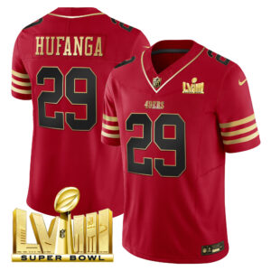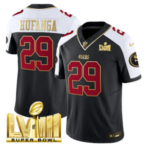 Men’s 49ers Super Bowl LVIII Gold Patch Vapor Jersey – All Stitched