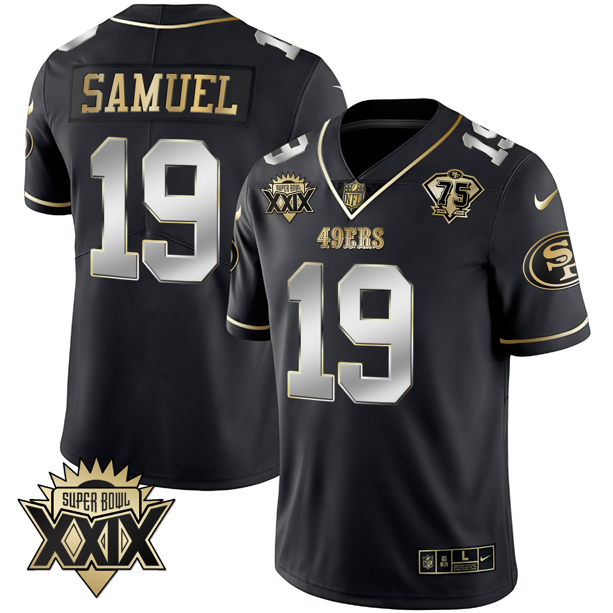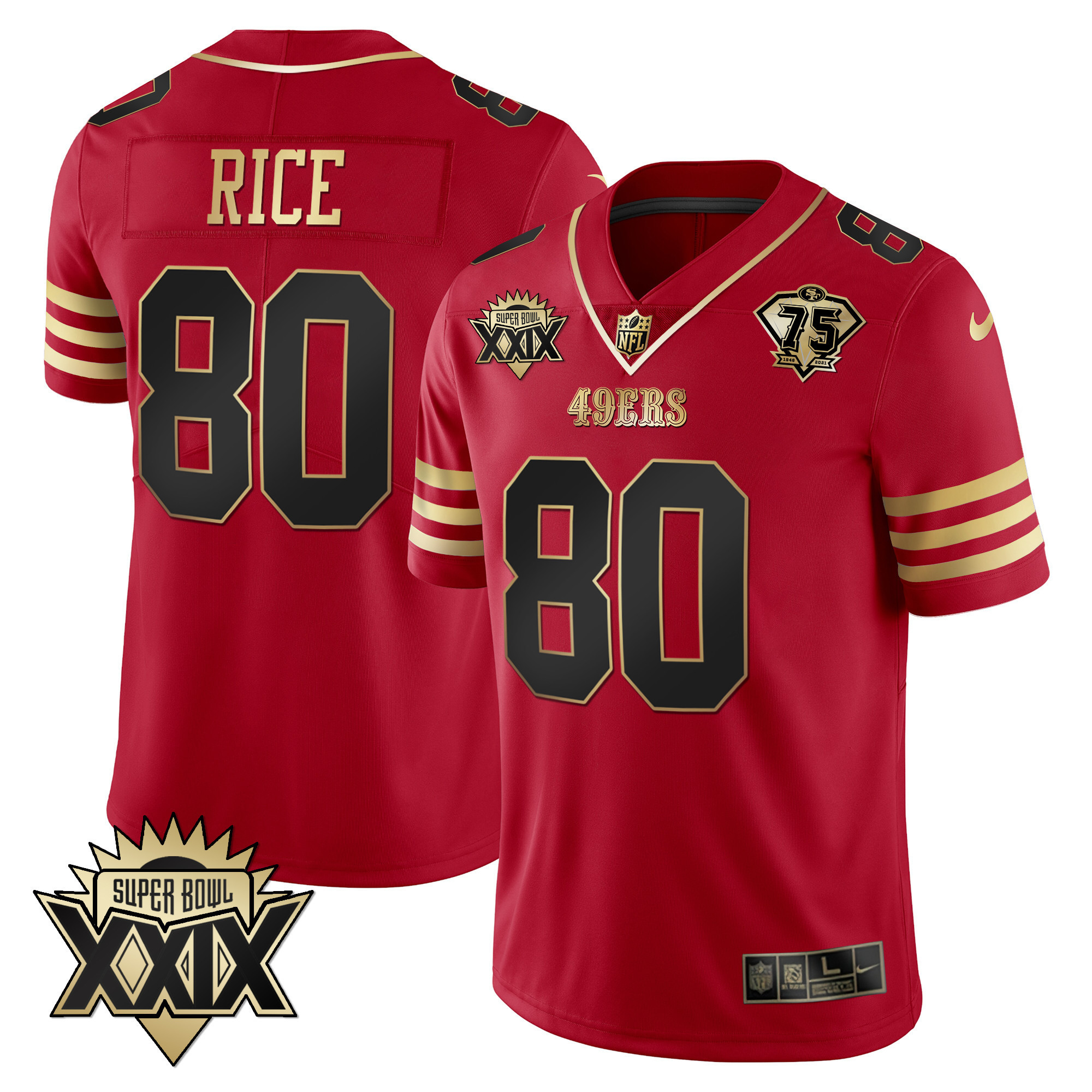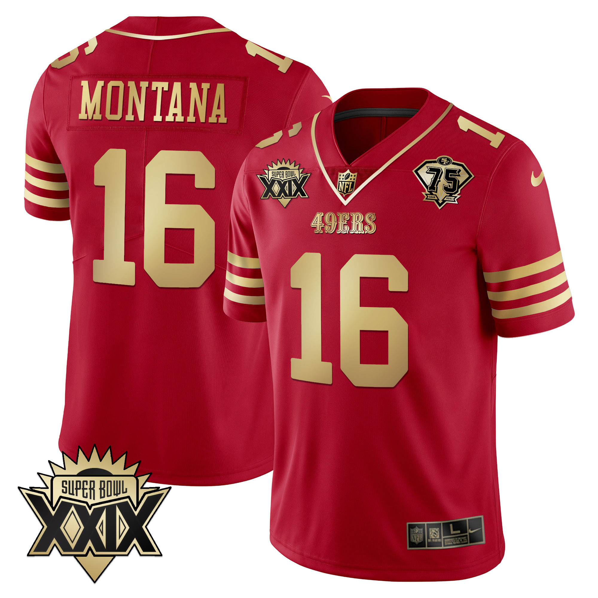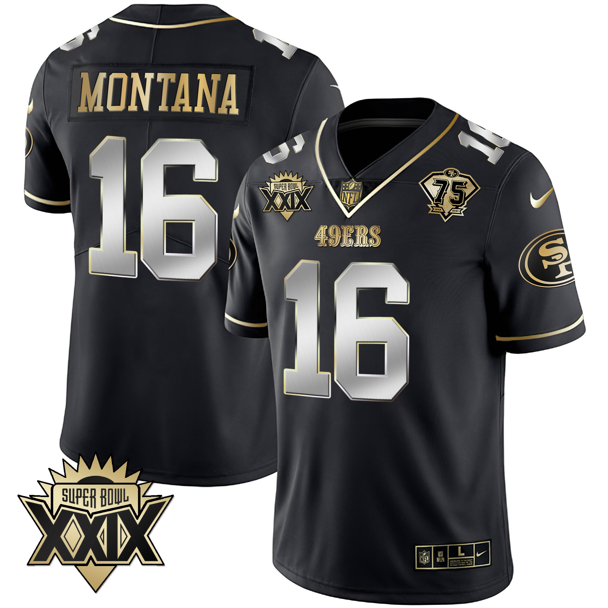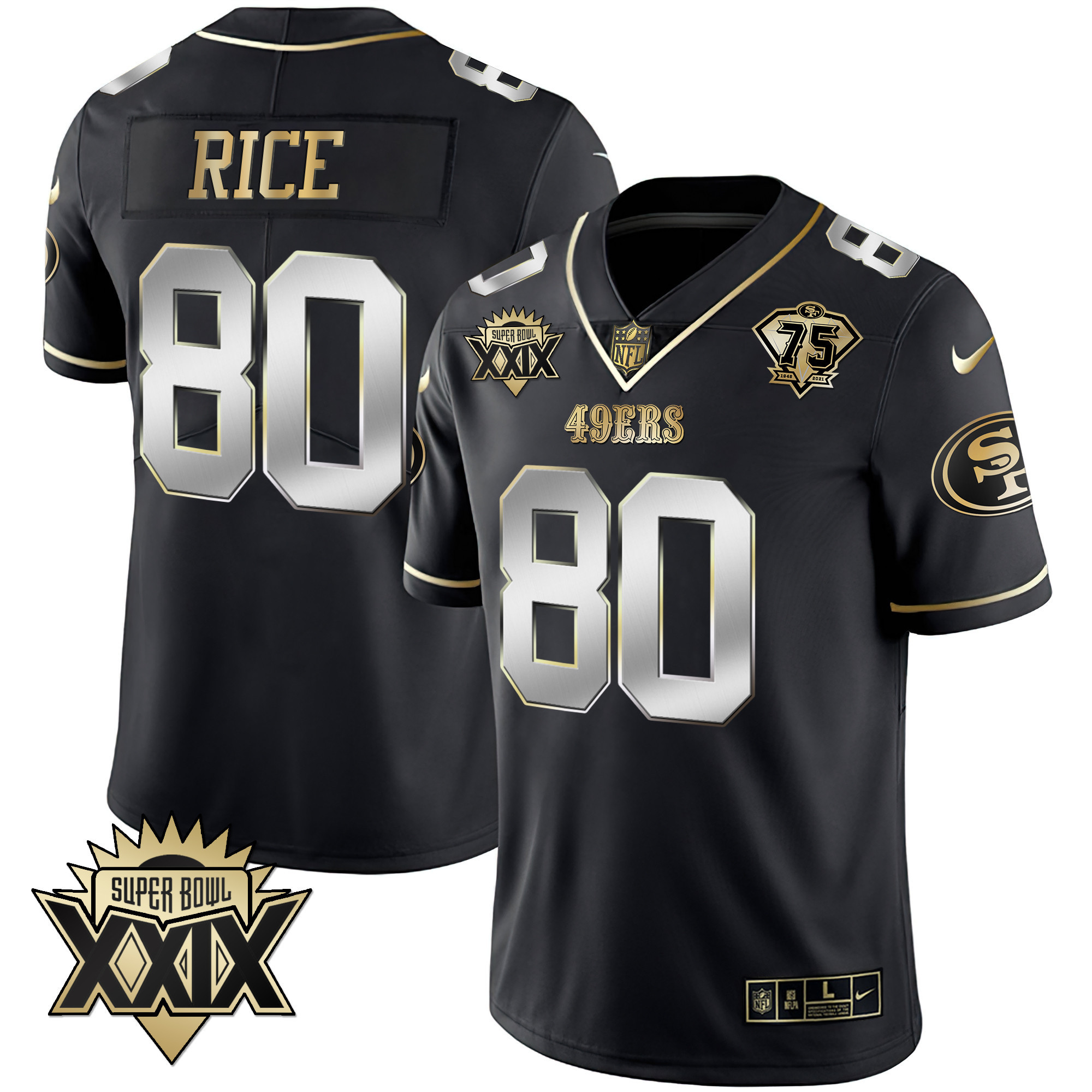 Men’s 49ers Super Bowl XXIX Patch Black Red Gold Jersey – All Stitched