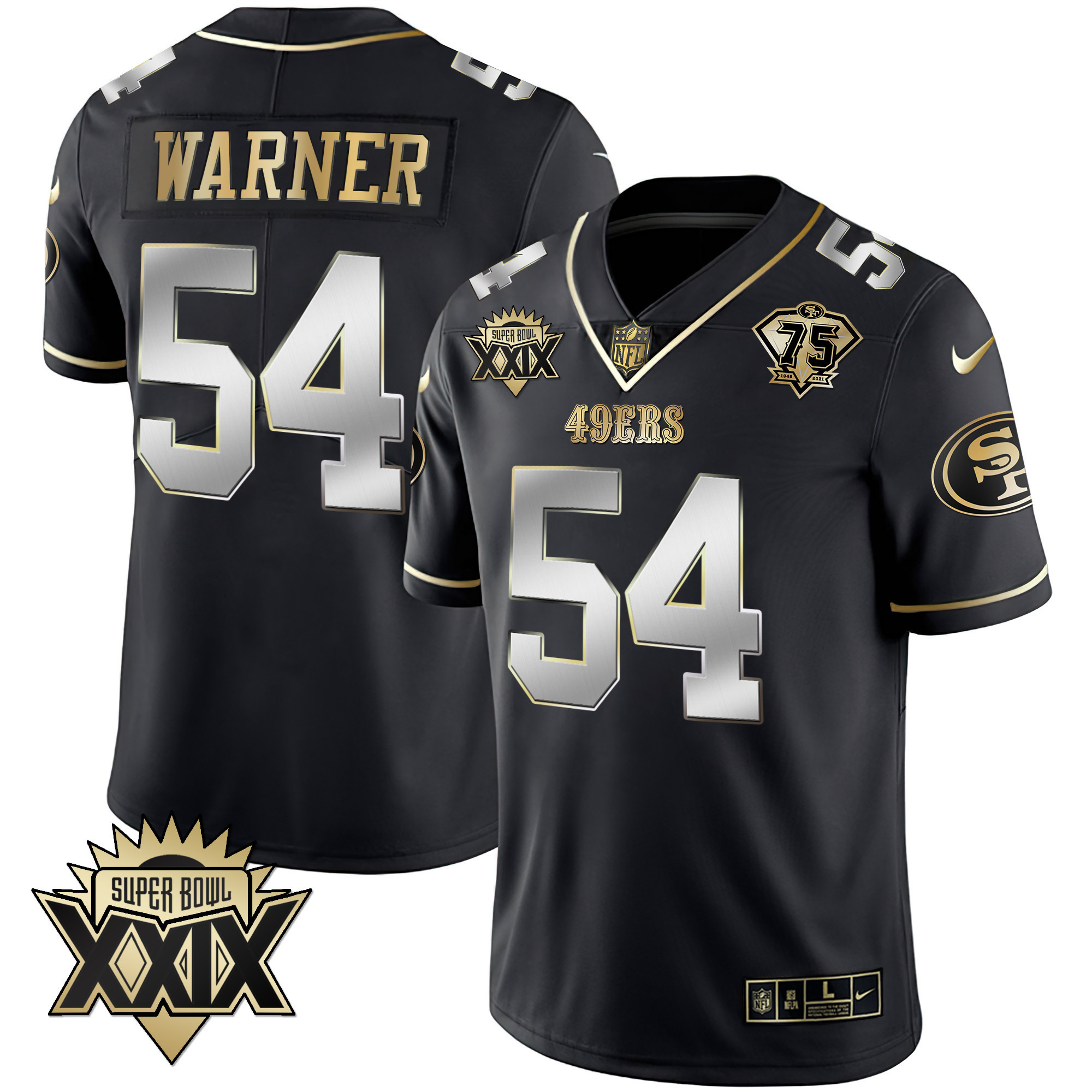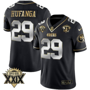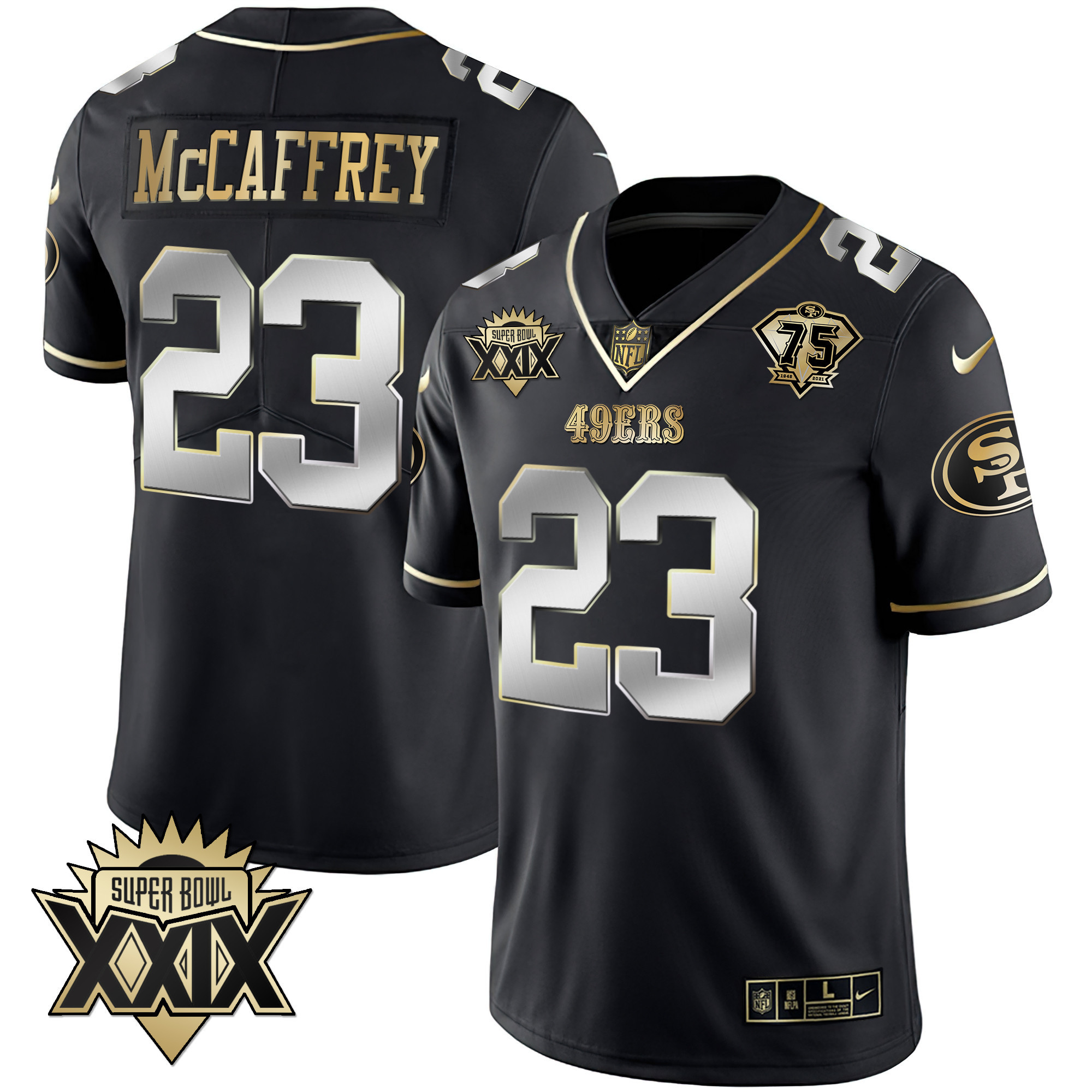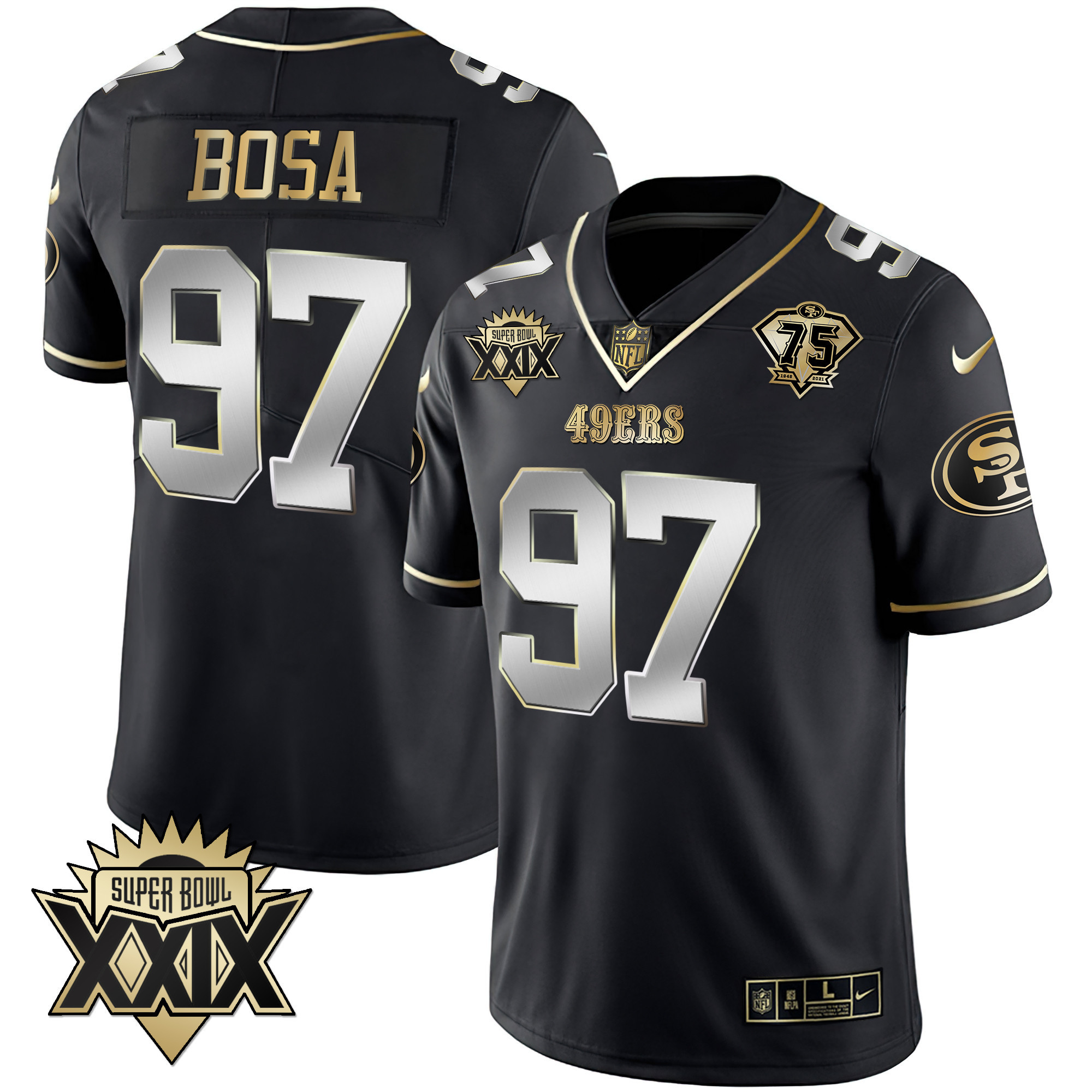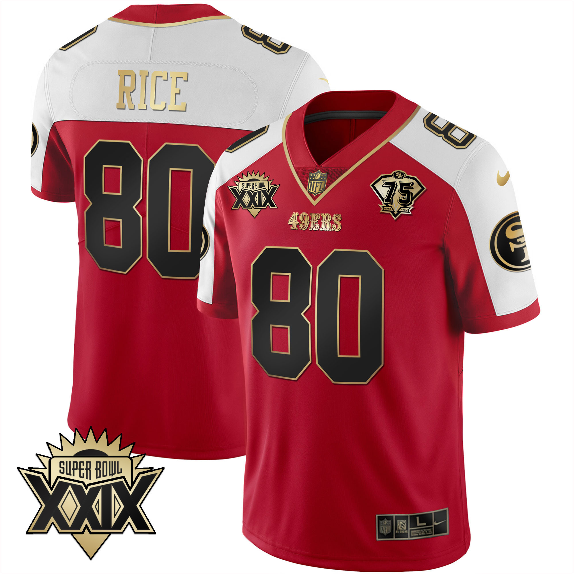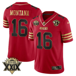 Men’s 49ers Super Bowl XXIX Patch Black Red Gold Jersey – All Stitched